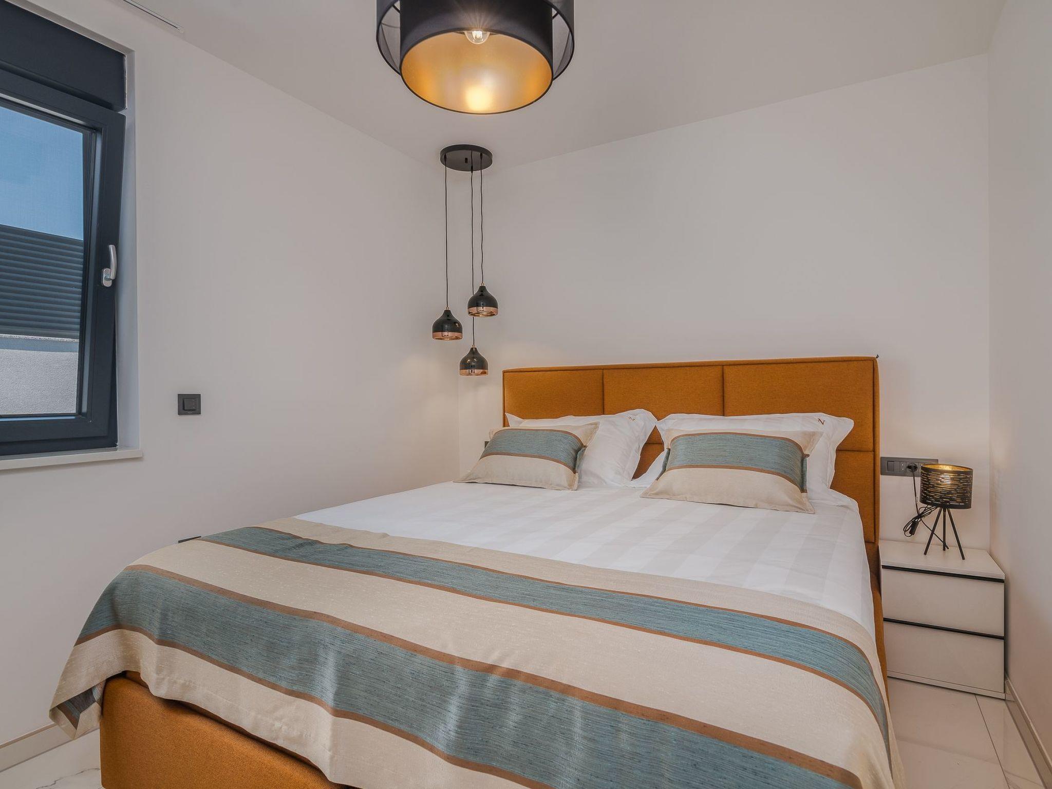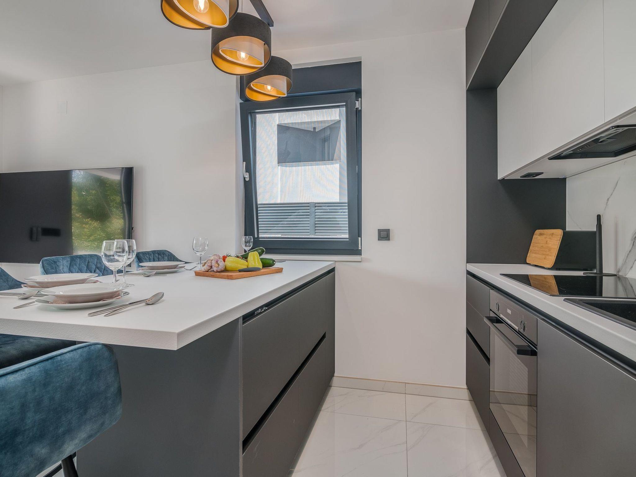 A beautiful, modern apartment AK lux with a pool for four people, is located in the town of Njivice in a newly built apartment house. Apartment AK lux is located on the ground floor and has its own swimming pool and garden with deckchairs. It can accommodate 4 people in two bedrooms with double beds. The apartment also has a private bathroom with a shower, a well-equipped kitchen with a dining room, and a living room with a view of the terrace and garden. The apartment is air-conditioned, has heating, and necessary appliances such as a dishwasher, washing machine, oven, coffee machine, kettle, toaster.The center of the town and the nearest beach are only 600 meters from the apartment, and there are other facilities nearby that can be of use to you during your stay in the AK lux apartment.