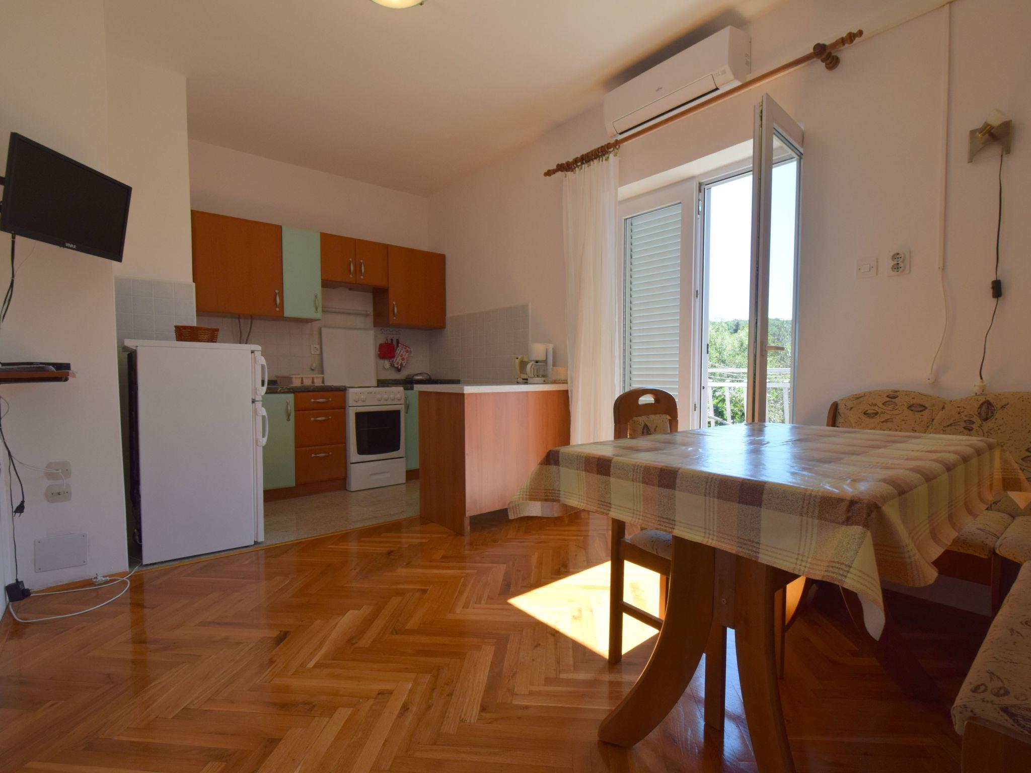 The house is located in the center of Njivice, 150 m from the beach. There are three apartments in the house. Each apartment can accommodate a maximum of 2 people and consists of one bedroom with a double bed, kitchen with dining area, and bathroom. It has a TV without Sat, air conditioning, and WiFi. The 1st and 2nd-floor apartments have a balcony and the ground-floor apartment has a part of the yard that can be used as a terrace. There is a parking in front of the house.