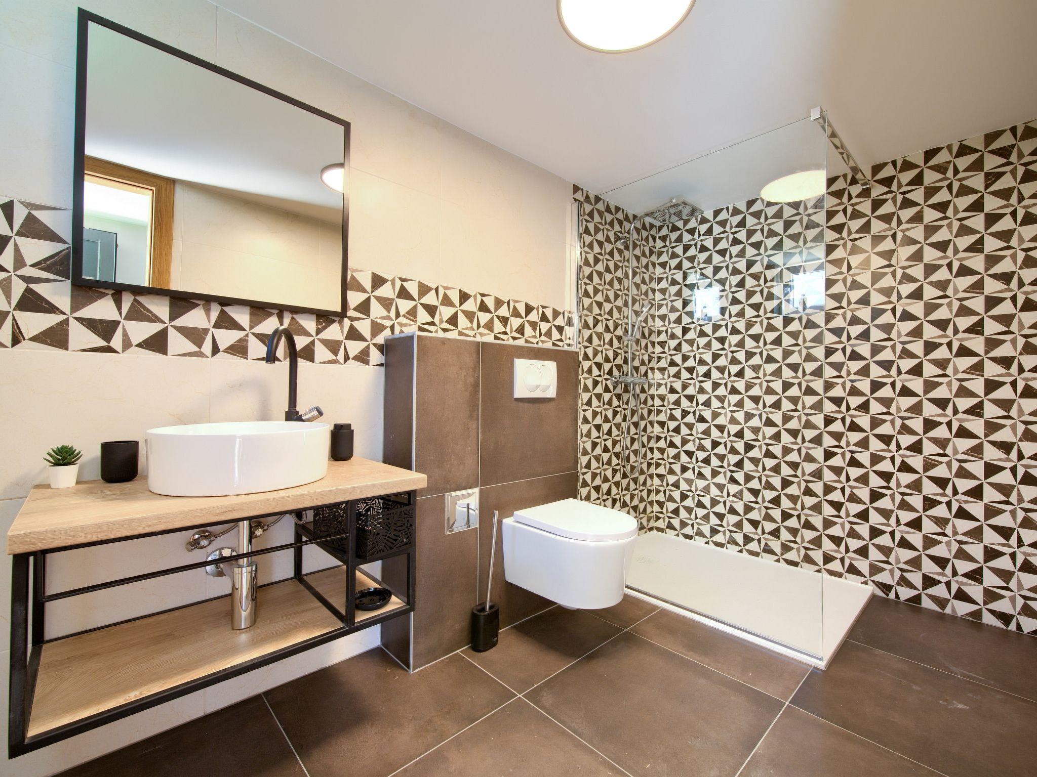 The exterior of the Siora apartment is a testament to leisure and relaxation. A stunning terrace unfurls outside, offering direct access to a captivating garden that is exclusively yours to enjoy. This outdoor haven is enhanced by a sparkling pool, inviting you to indulge in refreshing swims or relax on the deckchairs under the caress of the sun. For children, the joy of a trampoline awaits, and the fireplace sets the stage for enchanting evenings under the stars. Furthermore, the provision of a private parking space adds an extra layer of convenience.