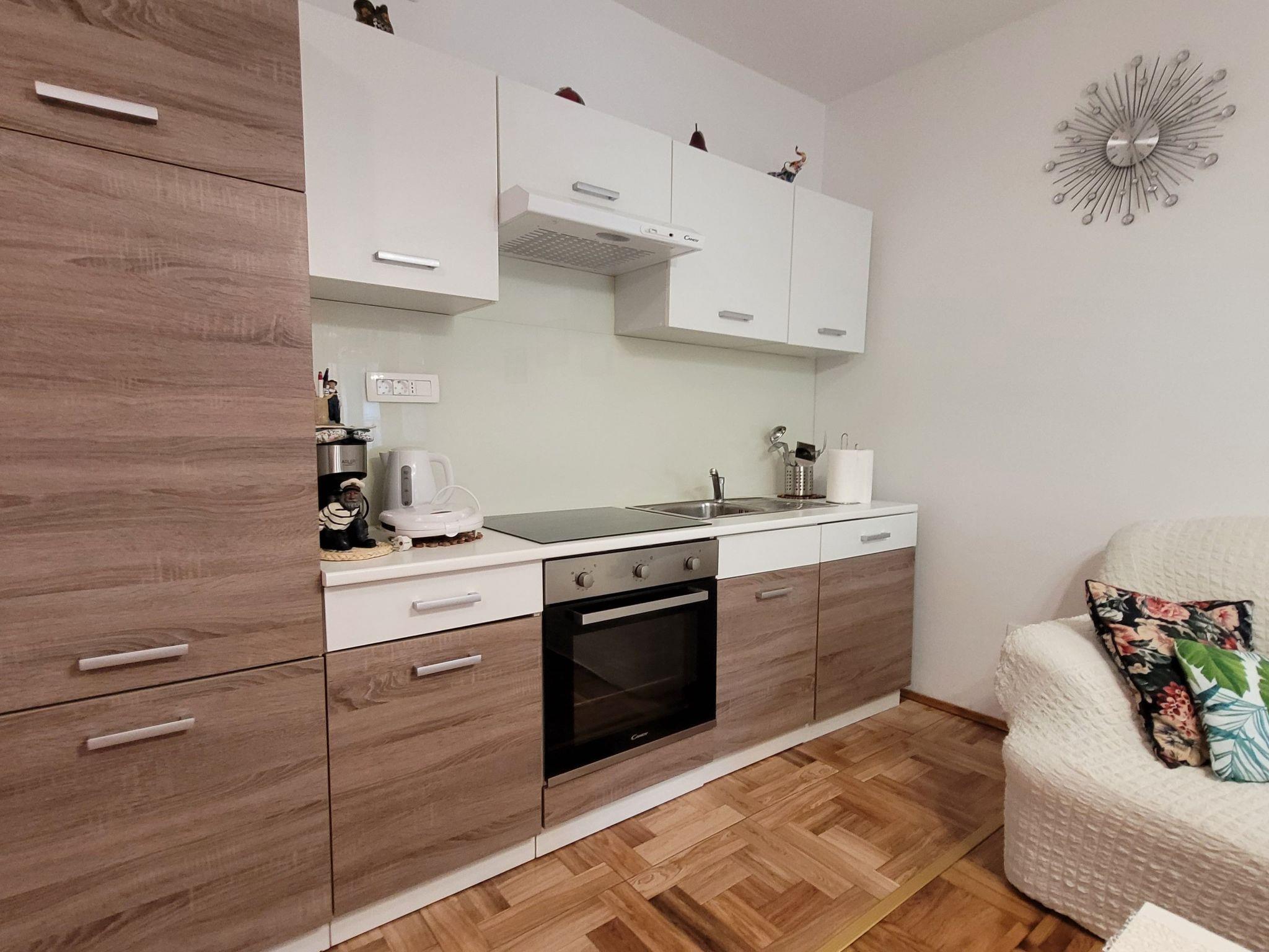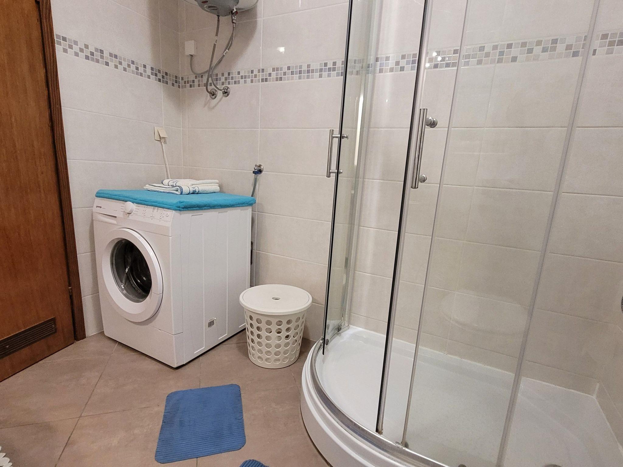 Inside, the apartment boasts a harmonious blend of comfort and functionality. Apart from the cozy bedroom designed to ensure a restful night, guests will find a well-appointed kitchen complete with a dishwasher, coffee machine, and electric kettle, allowing for effortless meal preparation. The living room, housing a comfortable sofa that serves as an additional sleeping option for the third guest, promises relaxation. Notably, the apartment includes a washing machine for exclusive use, ensuring the convenience of home is never too far away. Moreover, partial air conditioning adds to the comfort, making it a cool oasis during warm summer days.
