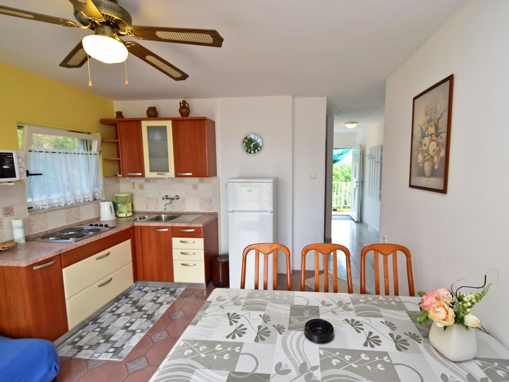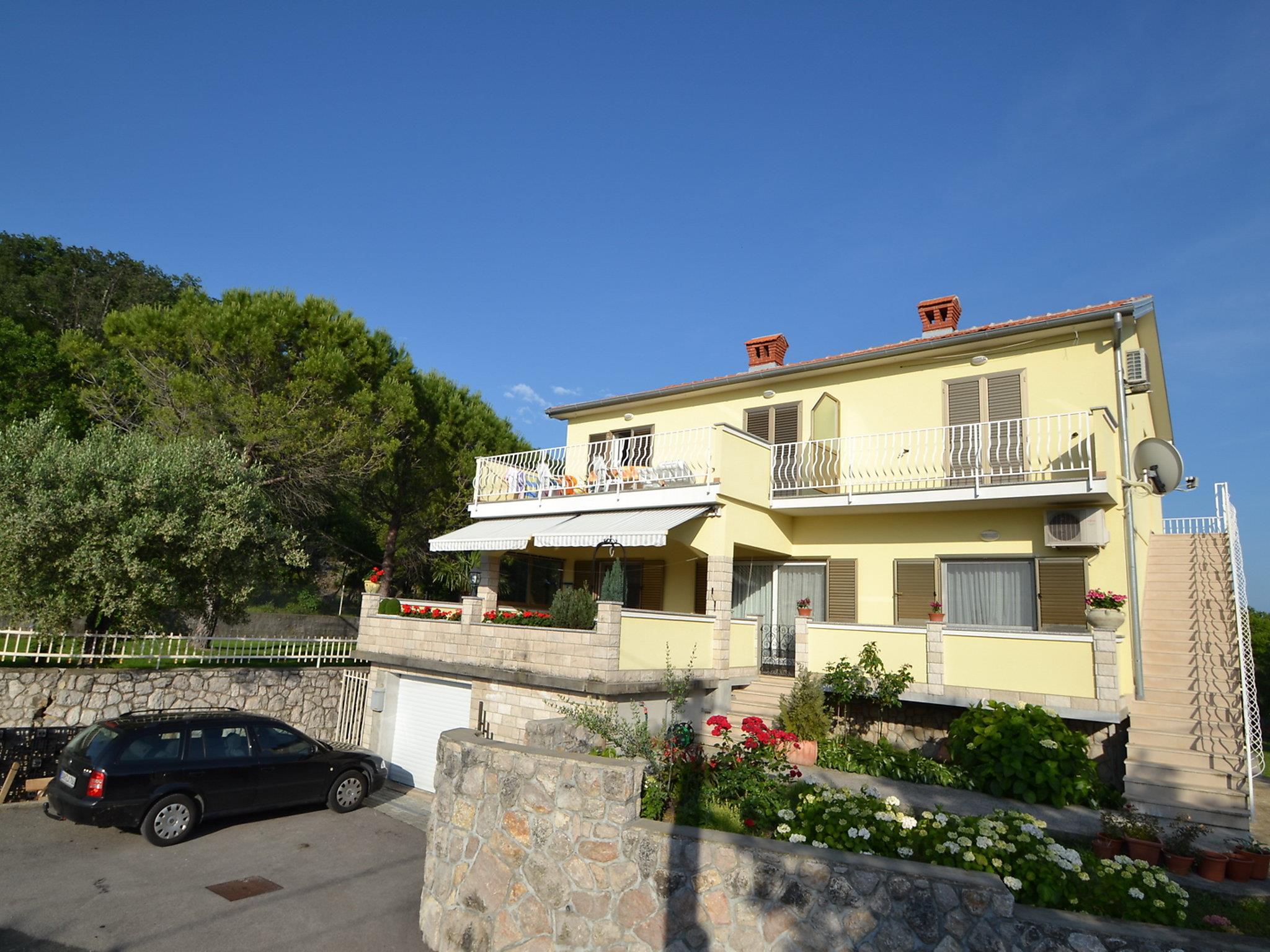 Beautiful 3-family house "Dada". 600 m from the centre, outside the resort, in a quiet, sunny, elevated position, 450 m from the sea, in the countryside. In the house: internet access, washing machine (for shared use). Parking at the house. Shop, restaurant 600 m, bus stop 1.3 km, pebble beach 450 m. Please note: Additional accommodations can be booked. The owner offers transfer from the airport to the object (extra cost).