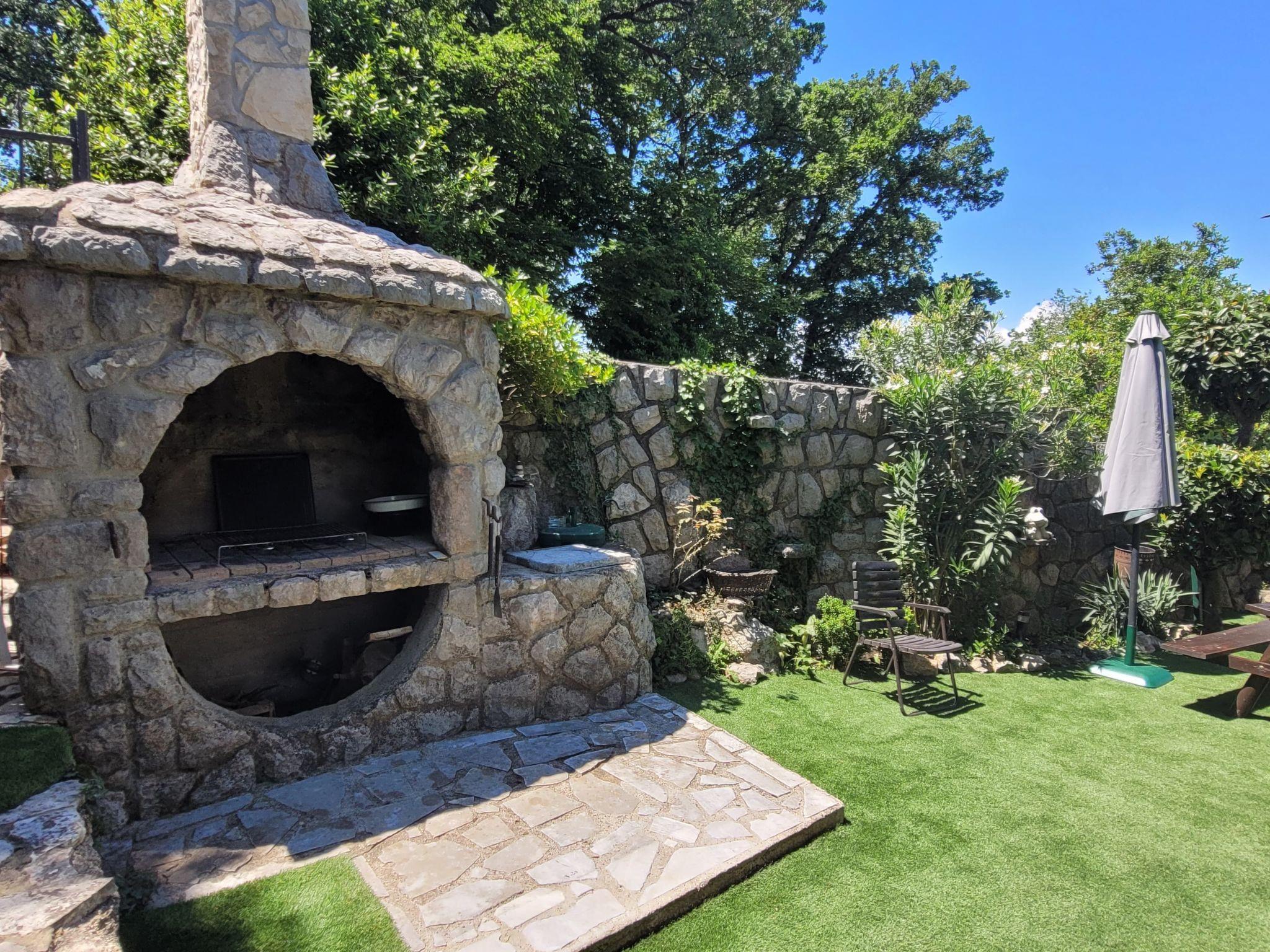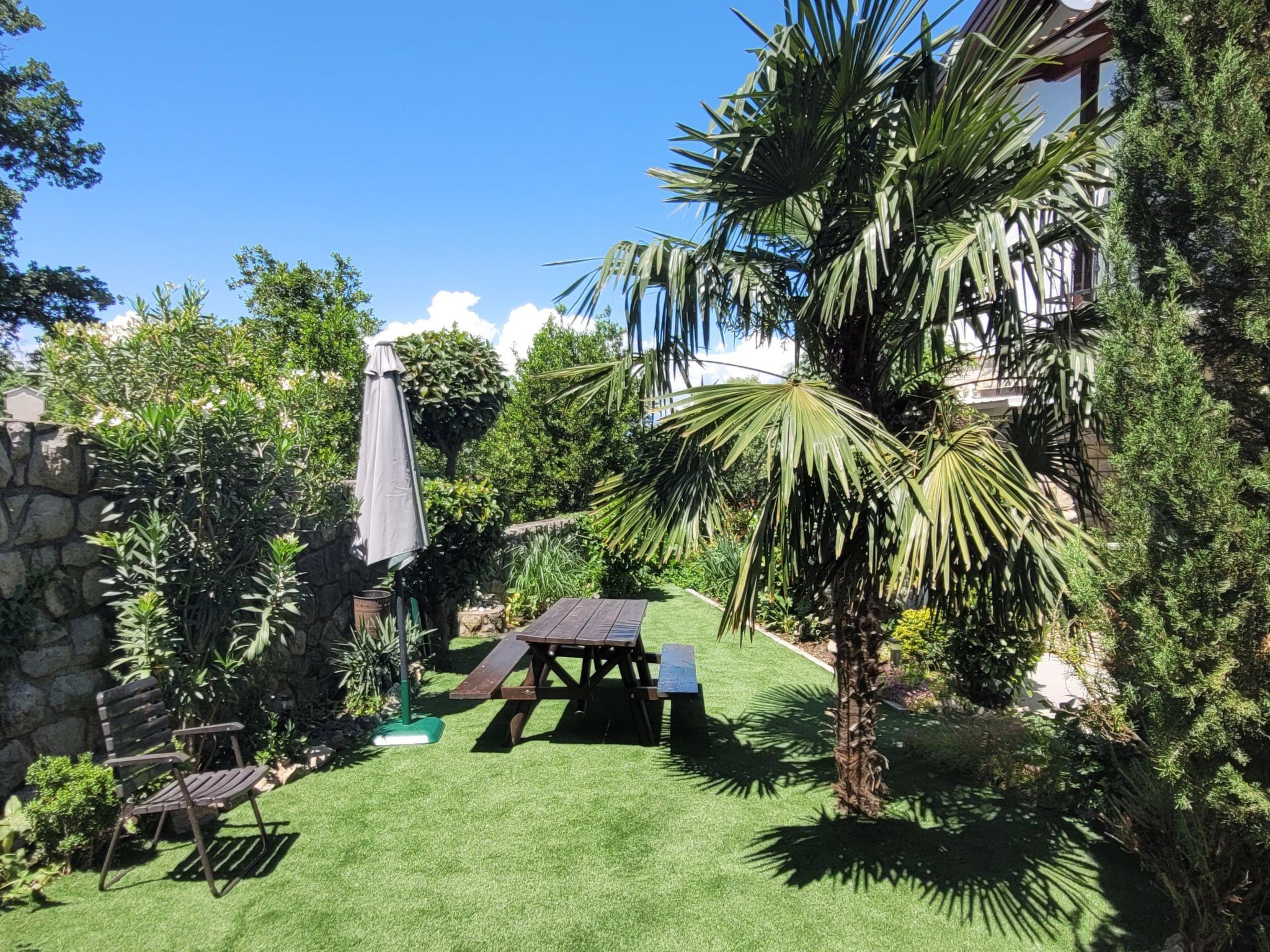 Outside, the ground floor apartment boasts a spacious terrace, ideal for alfresco dining or simply soaking in the calm atmosphere, while the 1st-floor apartment presents a balcony that gifts guests with glimpses of the sea, inviting one to unwind with a morning coffee or evening drink as they breathe in the coastal air. The meticulously manicured garden at the front of the house, complete with a communal fireplace area, offers a delightful spot for gatherings and making new memories.