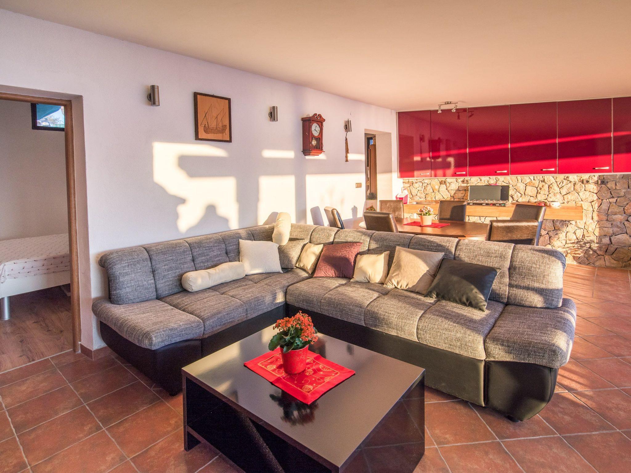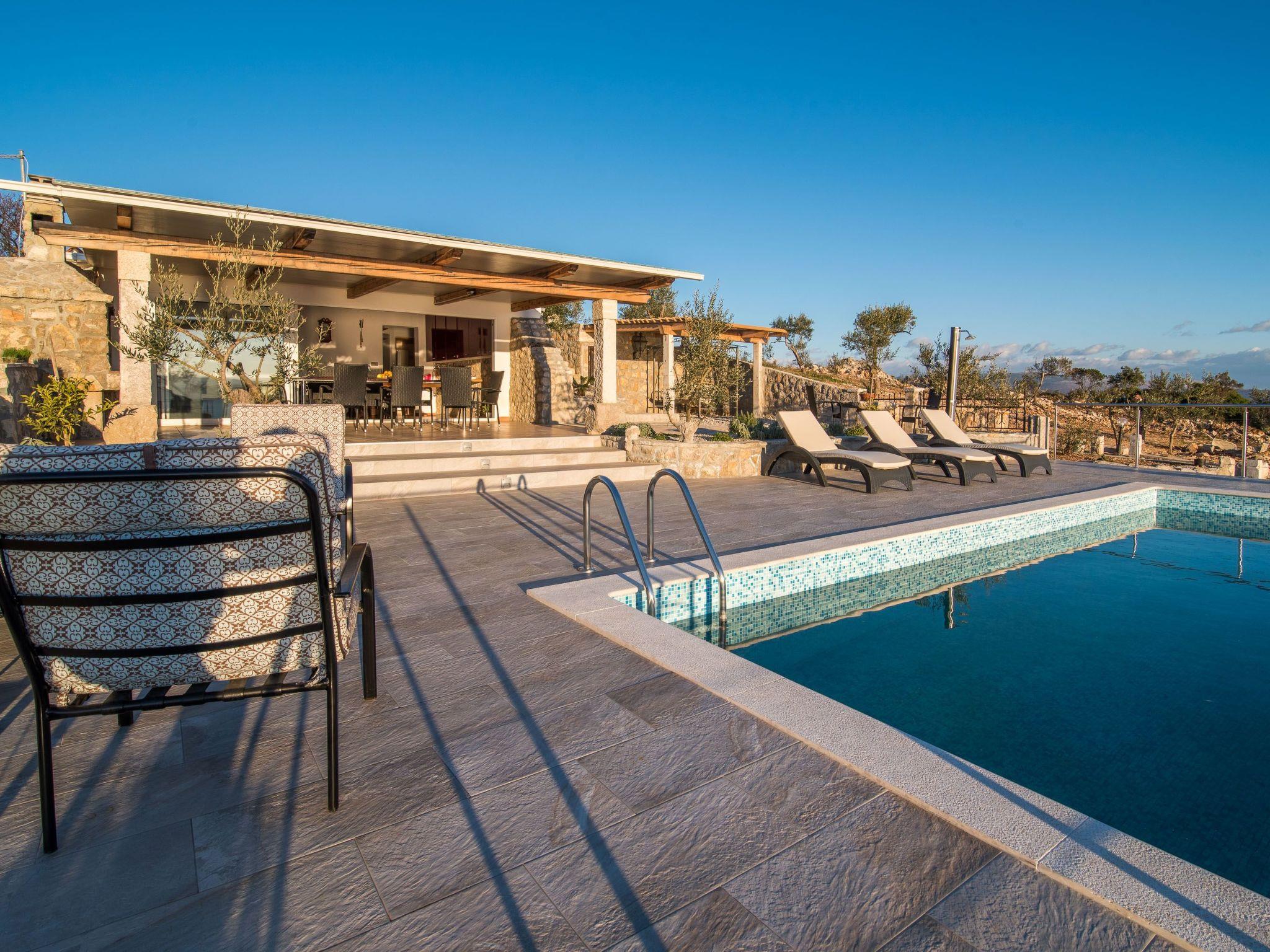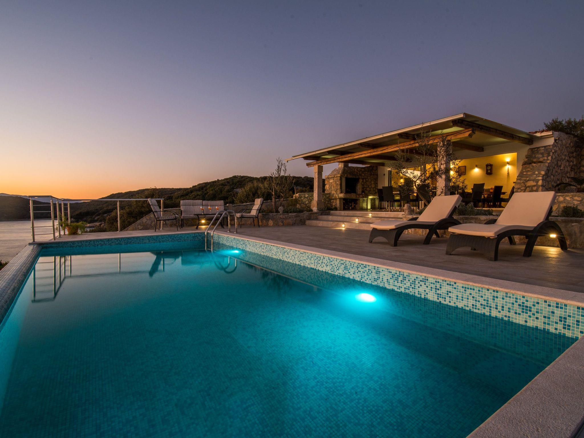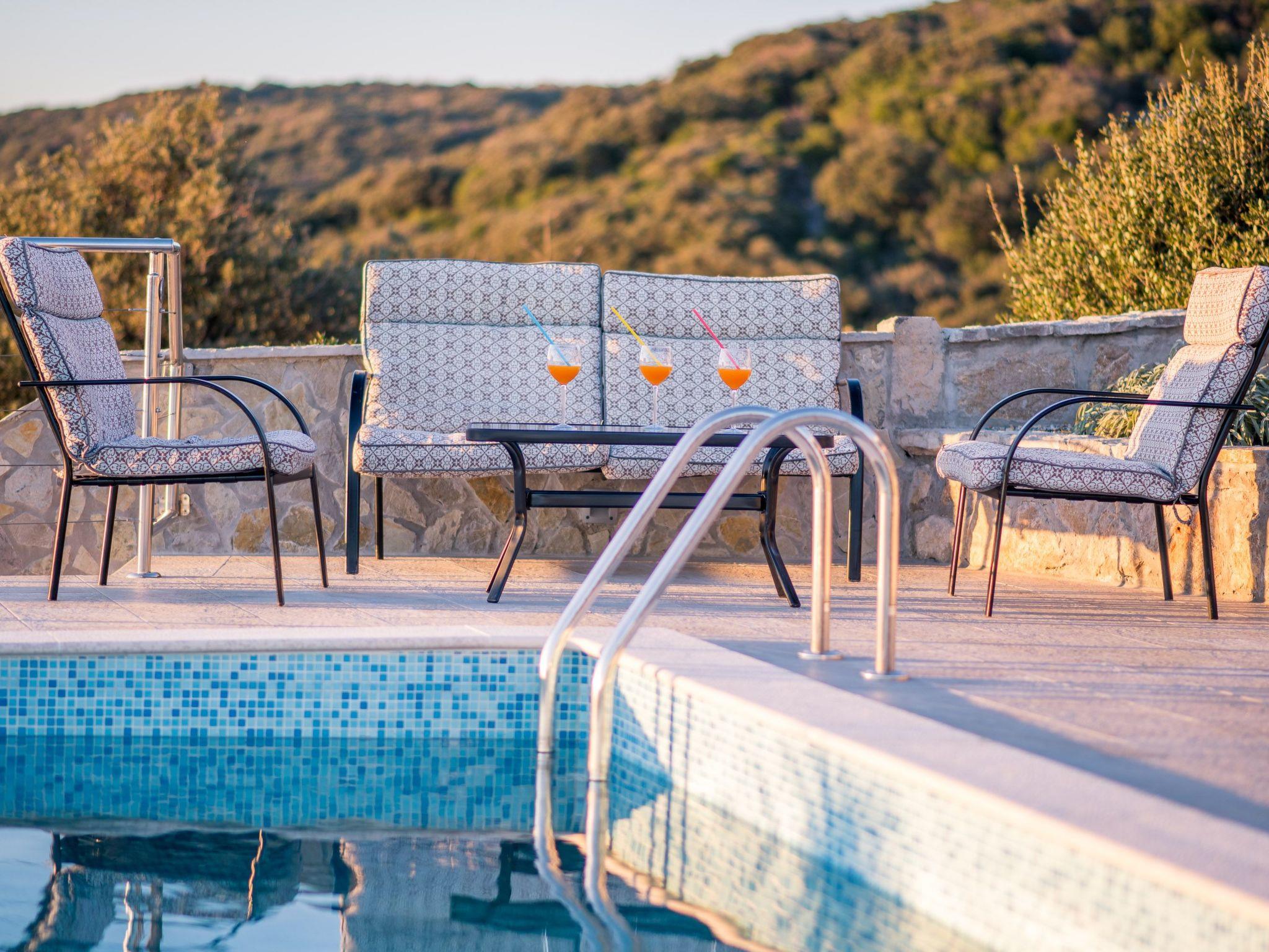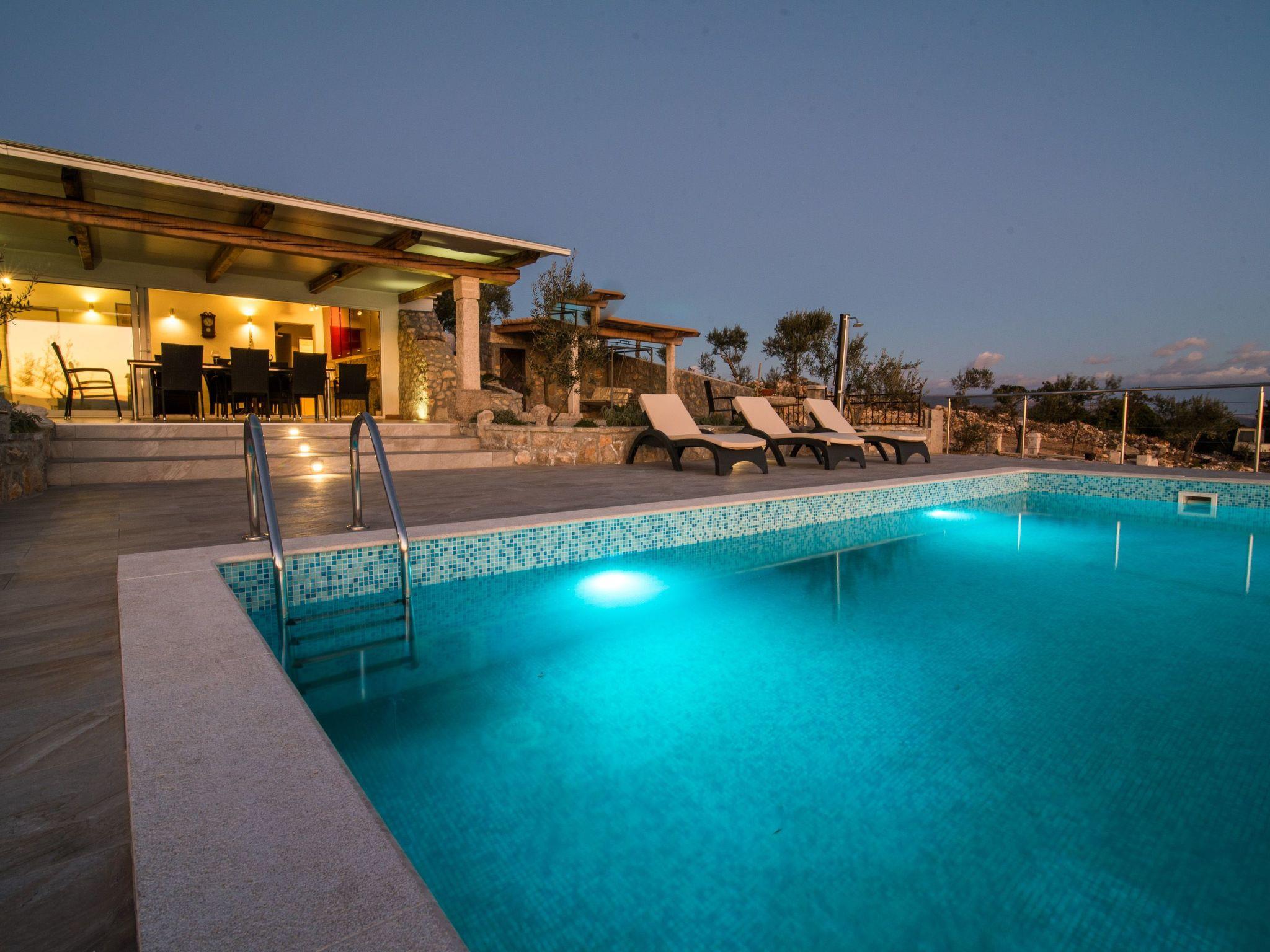 The living room opens to a large terrace where there are sofas, barbecue and an infinity pool and opened fabulous view in which you will surely enjoy. All around is a lot of olive trees and Mediterranean plants. Next to the pool is a terrace with a the stairs leading directly to the sea. Villa has 2 bedrooms, each with double bed, bathroom and outdoor shower. Two more people can sleep on the sofa bed in the living room so that it provides accommodation for a total of 6 people. The kitchen is equipped with modern furniture and contains a stove, washing machine, refrigerator, toaster and coffee machine.