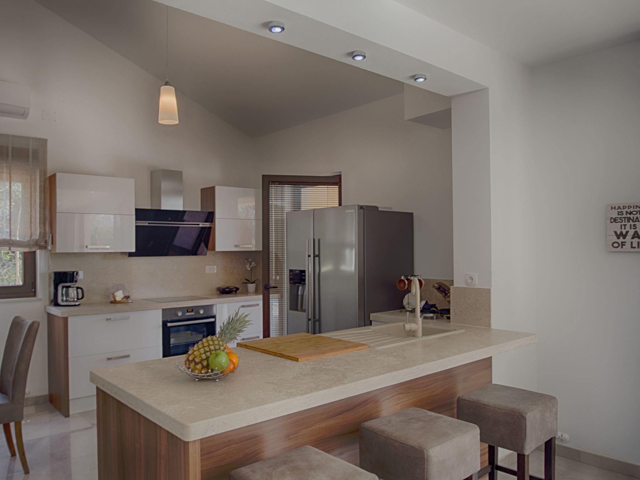 In the village of Pinezici on the island of Krk, 500 meters from the sea and beach, is the newly built Villa Laura. This villa is 140 m2 and includes three bedrooms.