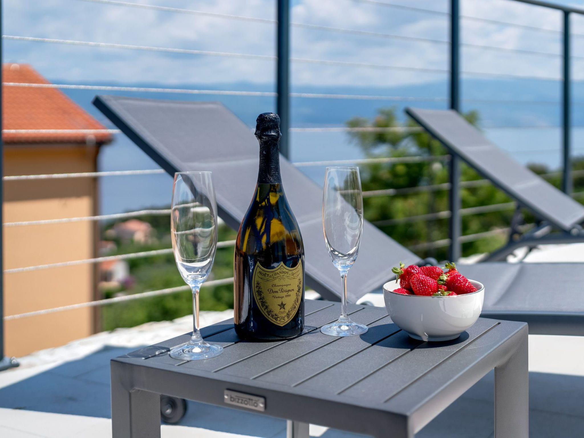 Villa Verbenico Hills is located in the small and quiet town of Vrbnik on the island of Krk, which is considered one of the most attractive places on the Adriatic. Vrbnik is a place with almost 900 years of history, full of hidden romantic streets (it has one of the narrowest streets in the world), surrounded by endless vineyards and with its wineries one of the most famous wine regions in Croatia. If you are a fan of good wines, you can enjoy them and at the same time discover the beauty of this beautiful city (personal recommendation of the owner of the villa – top quality red wine ("Curicta Riserva" from the Katunar winery and "Valomet" champagne grown at a sea depth of 32 meters and as such is a real attraction. In Vrbnik you can enjoy secluded beaches, in the center of the town is the Zgribnica beach and 2 km from the town center is the Potovošce beach with a small cafe-bar, sun loungers and parasols. Be sure to check out some of the restaurants in Vrbnik that are among the best on the island of Krk and enjoy local specialties and fresh seafood Book Villa Verbenico Hills and enjoy it in style!