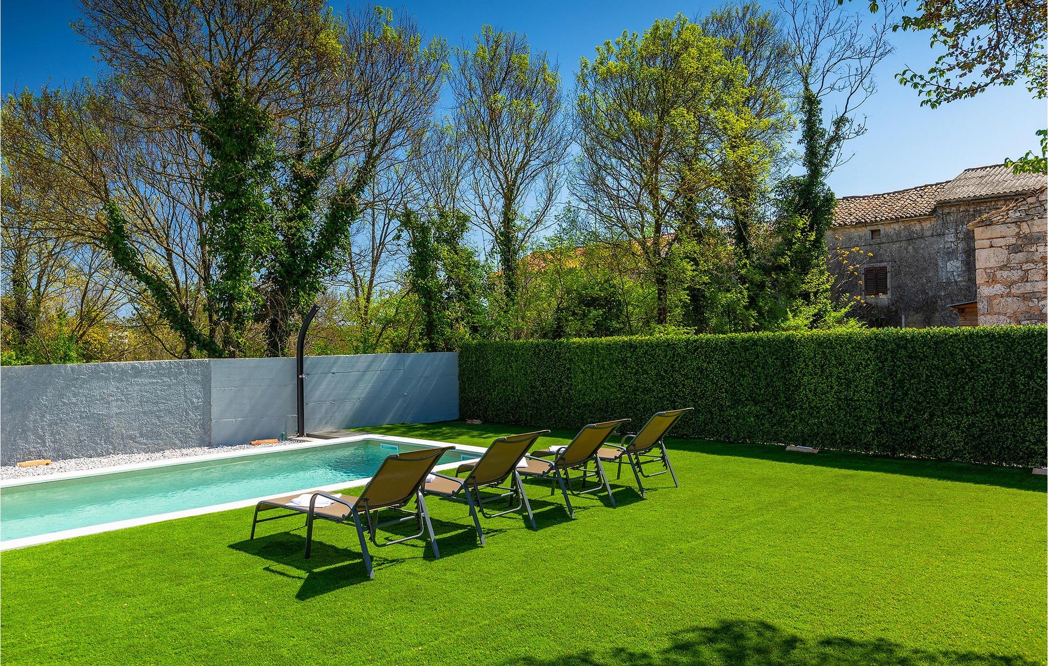Villa Tilia er et renoveret autoktont istrisk stenhus og er ideelt til en afslappende familieferie for op til 6 personer. Ønsker du at holde din ferie i solen, finder du i villaens have en indbydende pool med liggestole, hvor du kan slappe af med en forfriskende drink. Det velholdte udeareal byder desuden på overdækket spiseplads, udekøkken og gasgrill. Brug grillen til at tilberede lækre måltider. Interiøret er komfortabelt indrettet med stor sans for detaljer. 1. salen består af en åben planløsning og spisestue med køkken og direkte adgang til udearealet. På anden sal er der to soveværelser og et badeværelse. Villa Tilia er det perfekte valg til at undslippe din hverdag og tilbringe en uforglemmelig ferie.Villa Tilia ligger i landsbyen Prodol i en smuk beliggenhed, som giver gæsterne mulighed for at udforske de omkringliggende mindre byer og besøge deres restauranter med berømte istriske specialiteter. Hvis du ønsker at forblive aktiv under din ferie, er dette det ideelle sted for dig! Det omkringliggende område byder på adskillige rekreative muligheder: Cykling, ridning, jogging, vandreture og meget mere. Den historiske by Pula ligger kun en kort køretur væk. Pula er den største by i Istrien og byder på et udvalg af barer, restauranter og seværdigheder. Besøg det berømte amfiteater fra det 1. århundrede. Mange begivenheder finder sted her, lige fra koncerter og filmvisninger til sportsbegivenheder. Vi anbefaler at tage en dagstur til Brijuni National Park. For mere information gennemse vores MyIstria-guide, hvor du finder adskillige tips til udflugter i området.