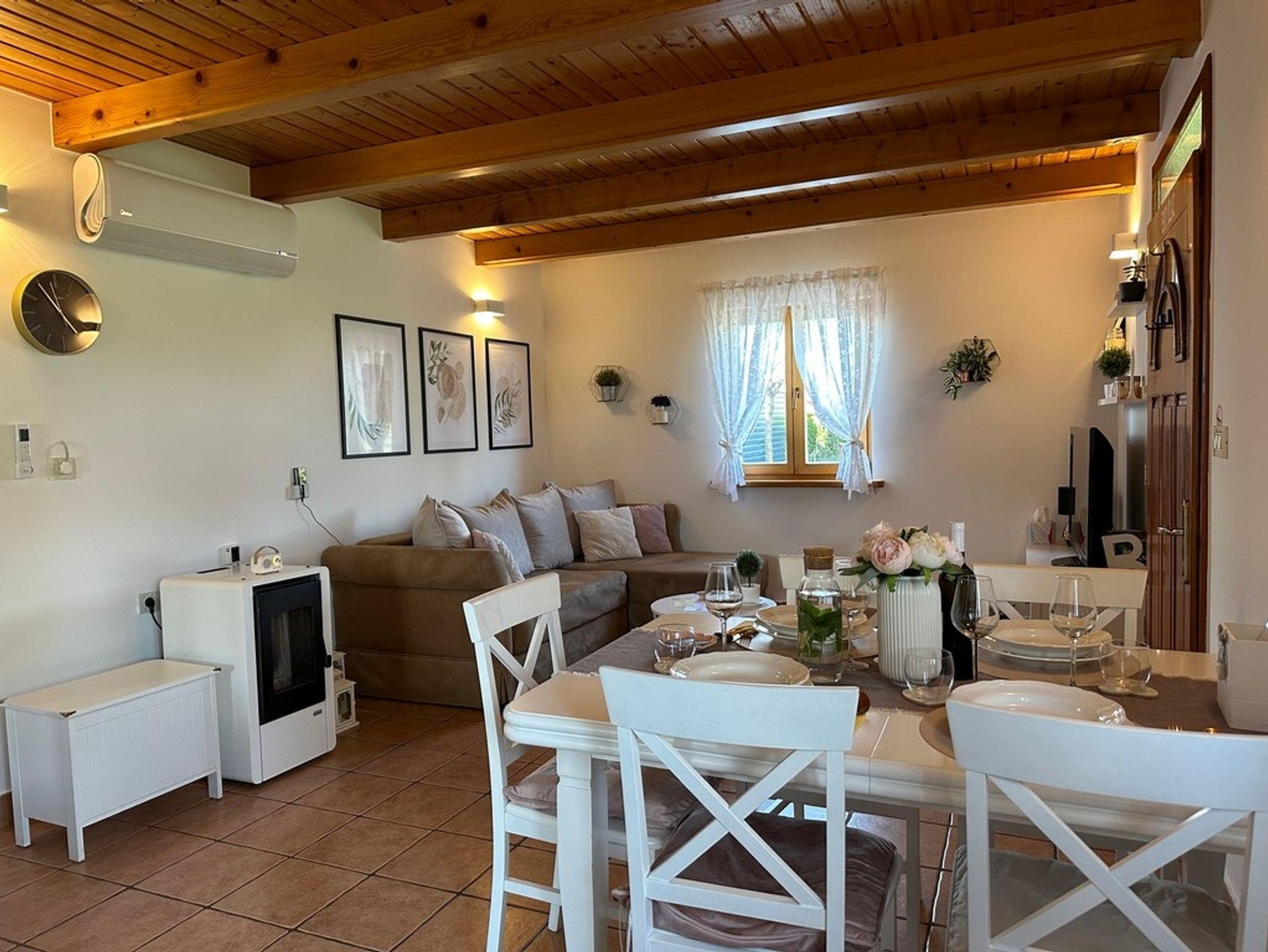 Haus bietet Platz für 4 Gäste. Die Betten sind in Schlafzimmern, die es 1 gibt, und in Wohnzimmer, innerhalb einer Gesamtfläche von 59m2, angeordnet. Die Gäste haben eine eigene Terrasse zur Verfügung, auf der sie in warmen Sommernächten genießen können. Für vollen Genuss und Entspannung gibt es einen privaten Grill für Gäste dieser Unterkunft. In der Unterkunftseinheit besteht die Möglichkeit des Mitbringens von Haustieren gegen Aufpreis. IM PREIS INBEGRIFFEN: Kurtaxe, Endreinigung, Klimatisierung, Parkplatz, Internet, Kinderbett, Föhn. UNVERBINDLICHE ZUSÄTZLICHE KOSTEN: Haustiere (10,00 € pro Nacht), Fahrrad (8,00 € täglich (pro Stück)). Die Verfügbarkeit zusätzlicher Dienstleistungen in Ihrem reservierten Termin und die Preise derselben (falls nicht aufgeführt) müssen im Voraus überprüft werden. Zusätzliche Dienstleistungen die in der Zahlungsaufforderung nicht aufgeführt sind werden direkt beim Vermieter bezahlt, angenommen der Gast nutzt auch diese. Ermäßigung auf den Grundpreis: Gratistag 28=25 (bei einem Aufenthalt von 28 oder mehr Tagen erhalten Sie 3 kostenlose Tage für den Aufenthalt bis 31.12.26).