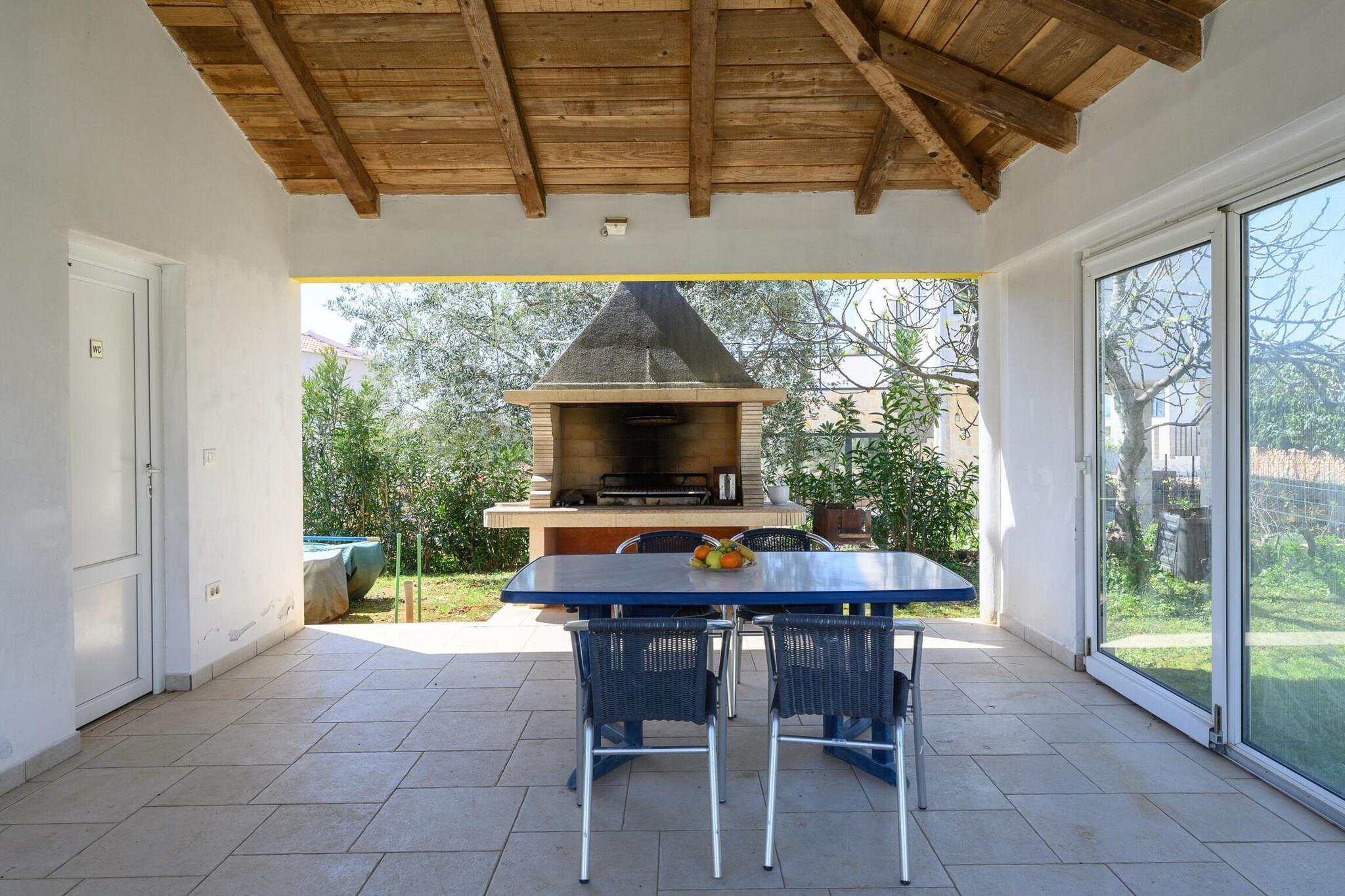 Ejendommen tilbyder sammen med sin hyggelige og effektive planløsning en etværelses lejlighed med plads til op til tre gæster. Lejligheden er designet til komfort og bekvemmelighed, og byder på en have med udendørsmøbler, en indhegnet grund og en grillplads til udendørs spisning. Gæsterne kan nyde den fælles swimmingpool, perfekt til afslapning. Lejligheden er veludstyret med moderne bekvemmeligheder, herunder aircondition, varmepumpe til komfort året rundt, Wi-Fi, tv med satellitkanaler på engelsk og tysk og udendørs parkering på ejendommen. Altanen byder på et behageligt sted at nyde omgivelserne. Beliggende i Kukci, er lejligheden beliggende i fredelige forstæder, hvilket giver nem adgang til nærliggende attraktioner og tjenester. Gæsterne kan udforske de nærliggende strande, restauranter og byen Porec, som ligger kun en kort køretur derfra. Lejlighedens beliggenhed sikrer også nem adgang til shopping og offentlig transport, hvilket gør den til en ideel base for at udforske Istrien-regionen. Lejlighedens åbent køkken er fuldt udstyret med induktionsapparater, herunder køleskab, mikroovn, fryser, opvaskemaskine, kaffemaskine, brødrister og kedel. Den er fyldt med alt nødvendigt køkkenredskaber, tallerkener og bestik, hvilket gør måltidstilberedningen ubesværet. Med tankevækkende faciliteter og en fredelig beliggenhed er denne lejlighed velegnet til små familier eller par, der leder efter et behageligt og bekvemt sted at bo.