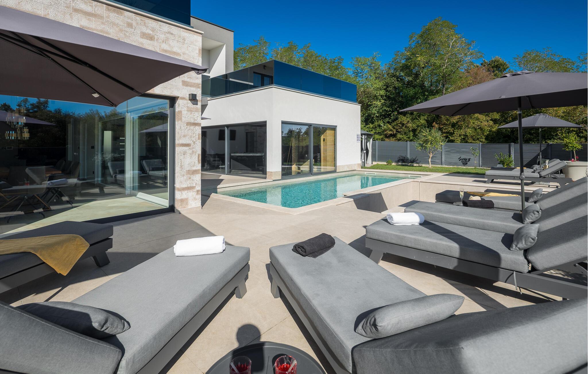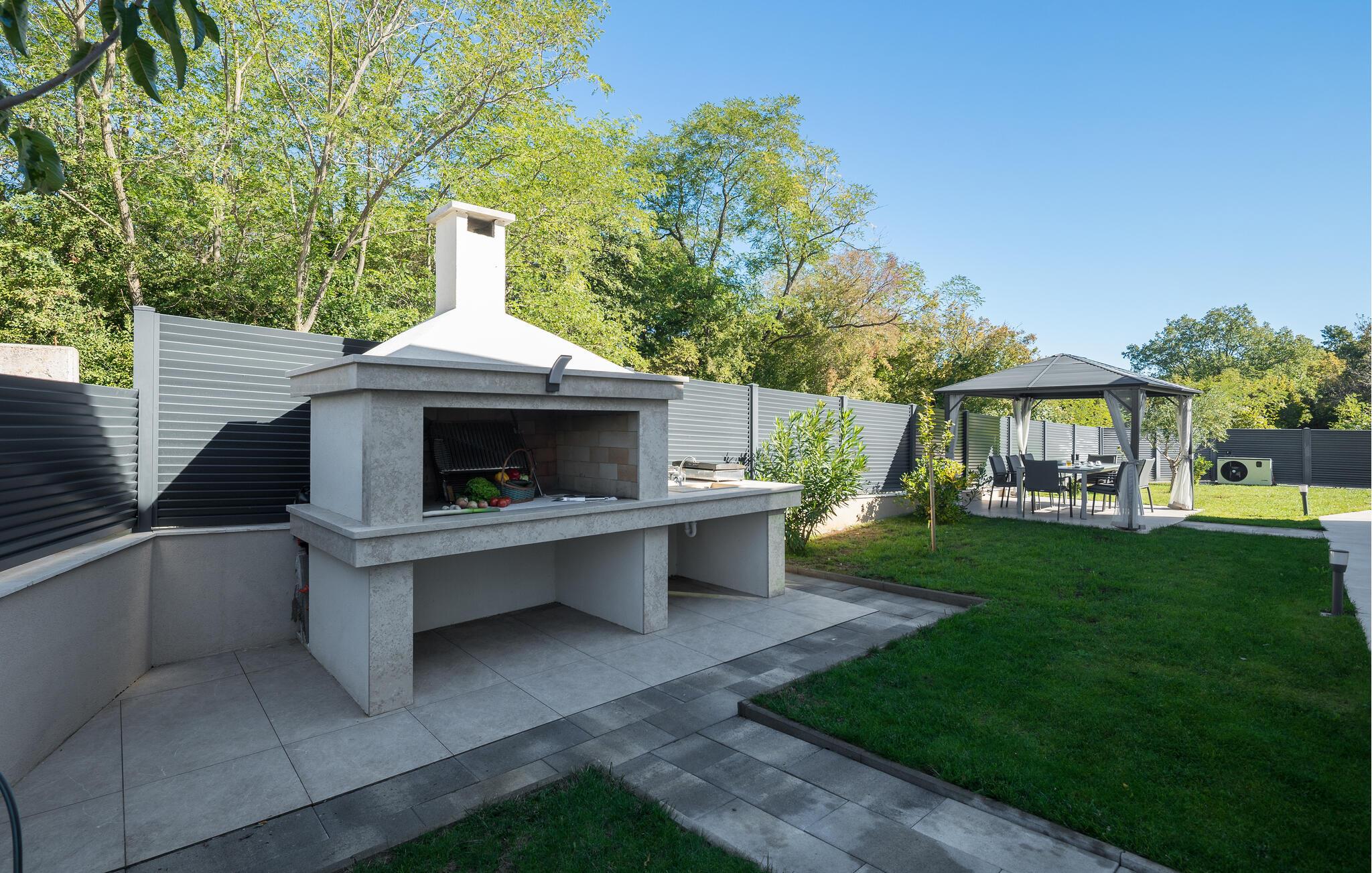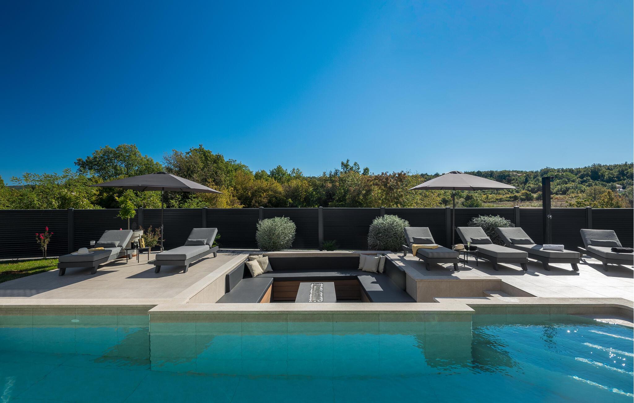 Træd udenfor og bliv overrasket over de mange faciliteter på det stilfulde udendørsområde. Dyk ned i den forfriskende pool eller slap af på liggestolene, nyd en solnedgang i det overdækkede loungeområde og organiser atmosfæriske grillaftener.