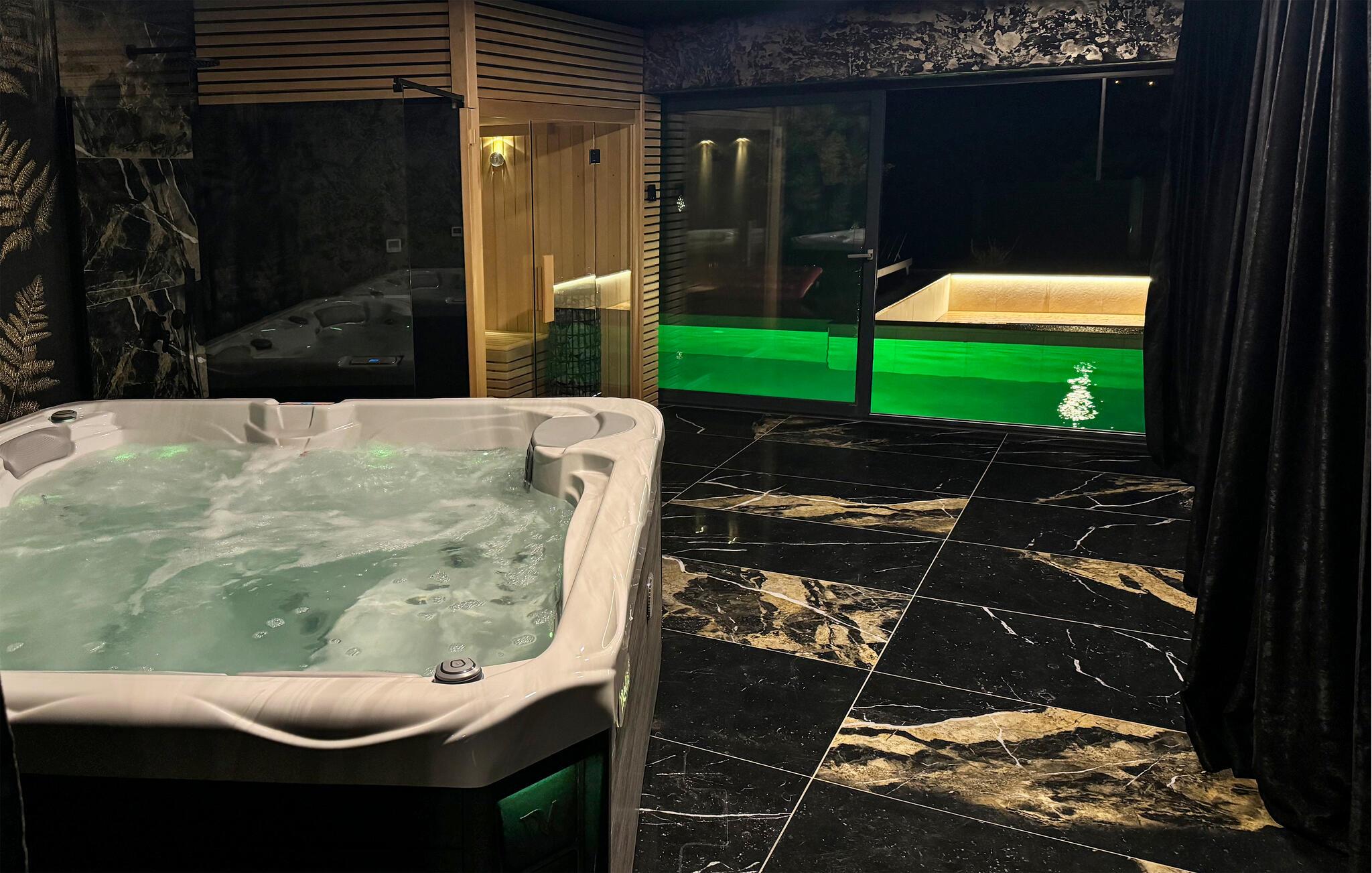 Book afslapning med vennerne i dette luksuriøse feriehus med spa-område og pool.
