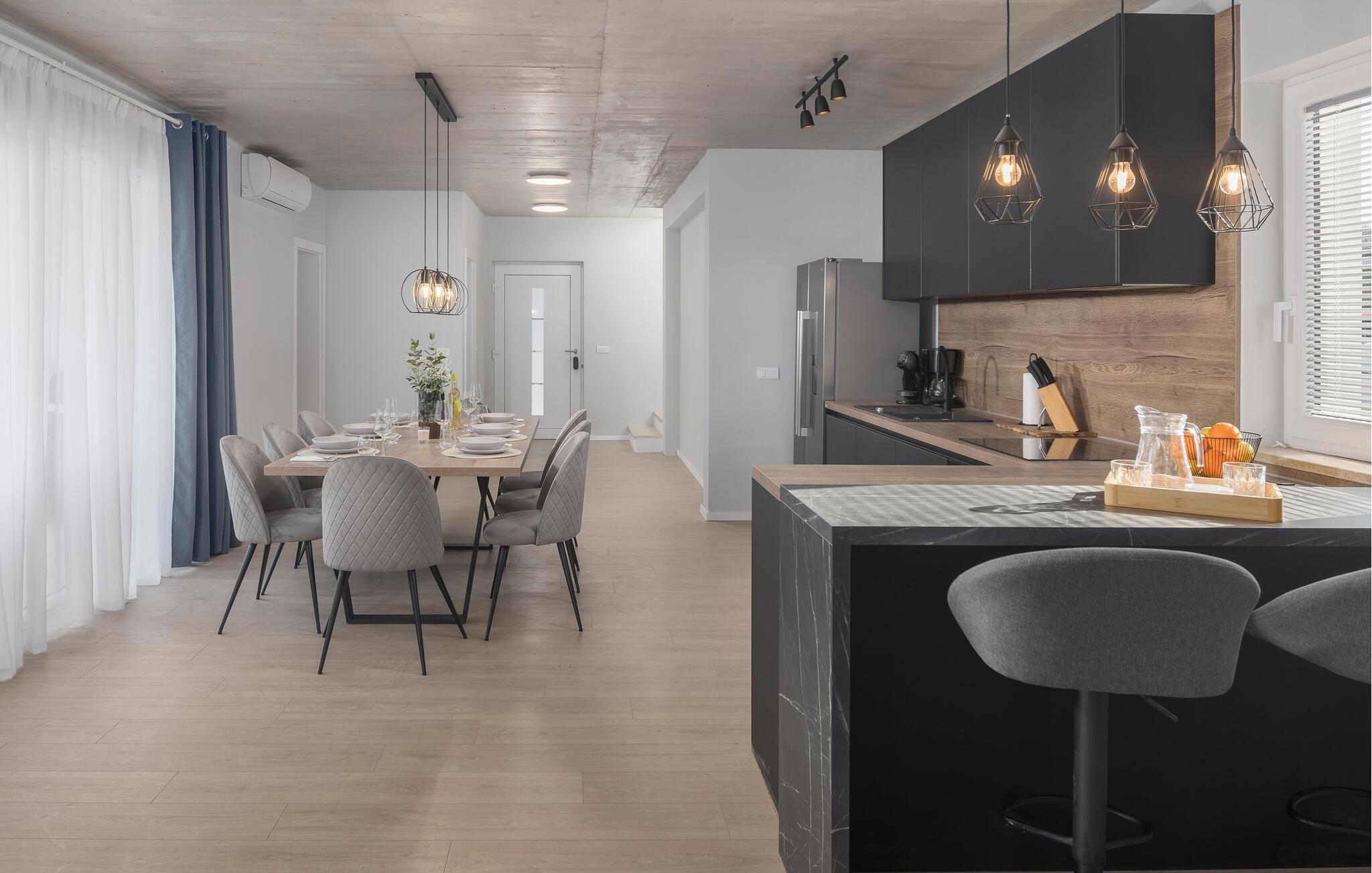 Velkommen til dette stilfuldt indrettede feriehus, hvor I kan nyde jeres velfortjente ferie i fulde drag. Tryl jeres yndlingsretter frem i det hyggelige, fuldt udstyrede køkken, og nyd måltiderne ved det elegante spisebord. Om aftenen kan I slænge jer i den indbydende sofagruppe og bruge tiden sammen på gode samtaler over et glas vin eller en hyggelig spilleaften.