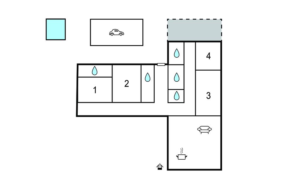 Badeværelse 4m2 (nr. 4) - WC. Varmt og koldt vand. Bruser