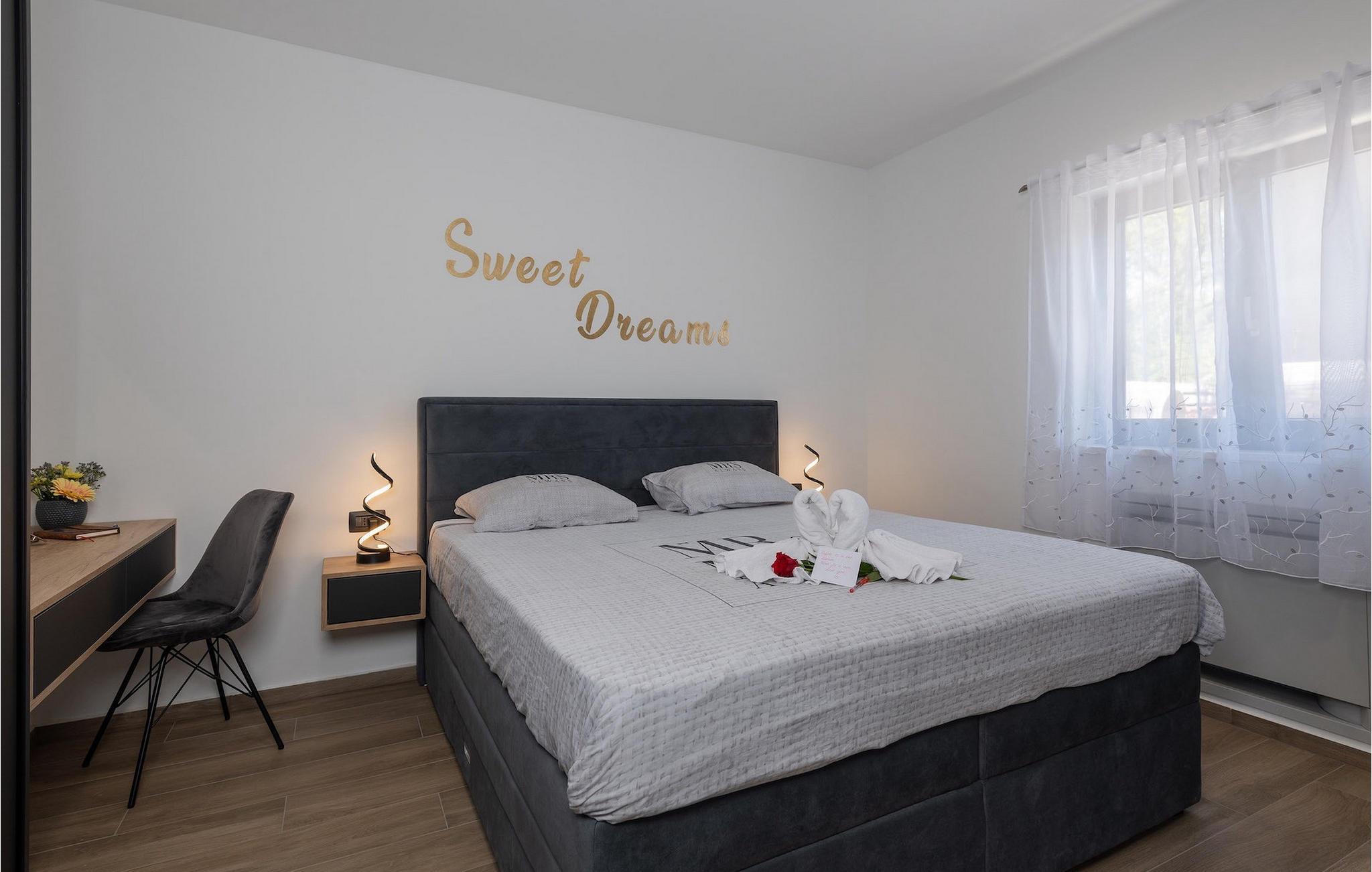 Villa Alison Deluxe er en oase af velvære, hvor du kan flygte fra hverdagen og tilbringe en skøn pause med dine kære. Beliggende i landsbyen Zupanici nær Labin, tilbyder dette charmerende tilflugtssted dig den fred og afslapning, du ønsker. På solrige sommerdage vil du føle dig helt tilpas i den 32m2 store, forfriskende pool eller på en af de komfortable liggestole med en kølig drink i hånden. Nyd de lækre lokale delikatesser frisklavet på kulgrillen på den hyggelige overdækkede terrasse, mens du ser børnene lege i haven. Et højdepunkt til romantiske sommeraftener eller en weekend for to er uden tvivl wellness-området med spabad og sauna. Interiøret er smagfuldt indrettet og emmer af elegance. Ikke desto mindre vil du føle dig helt hjemme her. Den åbne, airconditionerede stue med en komfortabel sofa og tv er direkte forbundet med spisepladsen med et fuldt udstyret, moderne køkken. To soveværelser med komfortable dobbeltsenge lover afslappende nætter. Begge soveværelser har hver deres eget moderne badeværelse med bruser, der tilbyder det privatliv og den komfort, du forventer. Villa Alison Deluxe er perfekt til 4 gæster, men kan også rumme to børn på udtrækssofaen i stuen. Tøv ikke, forkæl dig selv med lidt luksus og tilbring en uforglemmelig ferie i den smukke Villa Alison Deluxe. Villa Alison Deluxe er beliggende nær de kendte byer Labin og Rabac, på østkysten af Istrien. Regionen er kendt for sine kunststudier og også for en fremragende gastronomisk scene. På dagsture kan du nyde det smukke landskab i det centrale Istrien omkring Motovun eller udforske kystbyer som Pula, Porec og Rovinj. Mange familievenlige strande eller endda skjulte, uspolerede bugter er kun en kort køretur væk fra villaen. For adrenalinelskere anbefaler vi den nærliggende Galvani Adrenaline Park, hvor du kan opleve aktiviteter som kajaksejlads, quad-cykling og safari. Cykling og vandreture på kendte stier gennem idyllisk natur er også ideelle her. For elskere af gastronomi er smagning af istriske delikatesser - istrisk malvasia, prosciutto og pasta med trøfler, som denne region er berømt for, et must. Temperaturen i den opvarmede swimmingpool er afhængig af eksterne faktorer, herunder vejrforhold, og som sådan kan temperaturen på vandet ikke garanteres.