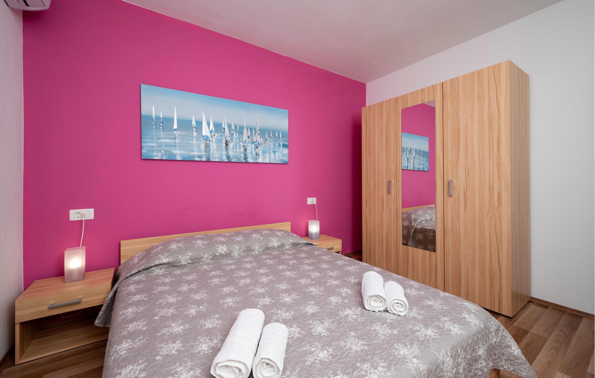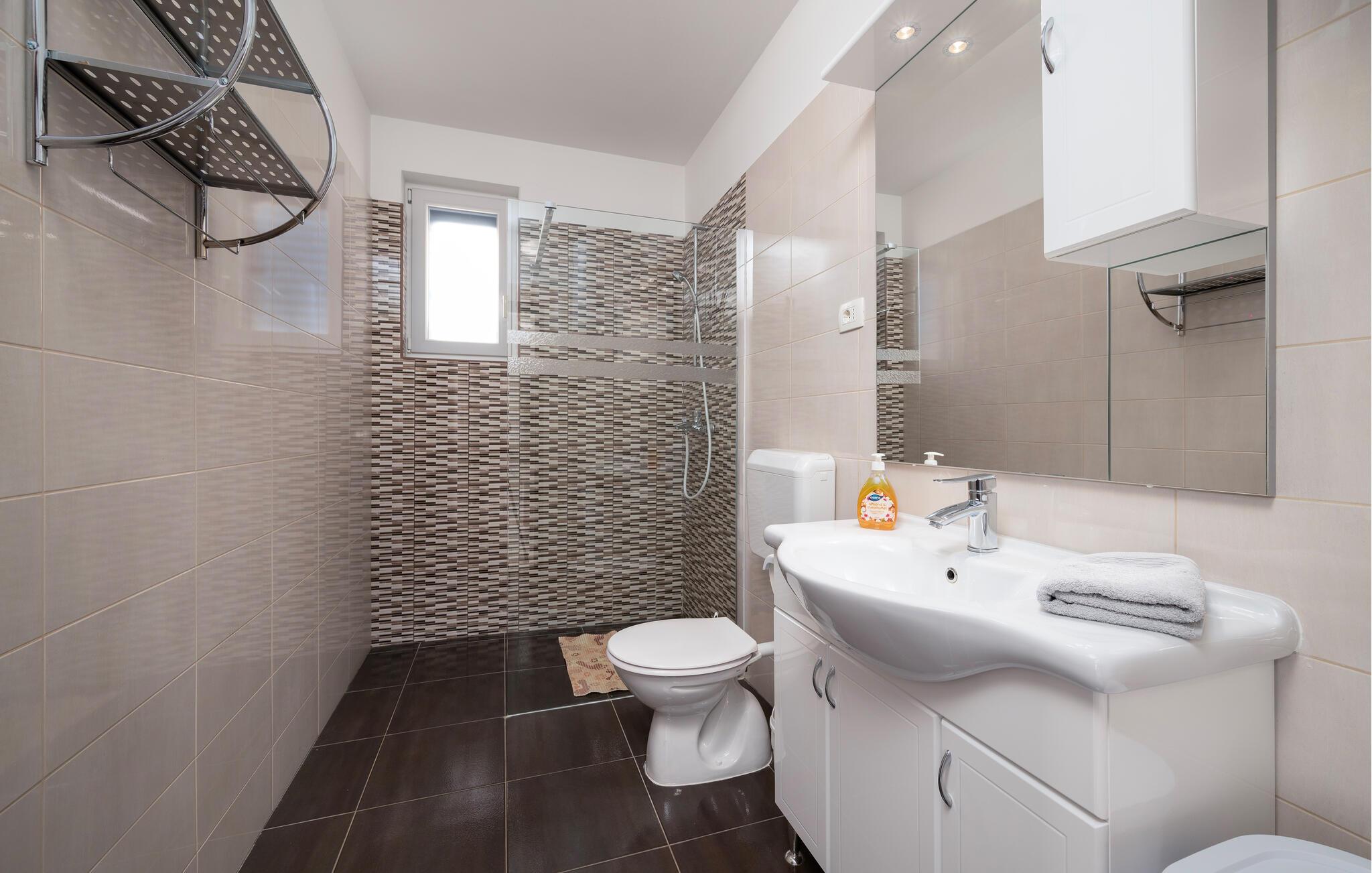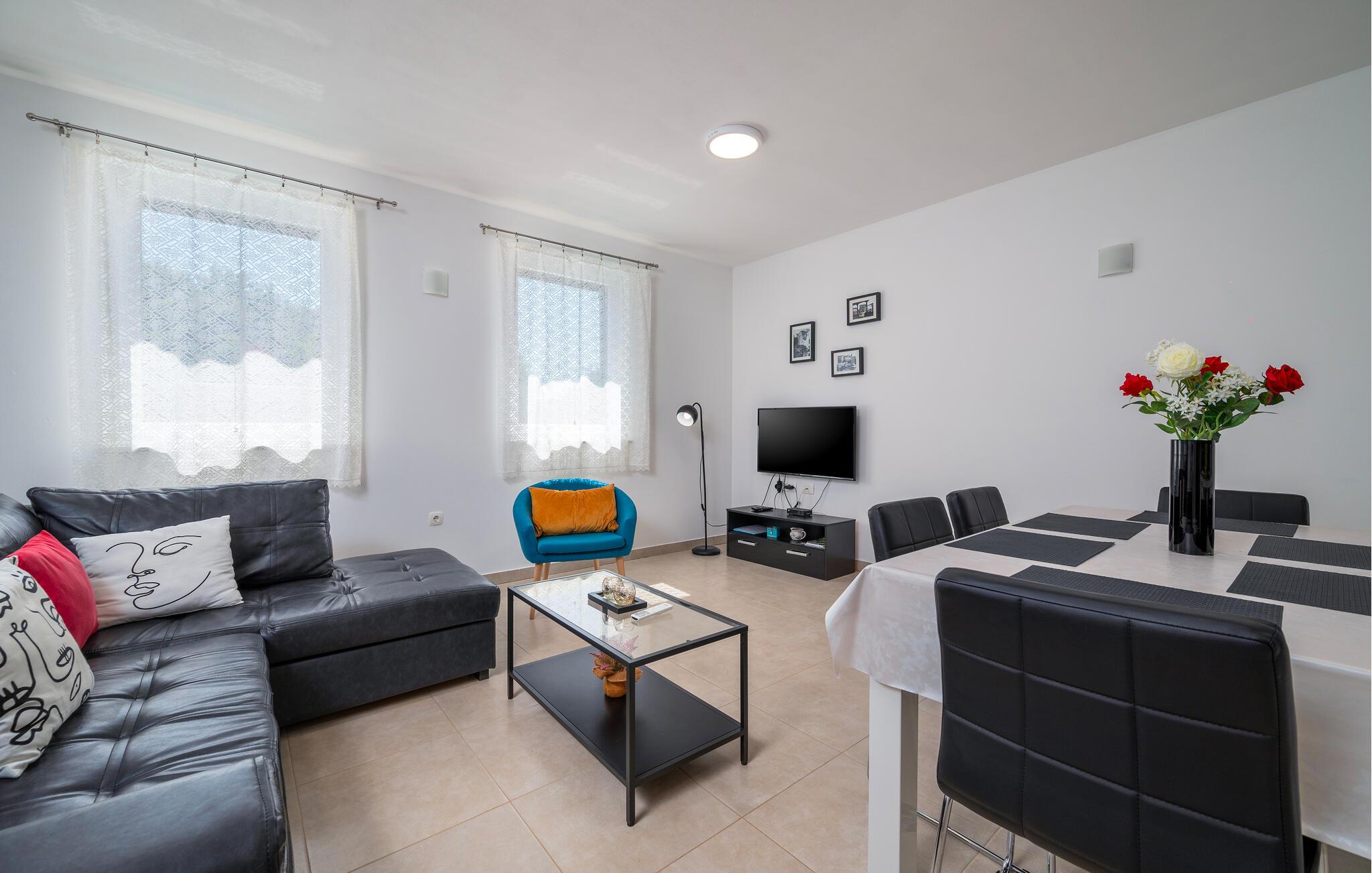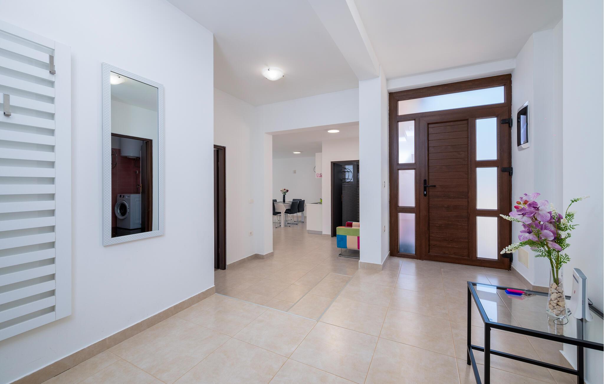 Tag familien under armen og rejs til solrige Kroatien, hvor I i dette rummelige hus får alt, I behøver for en afslappende ferie uden de store bekymringer. Indretningen fremtræder moderne og stilrent med en velvalgt udsmykning. Komfort og funktionalitet er i højsædet her, og fra entreen kan I via de to trapper komme op til stuen og køkkenet, der er har et lyst og luftigt udtryk.