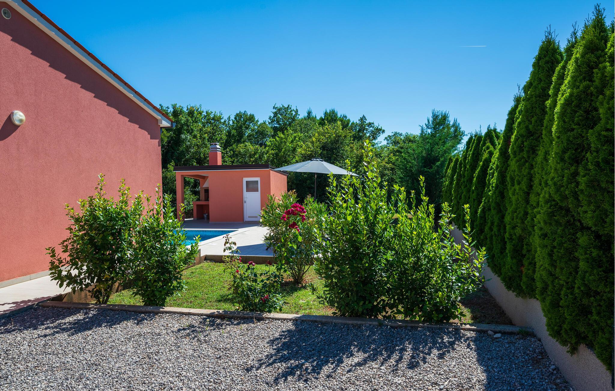 Huset ligger i rolige omgivelser med al den fred og privatliv, I kunne drømme om. Til huset hører et lækkert pool-område, hvor I kan bade i solen og dyppe jer, når varmen er ved at få jer. Find jer godt til rette med en god bog, mens børnene løber og spiller bold i haven, inden I begiver jer på udflugt. Tæt på huset ligger to nabohuse, så I får en følelse af fællesskab og nærhed, men dog også er isolerede nok til at nyde privatlivets fred.