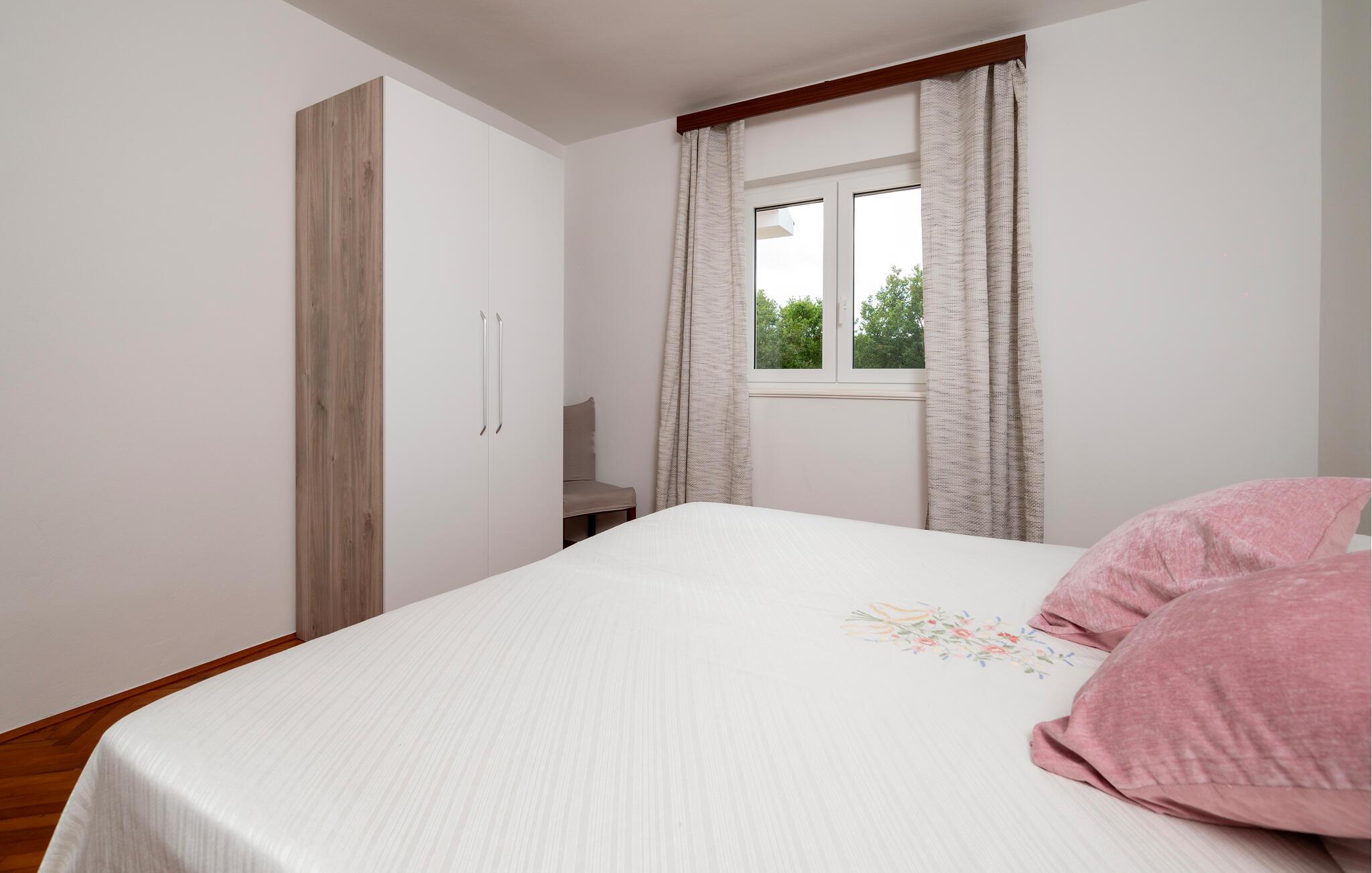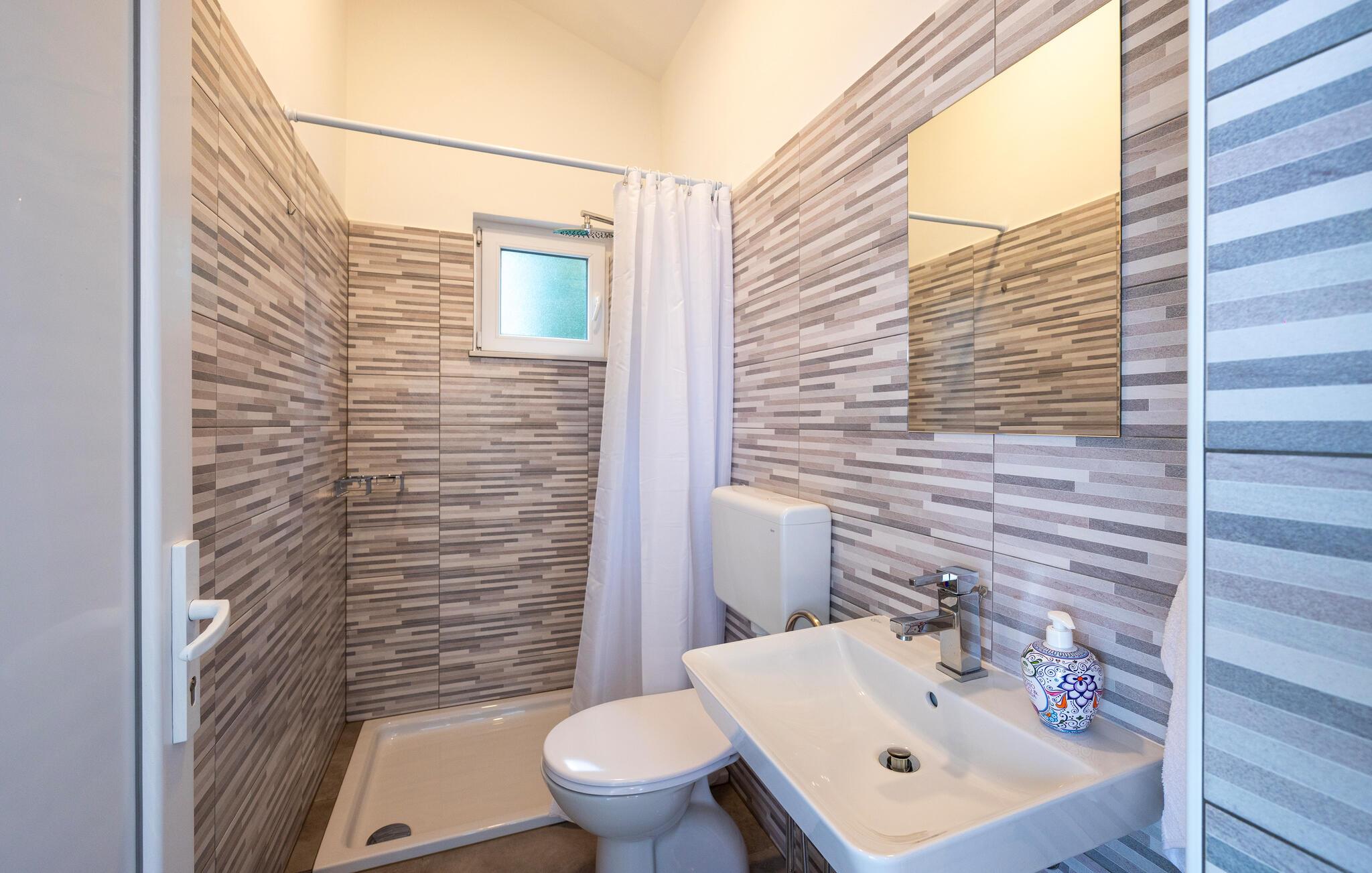 Dette indbydende hus har en hyggelig atmosfære, hvor rustik charme og komfort harmonisk blandes. Varme farver, en behagelig sofa overfor tv'et og et moderne køkken sikrer, at I føler jer velkomne fra første øjeblik. Slap af, mens I lytter til musik eller laver mad, og skænk jer selv et fint glas kroatisk vin.