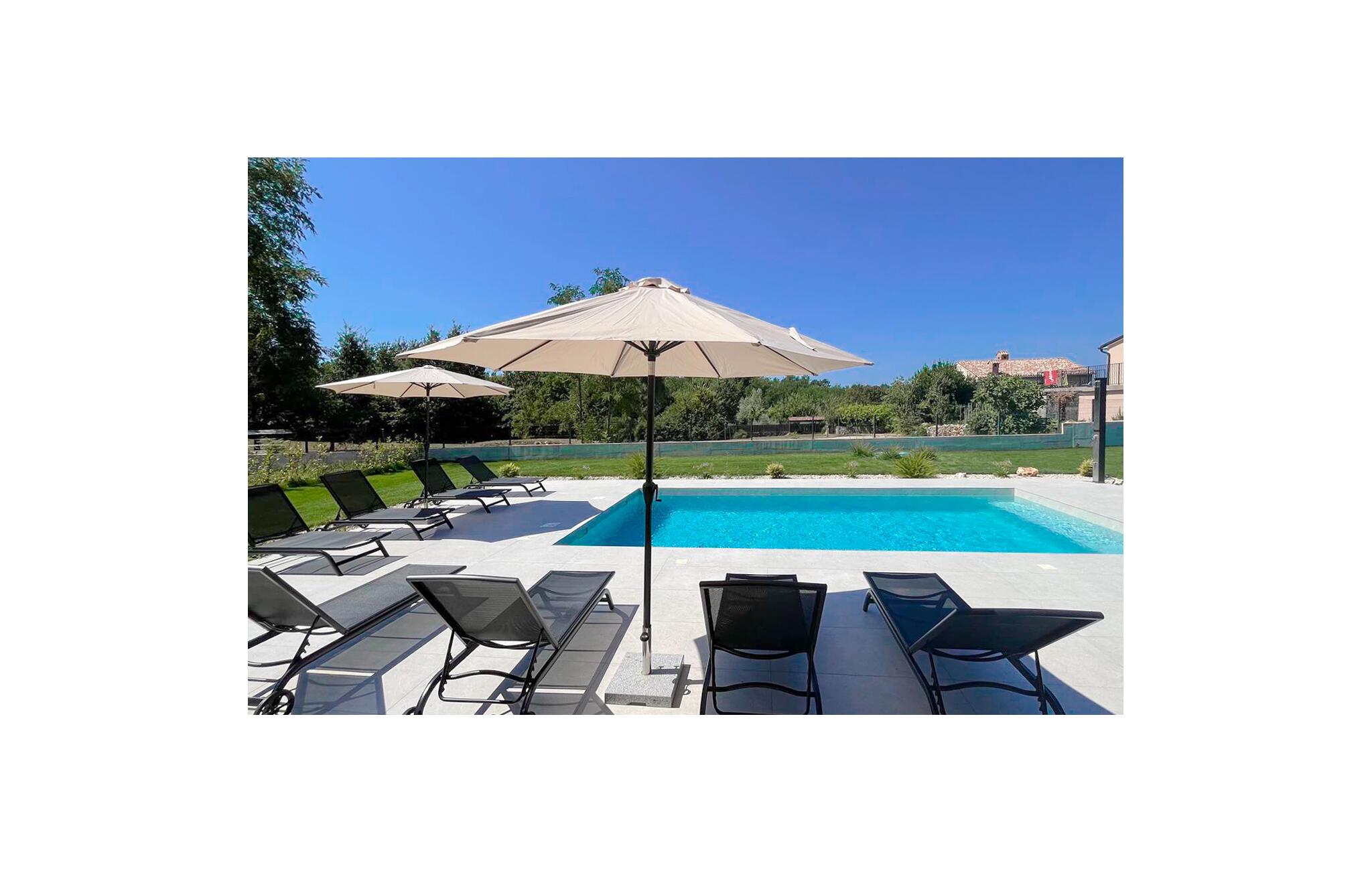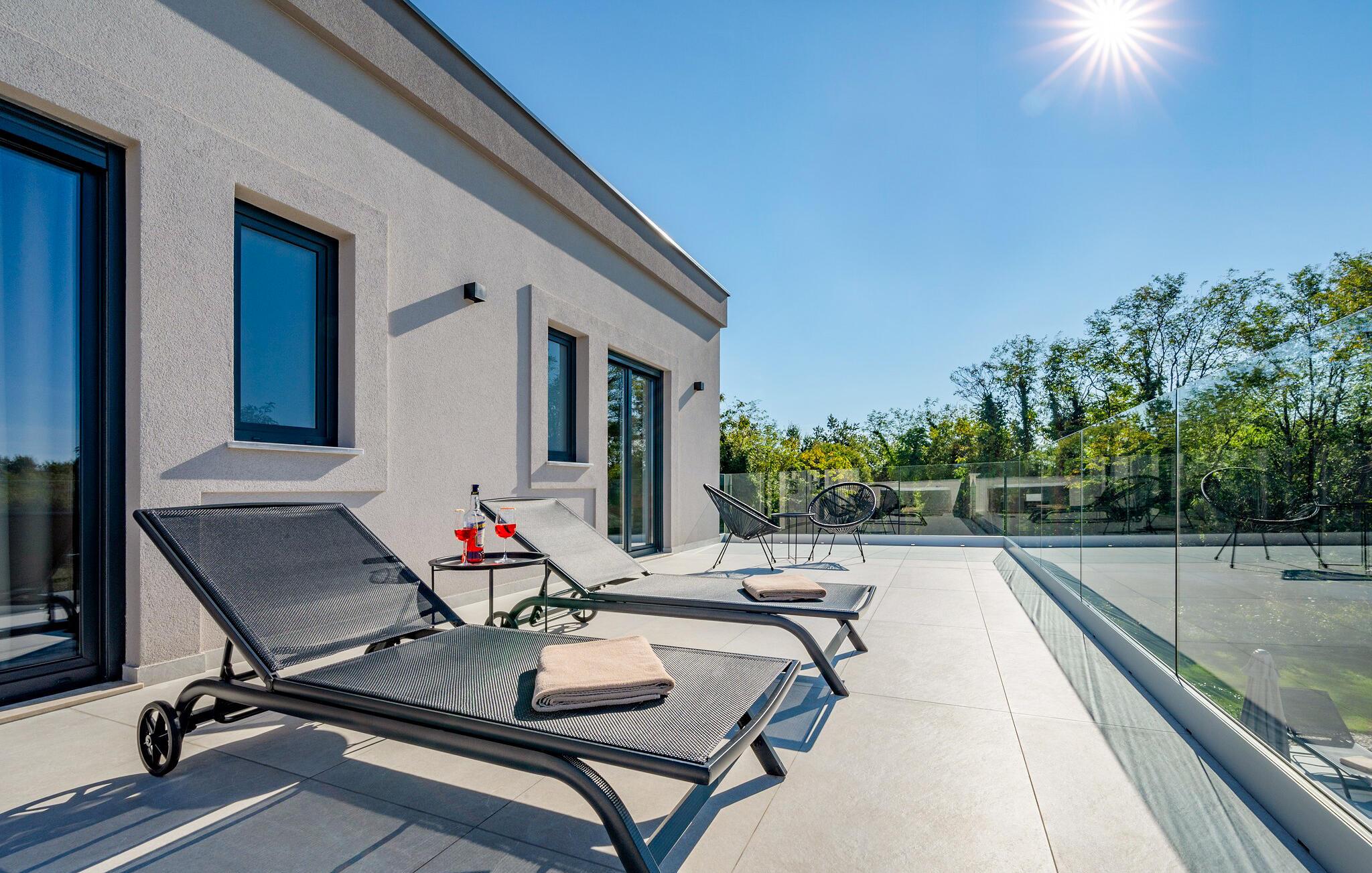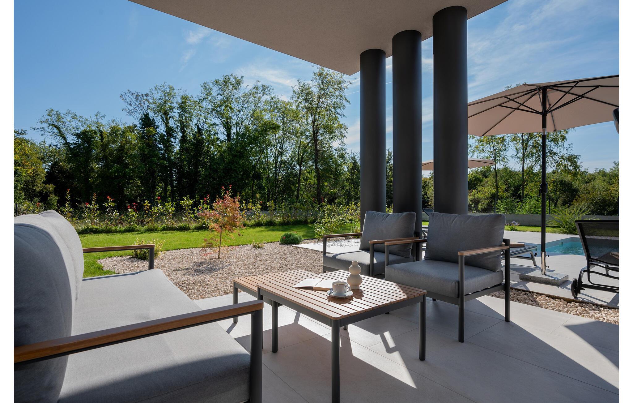 I tråd med de lange sommerdage, der venter jer i Labin, byder udendørsområdet på et sandt paradis for soldyrkere. Hop ind i den forfriskende pool på jeres fritid, og lad solen forkæle jer på de komfortable liggestole. Arranger en stemningsfuld grill om aftenen i udekøkkenet eller afslut dagen med et glas vin på den overdækkede terrasse.
