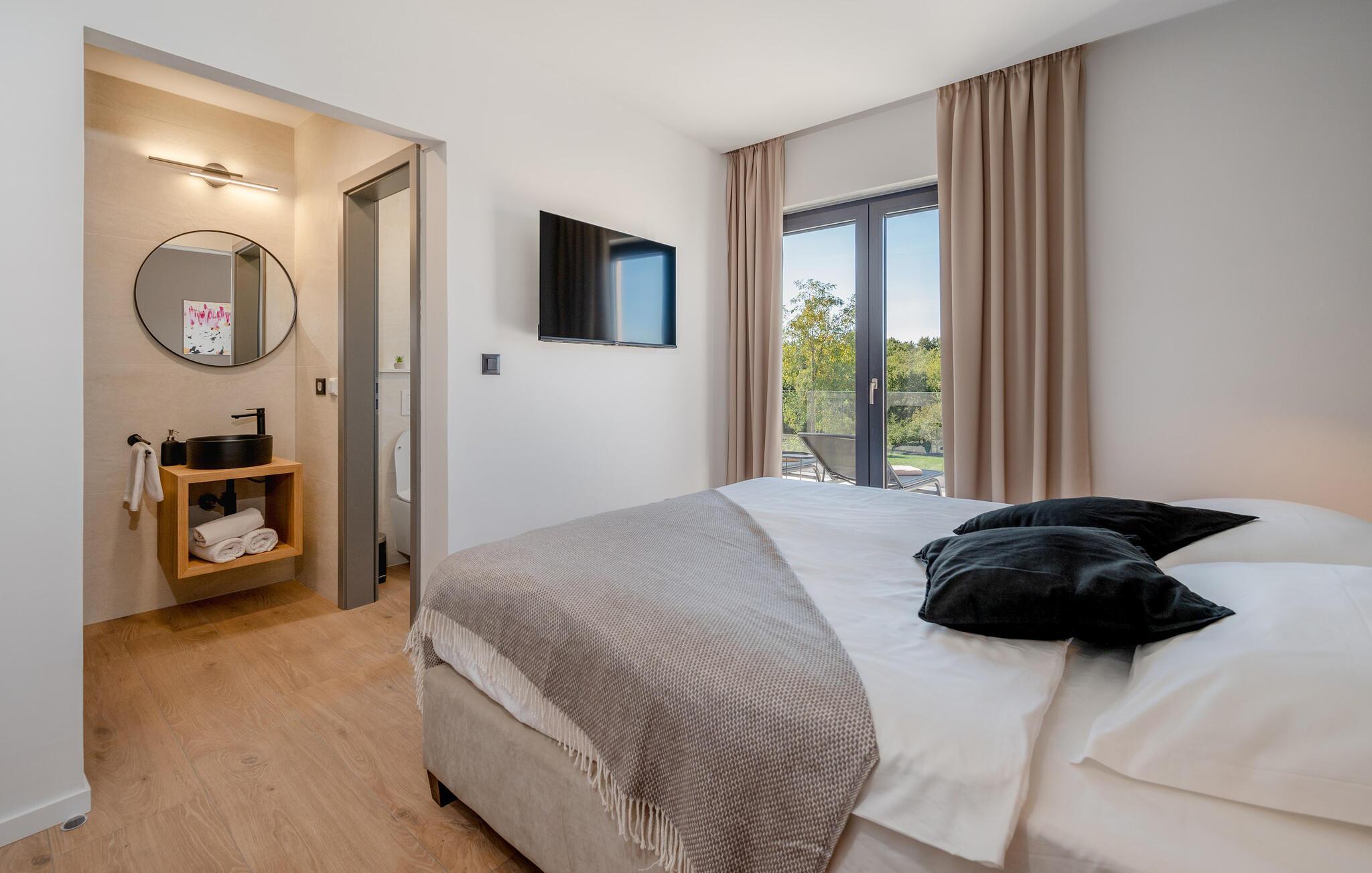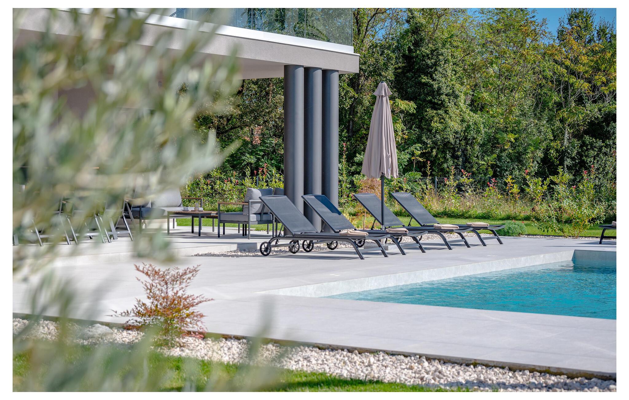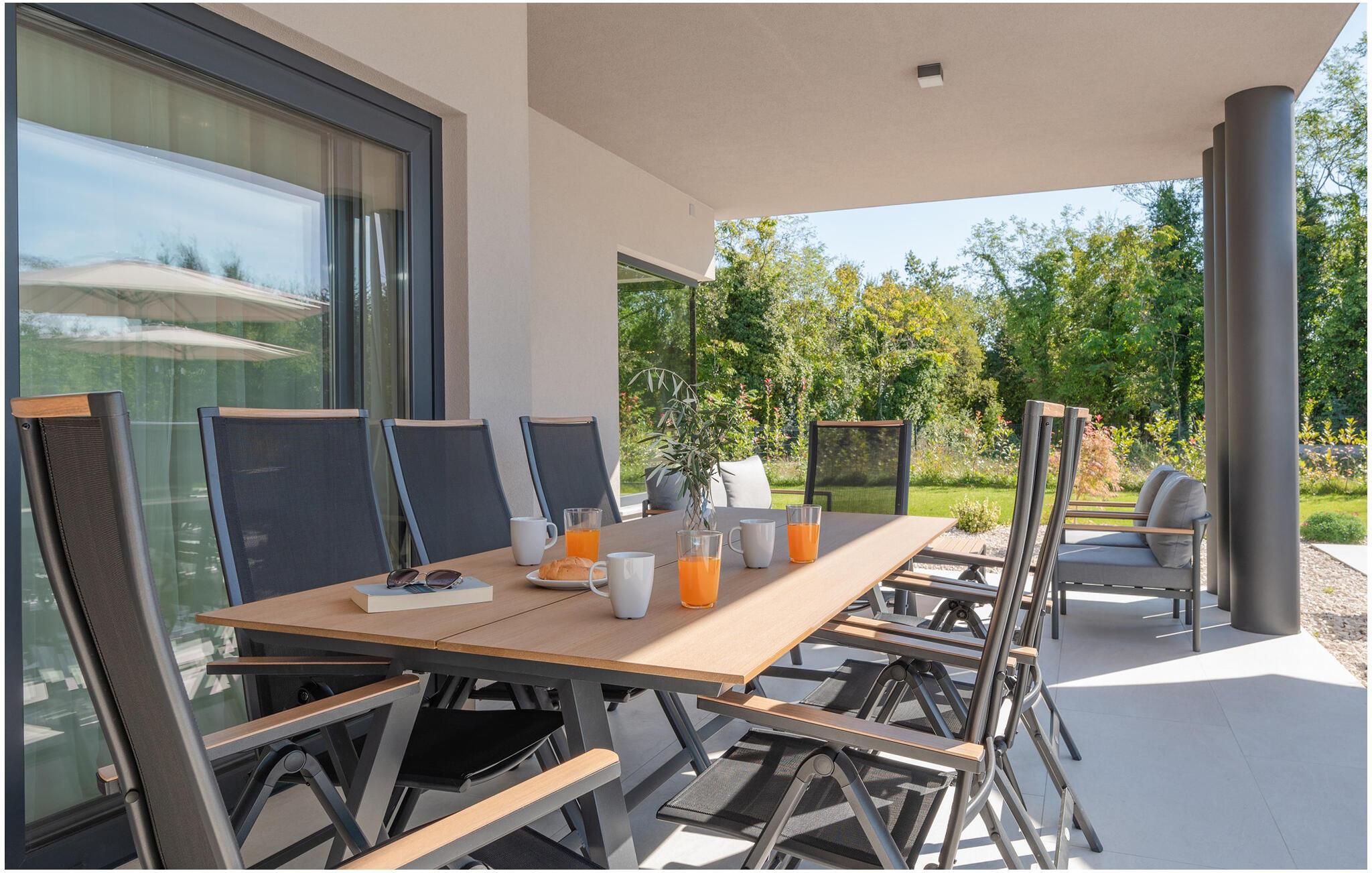 I tråd med de lange sommerdage, der venter jer i Labin, byder udendørsområdet på et sandt paradis for soldyrkere. Hop ind i den forfriskende pool på jeres fritid, og lad solen forkæle jer på de komfortable liggestole. Arranger en stemningsfuld grill om aftenen i udekøkkenet eller afslut dagen med et glas vin på den overdækkede terrasse.