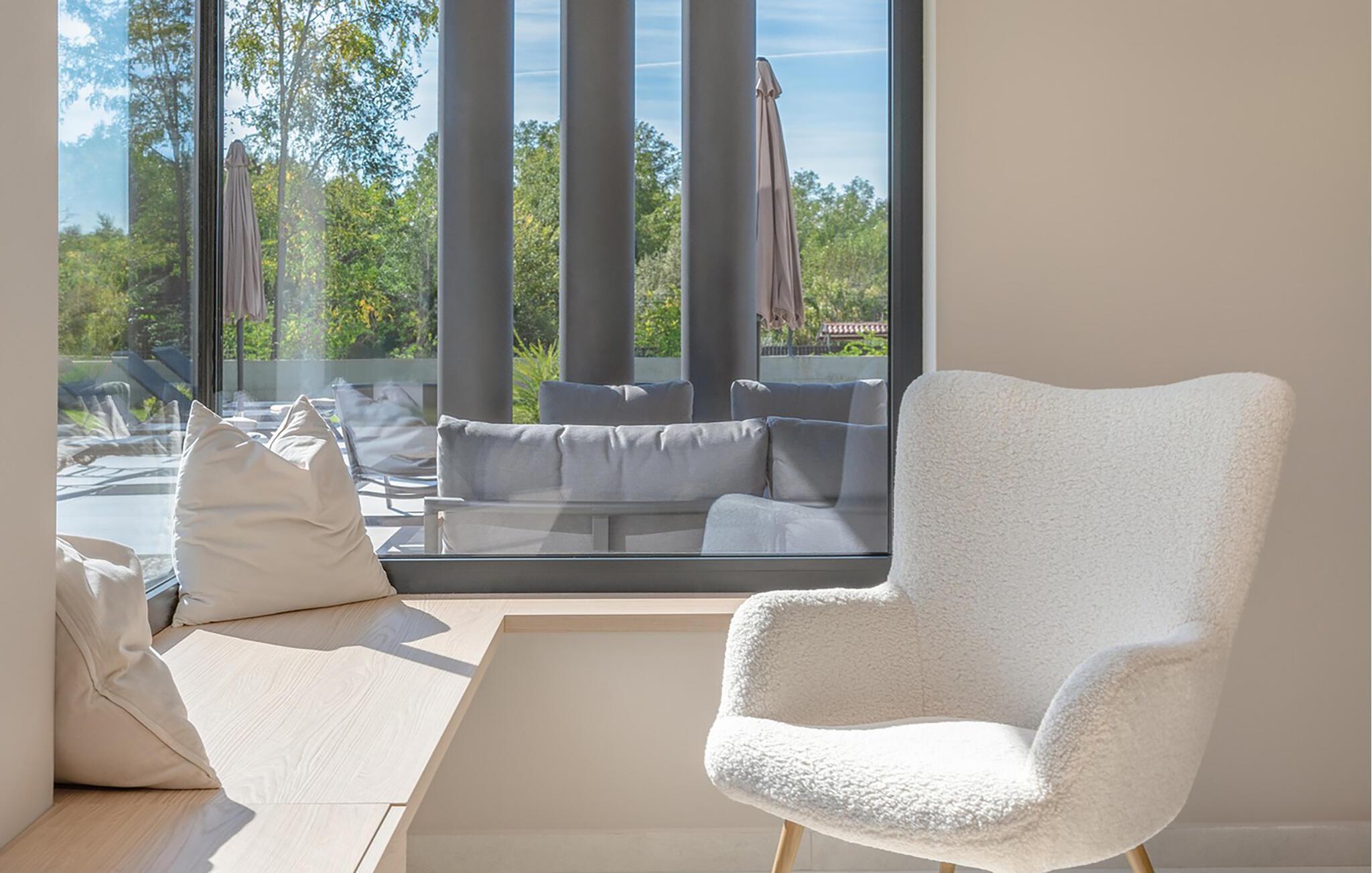 Dette moderne, rummelige feriehus med sit tidløse design er ideel til familier eller vennegrupper. Lav mad sammen i det fuldt udstyrede designerkøkken og nyd jeres måltider ved det store spisebord. Udfordr hinanden med bordfodbold eller billard eller slap af i de komfortable sofaer med en god film.