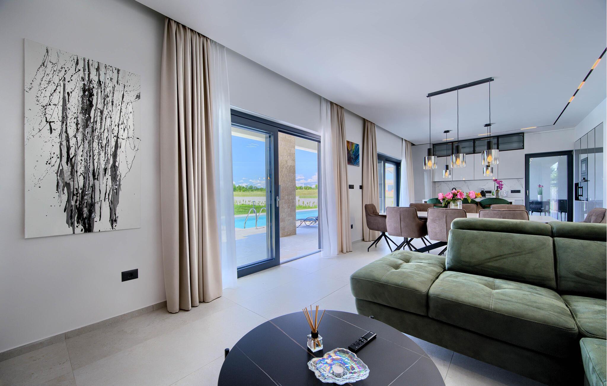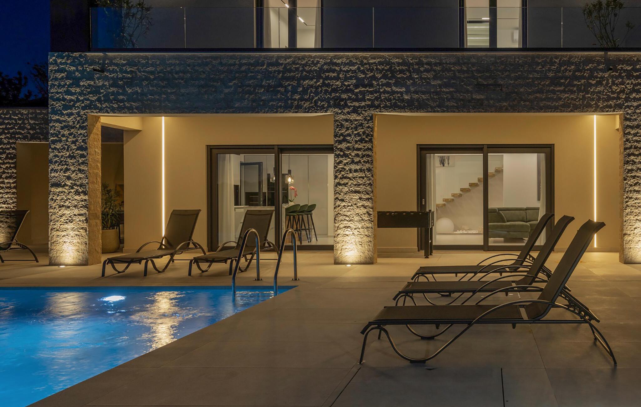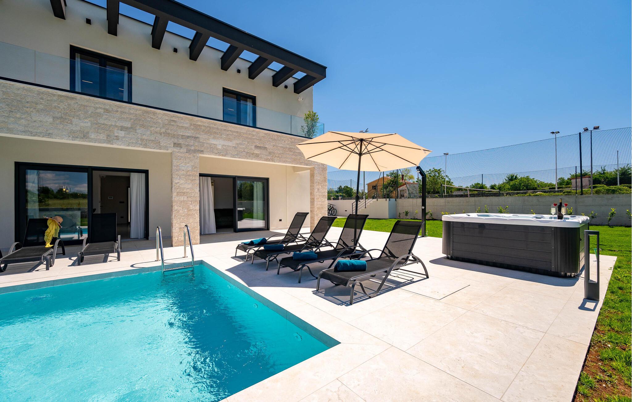 Nyd jeres ferie i et moderne feriehus med pool og udendørs wellness-område.