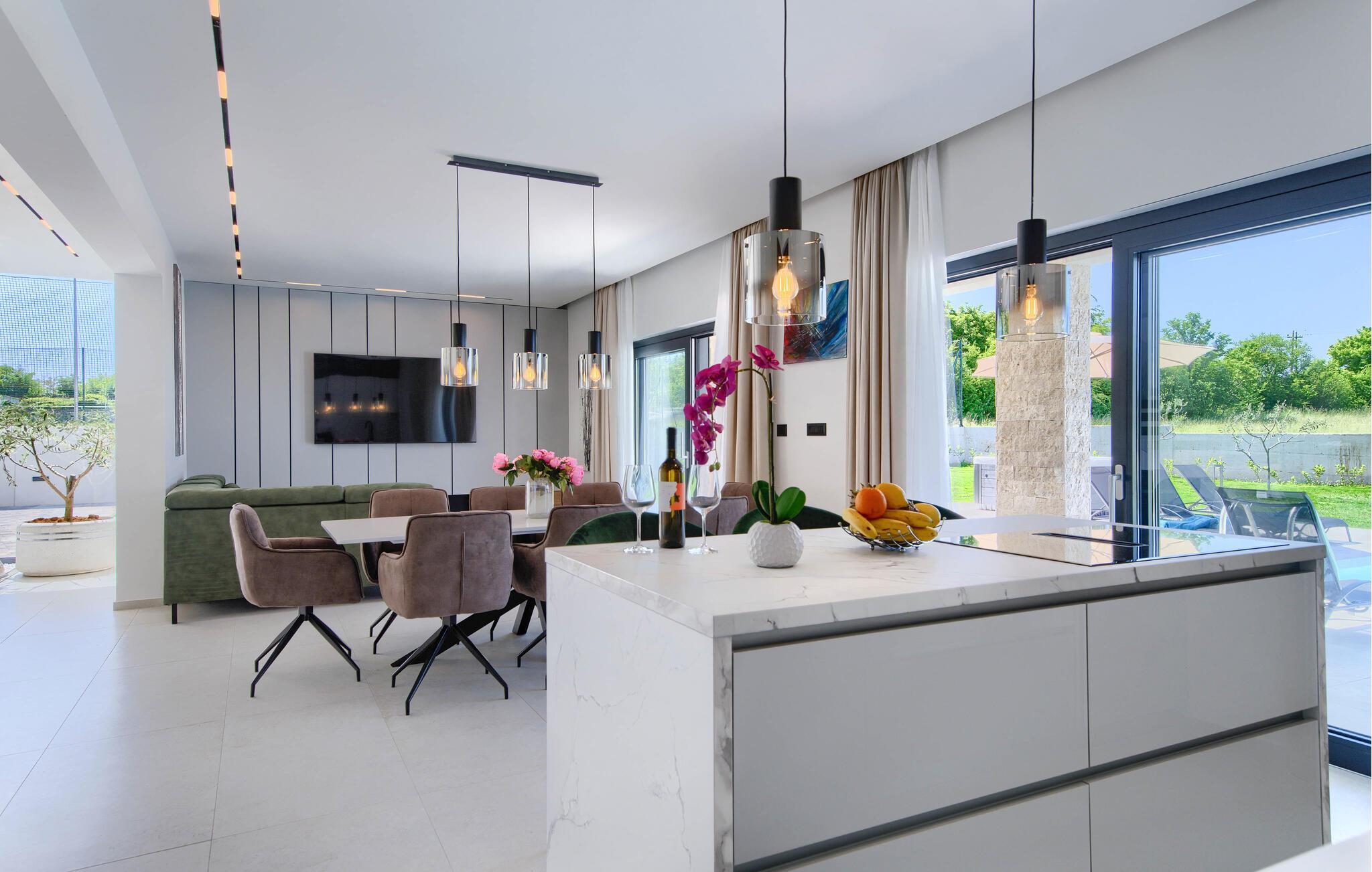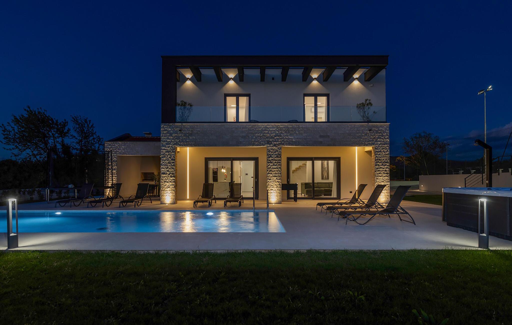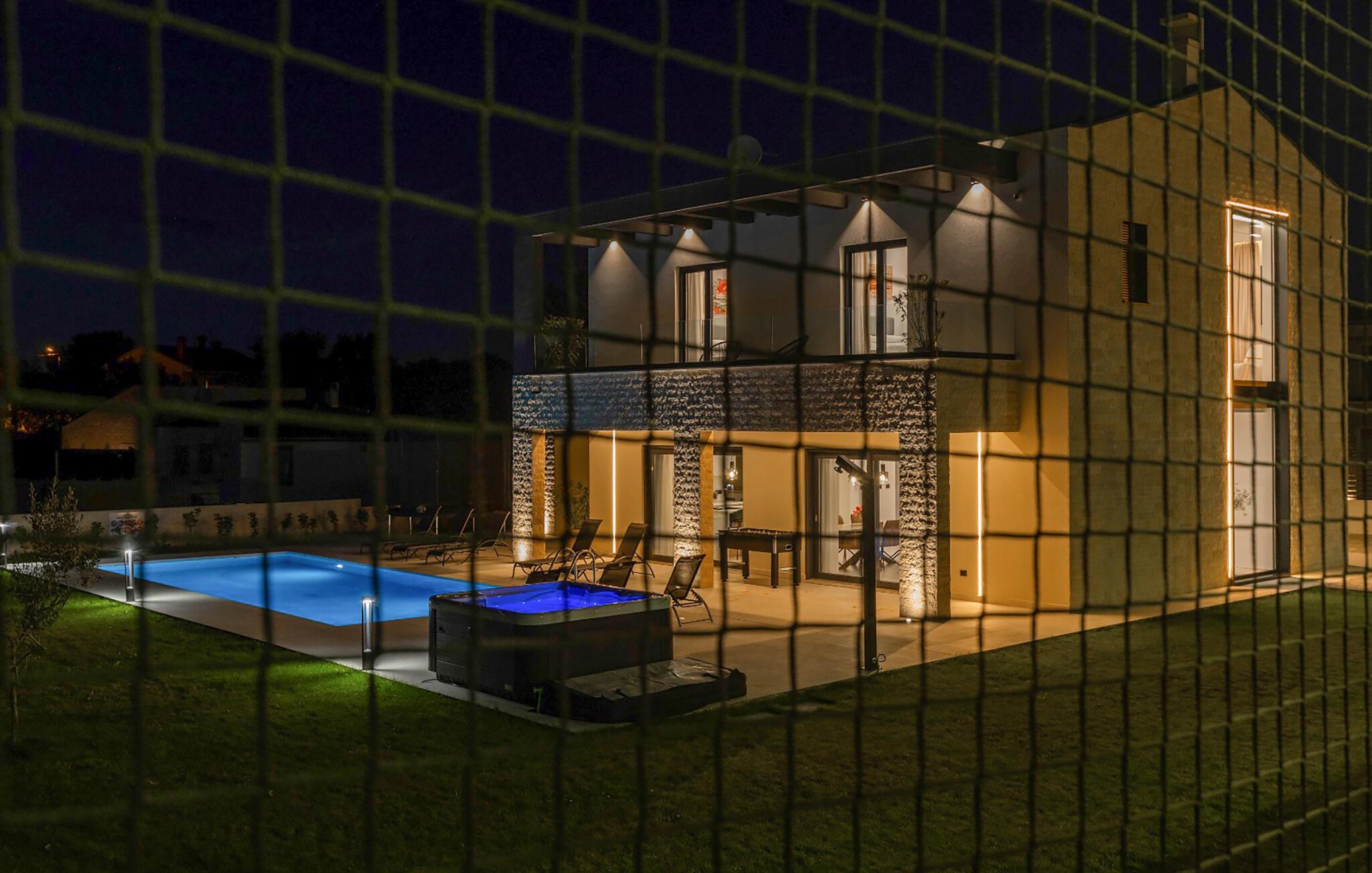 Nyd jeres ferie i et moderne feriehus med pool og udendørs wellness-område.