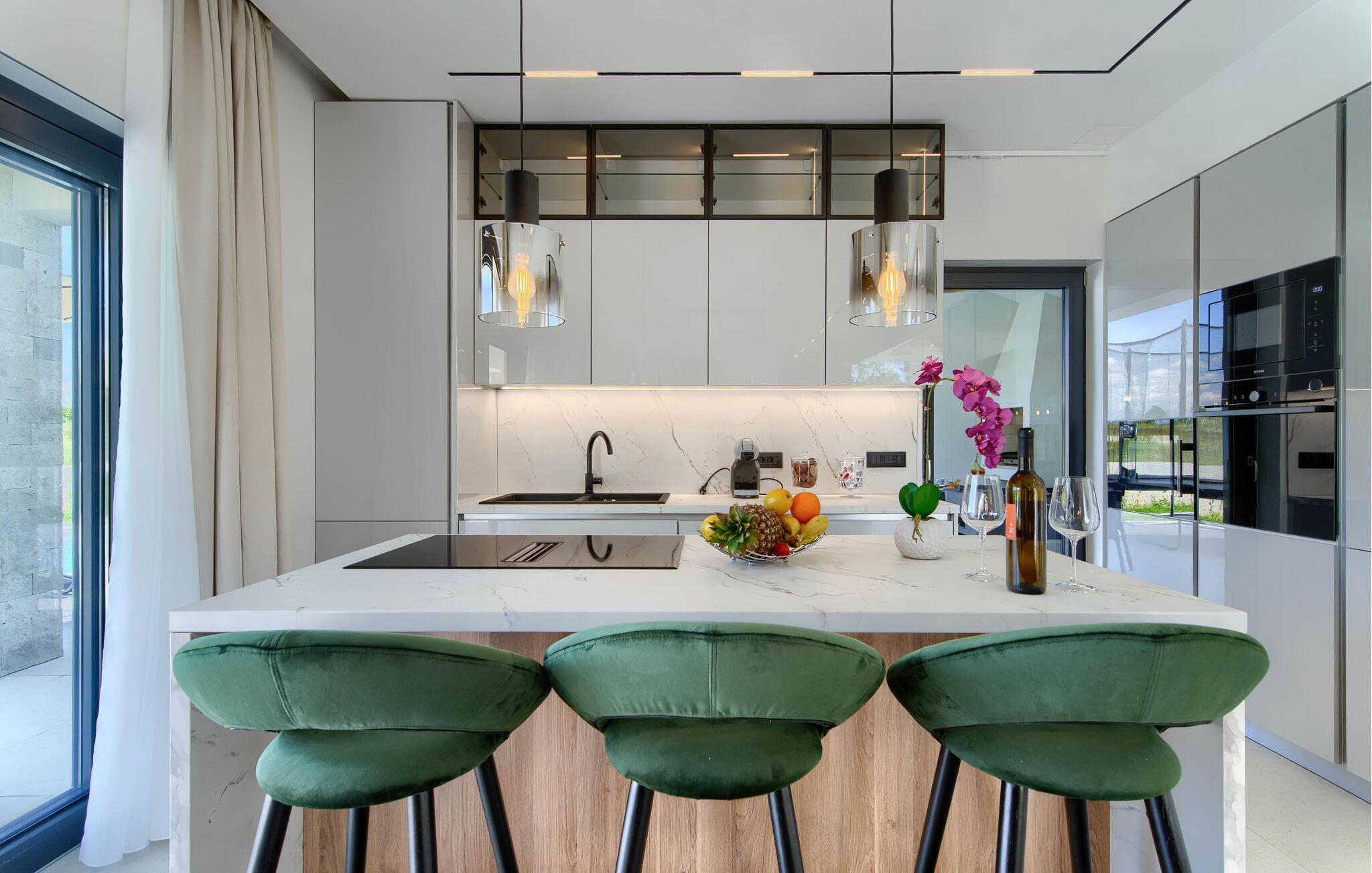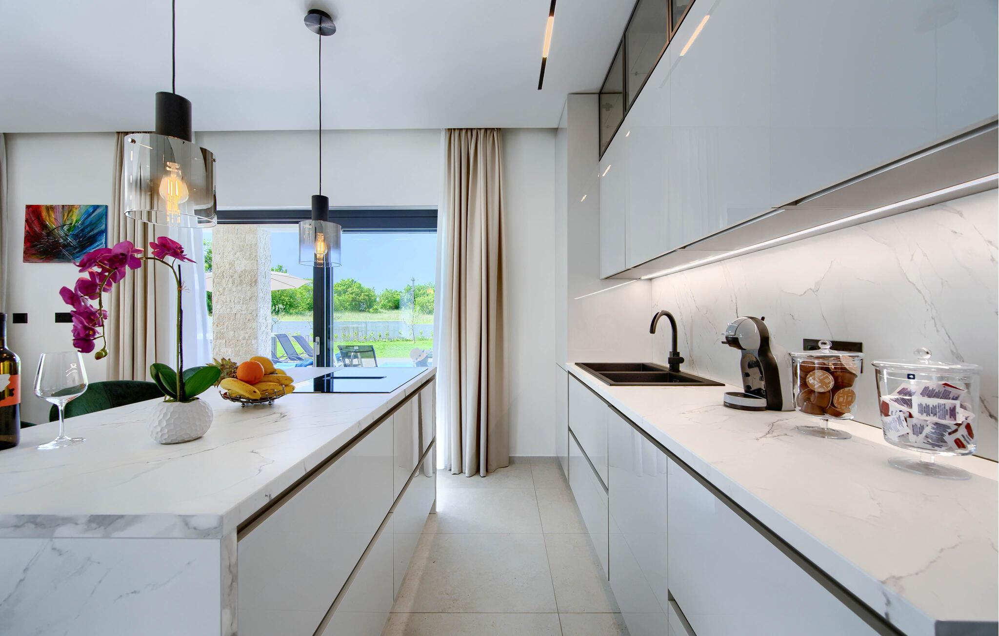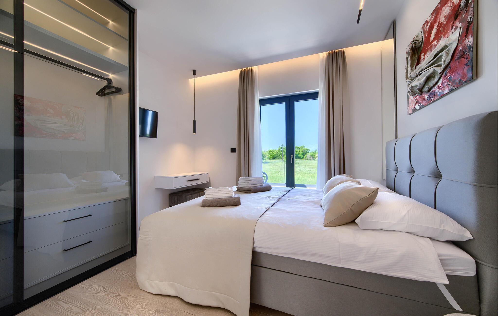 Udforsk den charmerende gamle bydel i Labin, blot et par kilometer væk, hvor smalle gader, farverige huse og hyggelige caféer lægger op til hyggestunder. Gå en tur gennem den gamle bydel, besøg lokale gallerier eller nyd den storslåede havudsigt fra byens loggia. Vandre eller cykle gennem de omkringliggende grønne bakker, fyld lungerne med duften af ??middelhavsvegetationen og oplev skjulte udsigtspunkter med fantastiske panoramaer over Istrien. Hvis I elsker havet, kan I nå kysten nær Rabac på kort tid.