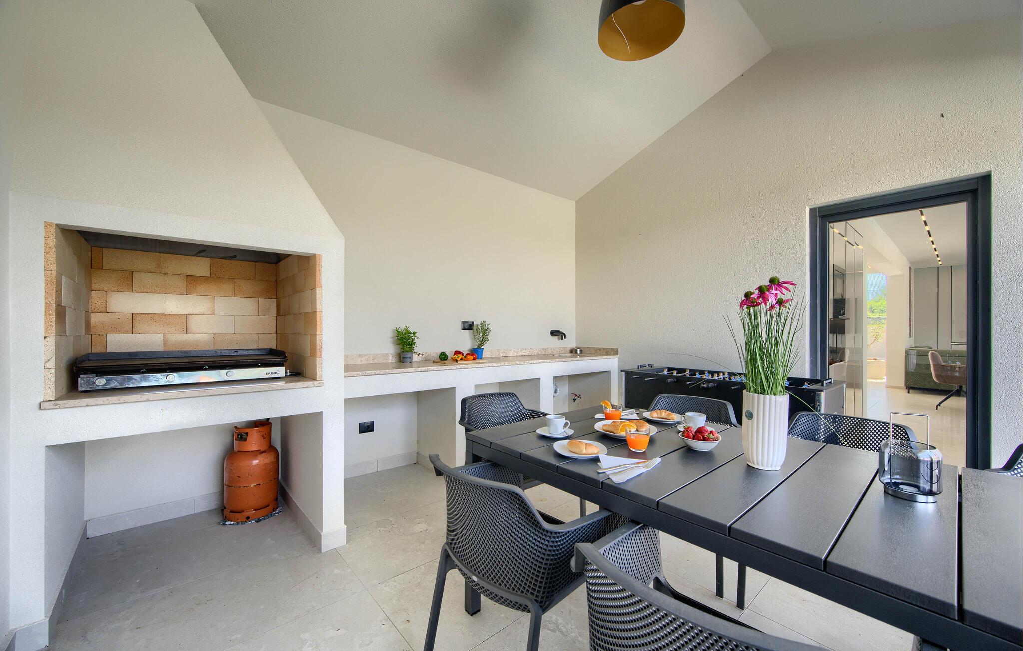 Slap af på ejendommen, nyd solen, og tag en svømmetur i poolen efter et spil bordtennis. Om aftenen kan I grille udendørs og afslutte dagen på en afslappet måde.