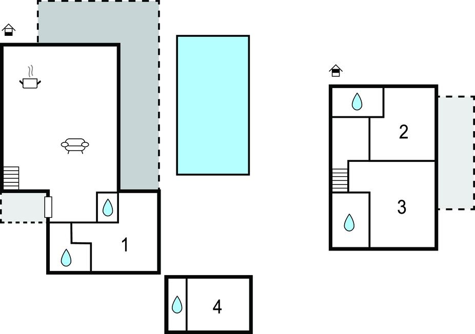 Den store glasvæg lukker ud til den overdækkede terrasse med stengrill, vask og et stort spisebord, hvor I kan nyde alle dagens måltider og hygge jer med kortspil og drinks til langt ud på aftenen. Nyd solen lige fra morgenstunden med en friskbrygget kop kaffe på terrasserne, lad børnene lege på græsplænen og køl jer af i poolen, lige så ofte, I lyster.