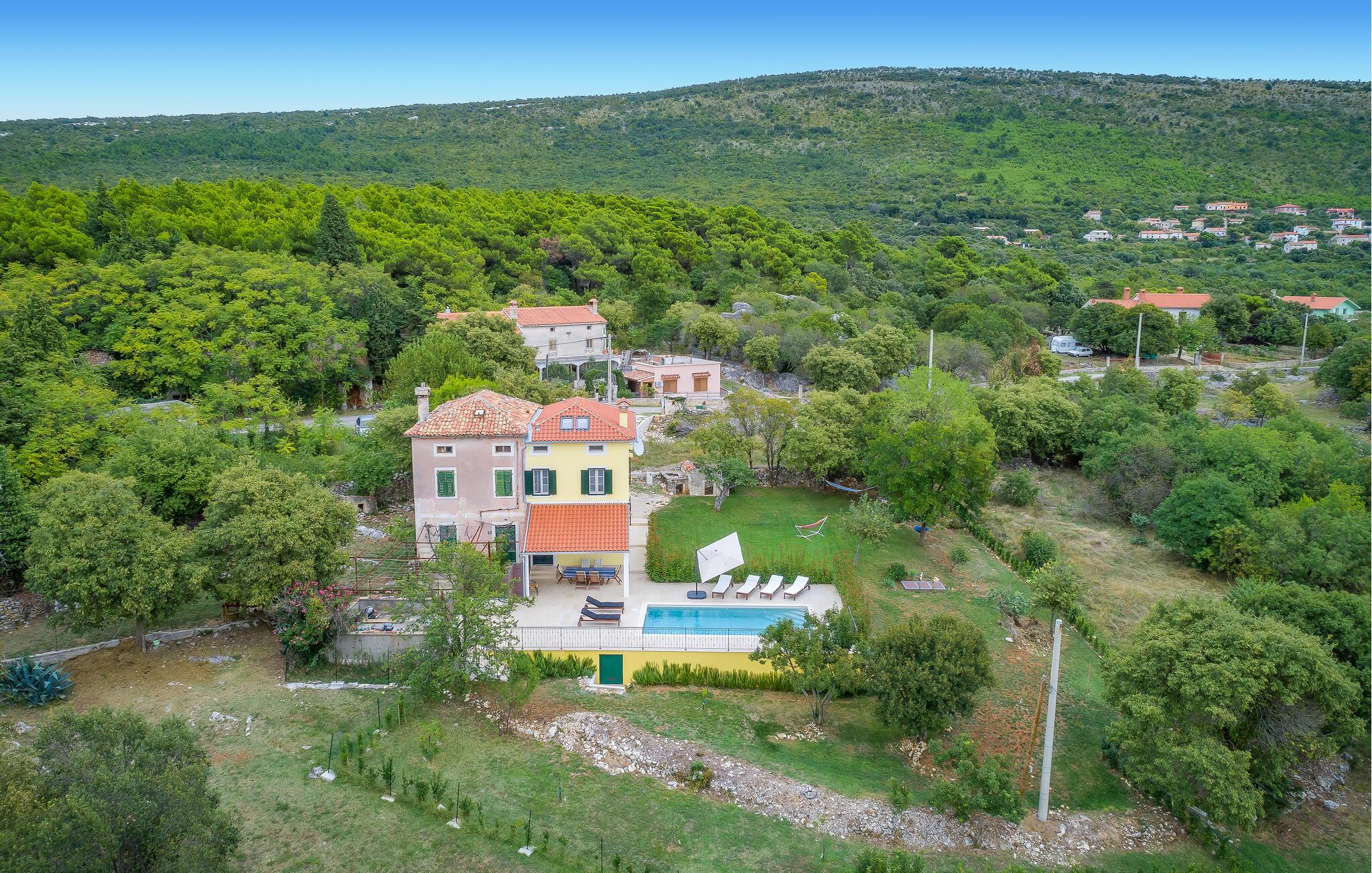 Til huset hører en stor, fuldt indhegnet have med masser af urter og laurbærhække, som I kan plukke af. Langs poolen løber en rosmarinhæk, så I kan give jeres måltider et strejf af Middelhavet, og herudover finder I salvie, timian og lavendel, som dufter virkelig dejligt. Der er også forskellige frugttræer på grunden, så I kan benytte jer af de friske råvarer i madlavningen.