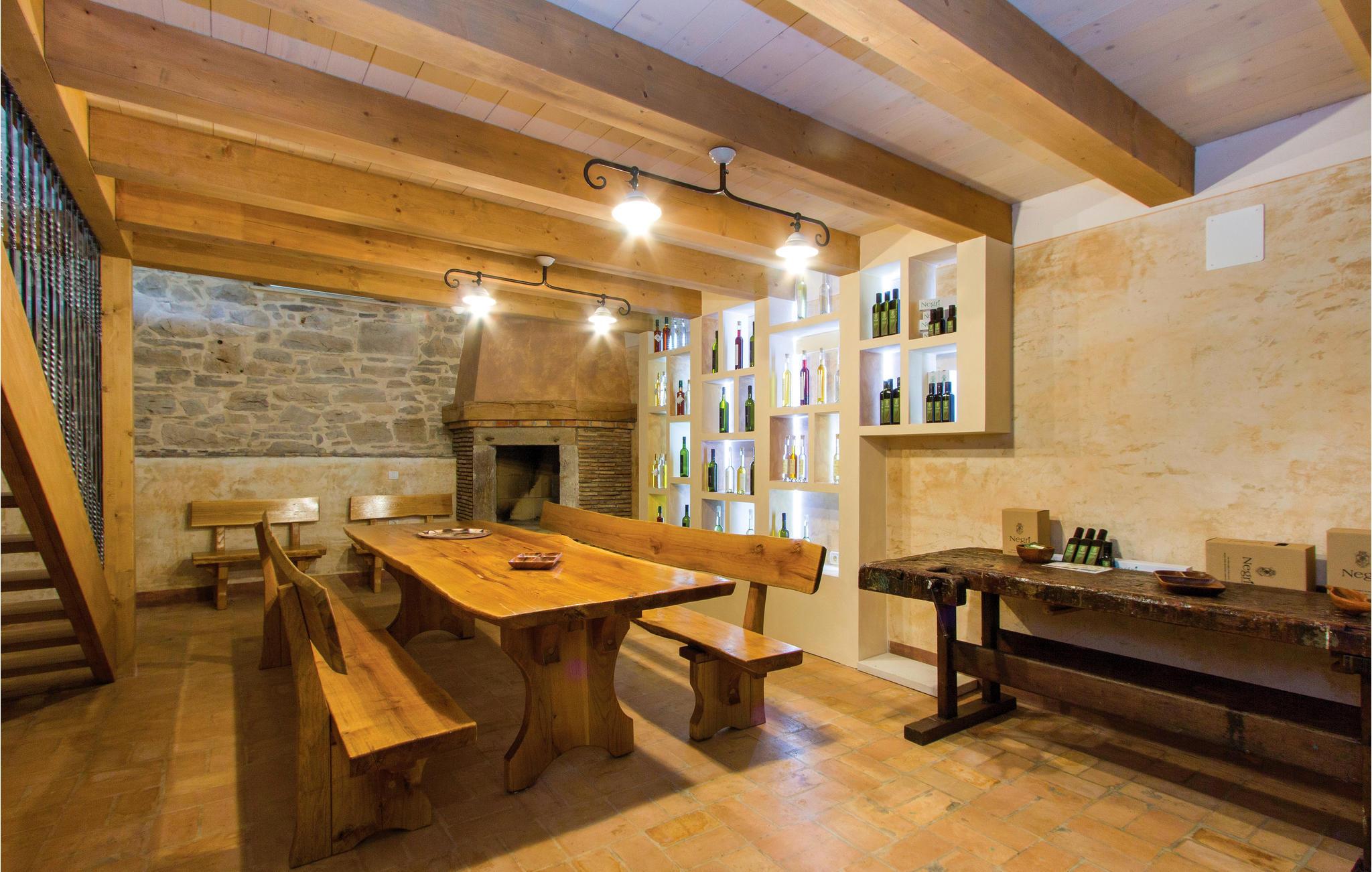 Denne historiske ejendom ligger på en stor grund, omgivet af egetræer og hele 700 oliventræer, her er der meget ugenert. Ejendommen består af fire bygninger, der er forbundet med udendørs trapper. På første sal i hovedbygningen ligger soveværelserne. Det moderne og praktiske køkken og den rummelige spisestue ligger i stueetagen. I har et imponerende wellnessområde til rådighed med hydromassagepool, afslapningszone, fitnessrum, dampbad og finsk sauna. I stueetagen i den anden bygning er der en stue med en vinbar. På første sal ligger der to soveværelser. Et rum til at smage på vin og olivenolie er der i den tredje bygnings stueetage. På første sal er der et aktivitetsrum med billardbord og dart. Den store pool og legeudstyr til jeres børn er der i husets gård. Desuden er der små fodboldmål og store plæner til volleyball og badminton. Et cykelrum er der også.
