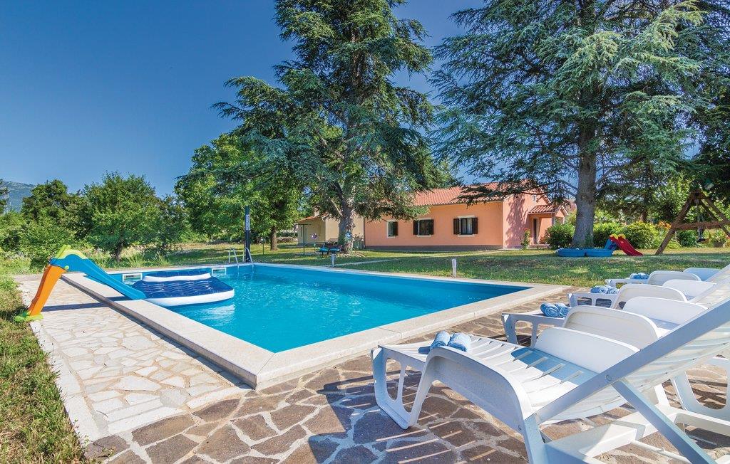 Fra dette skønne feriehus med egen pool, der ligger i den lille by Blaškovici er der en dejlig udsigt over landskabet og Ucka-bjergene. Et godt valg til en familieferie eller en ferie med vennerne. I kan nyde naturen, den friske luft og på de varme sommerdage, er det skønt med en svømmetur i poolen. Om aftenen kan I slappe af på terrassen og nyde duften af jeres aftensmad fra grillen. Kør til Brestovo (tyve minutter i bil) hvorfra I kan tage både ud til Kvarner-øerne. De skønneste strande i nærheden ligger i Rabac 15 km væk. Besøg også det gamle Labin, med mange former for underholdning. I nærheden af huset ligger en stenhuggervirksomhed.
