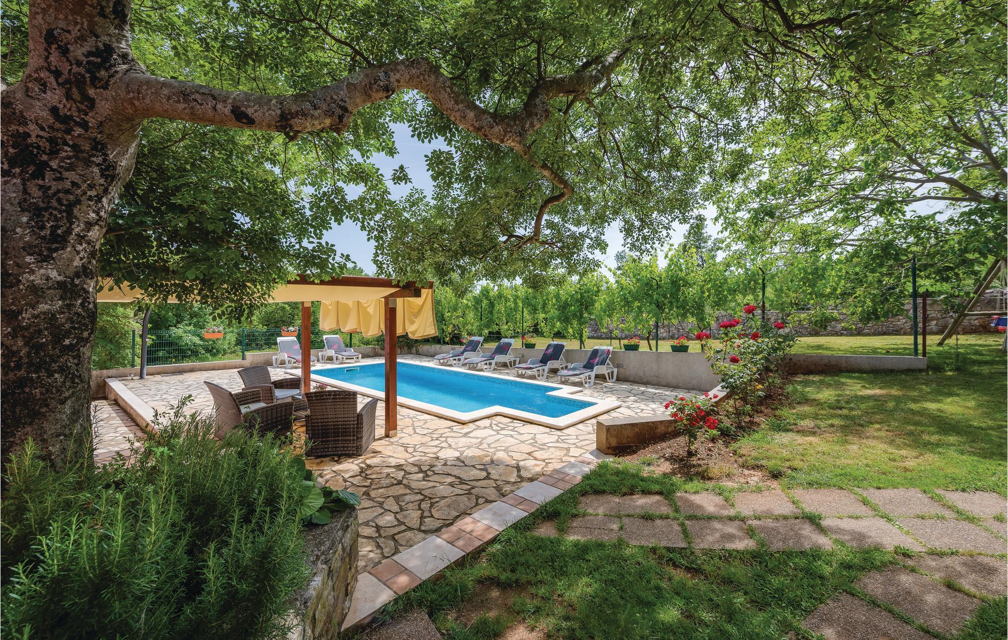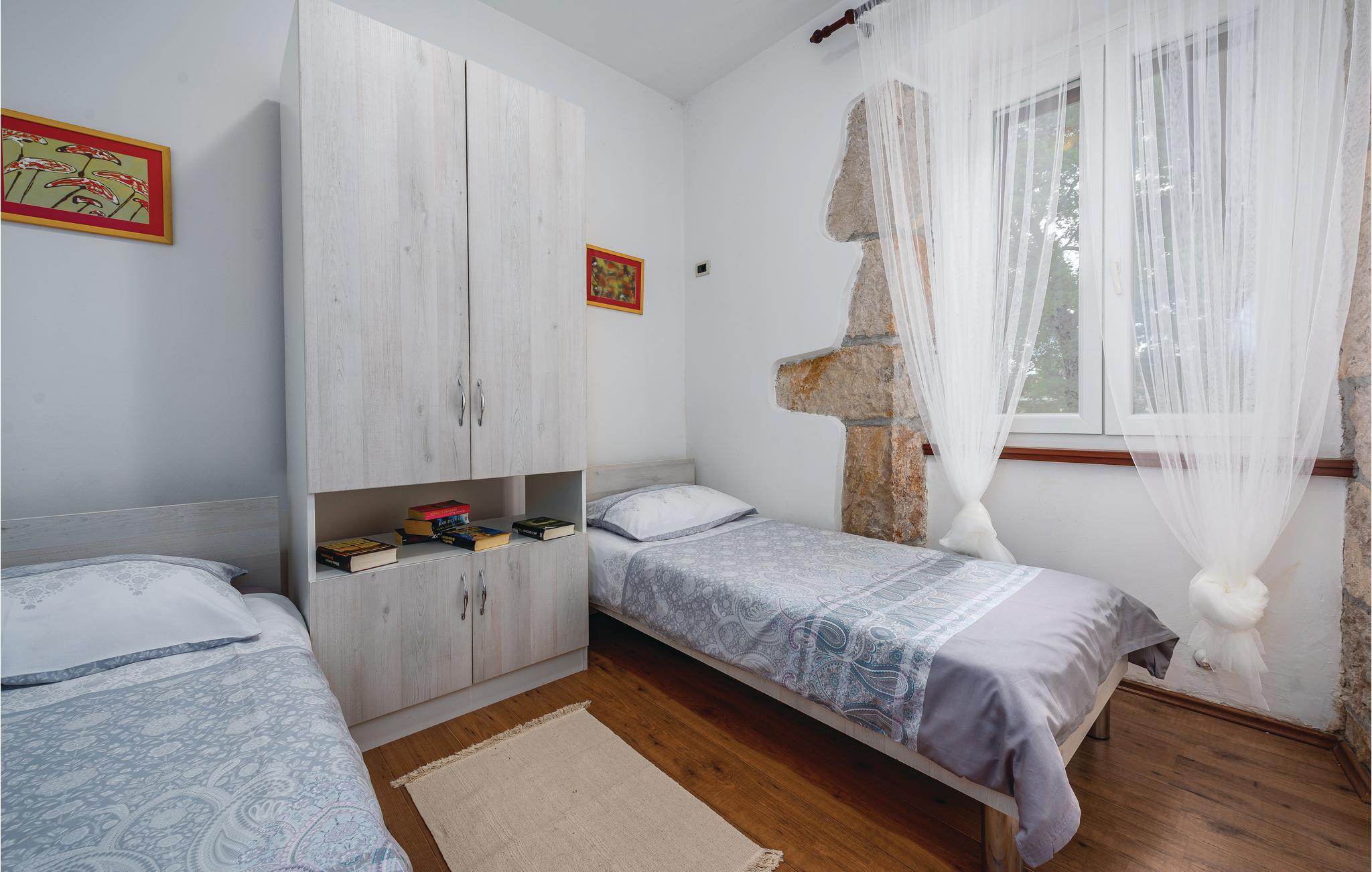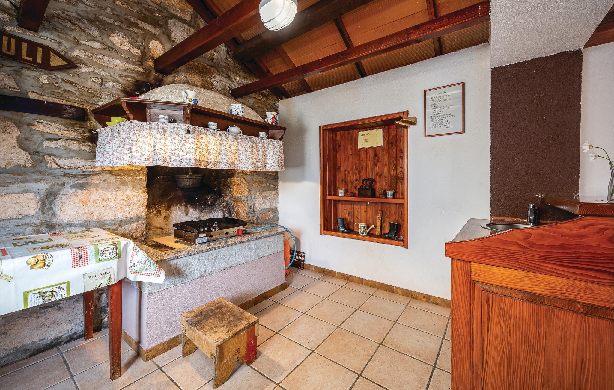 I en lille Istrisk by, omgivet af private huse, ligger dette dejlige gennemrenoverede feriehus. Huset er indrettet med moderne og til dels unikke træmøbler fremstillet af husets ejer. Huset er praktisk og hyggeligt indrettet helt ned i de små detaljer. Huset ligger på en stor grund, med god plads til leg og afslapning. Lidt fra huset ligger den hyggelige konoba, hvor I kan feste og hygge jer med familien og vennerne. Konobaen er moderne indrettet med både brusebad og toilet. Med feriehuset som udgangspunkt kan I komme til alle Istriens byer på under en time i bil. Vælg selv! Besøg f.eks. den skønne by Pula, med sit imponerende romerske amfiteater. Spadser gennem byen og hold pause på en fortovscafe med en velsmagende kop kaffe. Byen har en hyggelig og afslappe ferieatmosfære. I Opatija kan I se smukke facader fra byens Østrig/Ungarske periode. Den romantiske by Rovijn ligger lige ud til havet, med betagende udsigter.