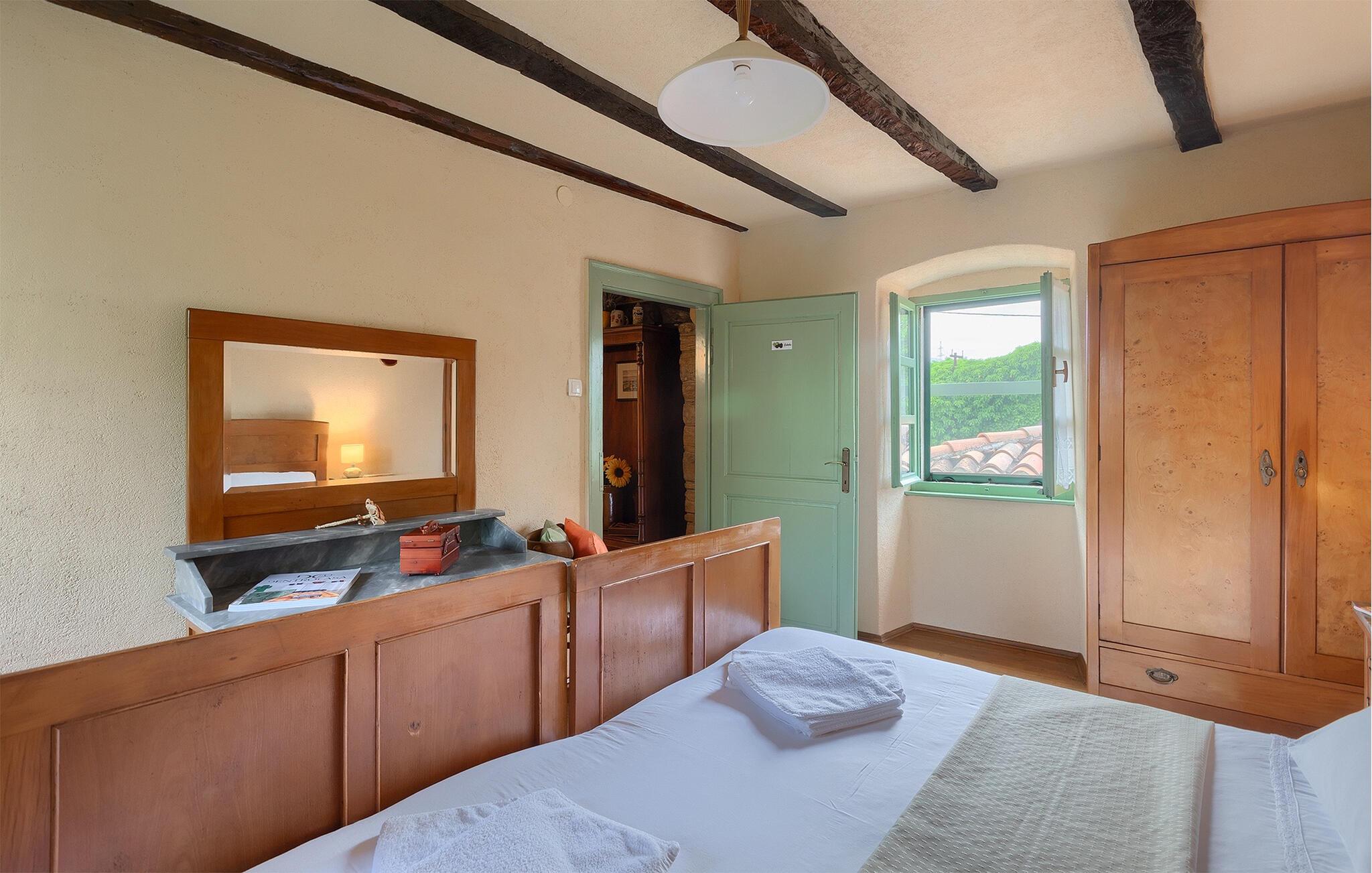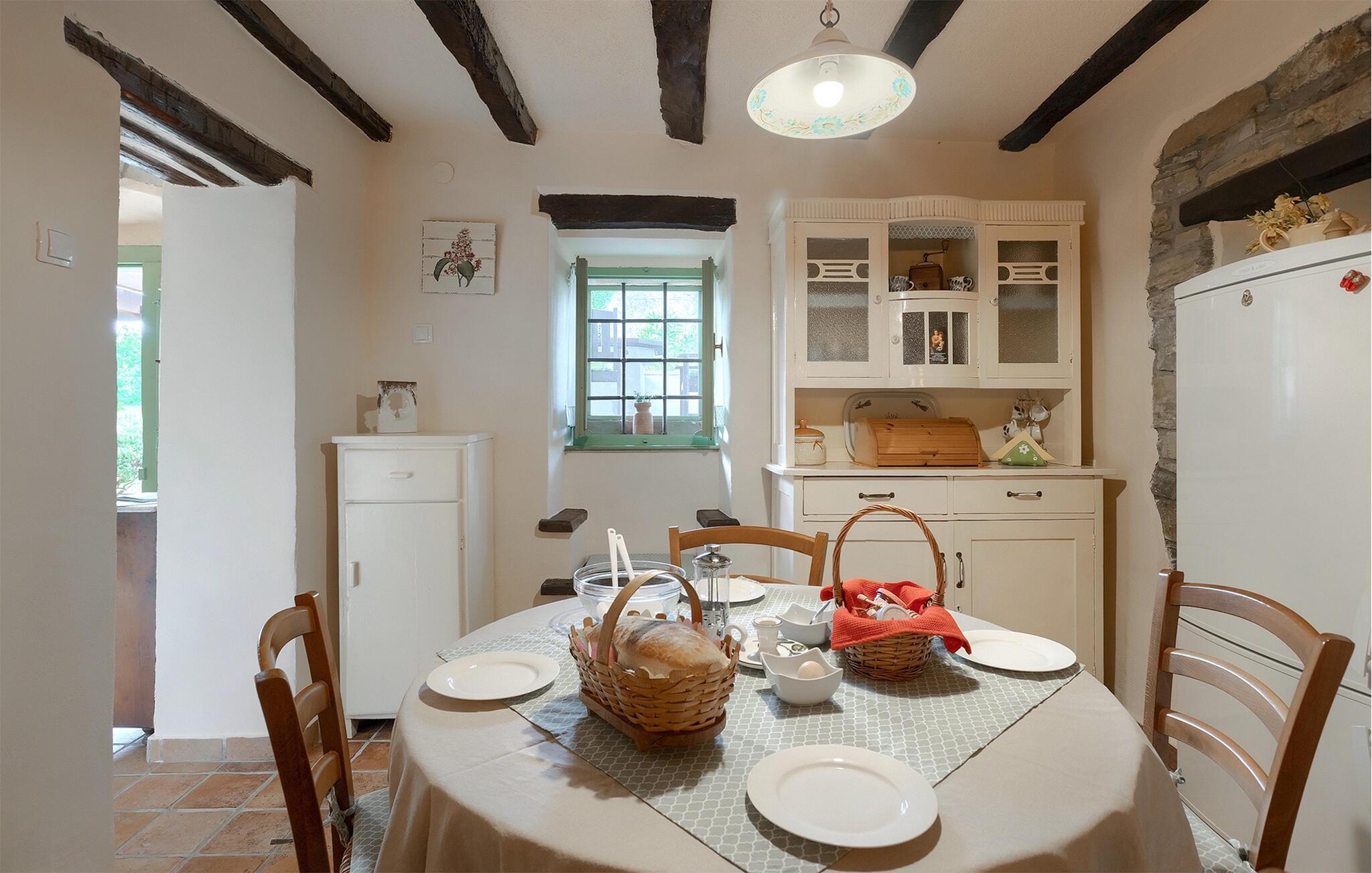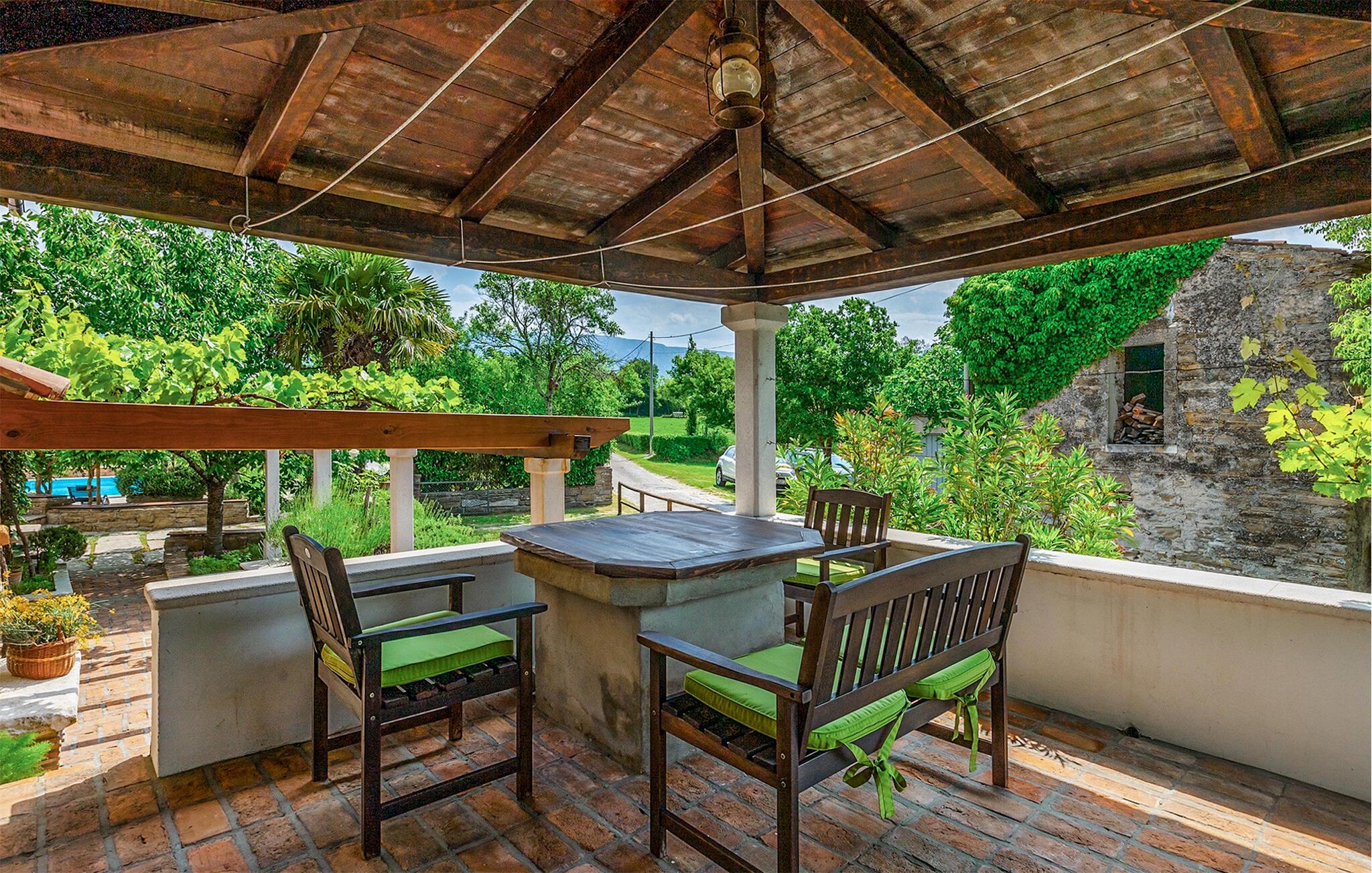 Oplev et behageligt ophold i dette traditionelle og landlige feriehus med swimmingpool. Nyd det smukke flair i landsbyens omgivelser. Du har en opholdsstue i stueetagen og soveværelser på første sal. Ved siden af ??poolen er der et anneks med badeværelse, køkken og en pænt møbleret grillplads. Huset har et Eco Domus-certifikat og er ideelt til udendørs ophold - og dets omgivelser til en aktiv ferie i naturen. Den store, overdækkede terrasse tilbyder dig en vidunderlig udsigt over Ucka-bjergene, marker, bakker, haven og poolen. Nyd lækre specialiteter fra grillen i skyggen med en fin dråbe lokal vin.