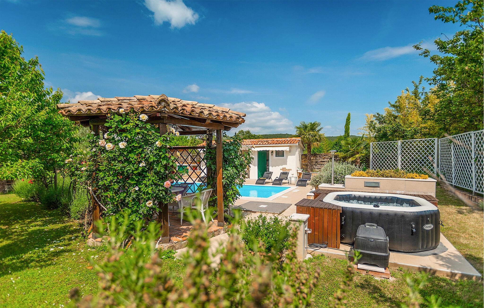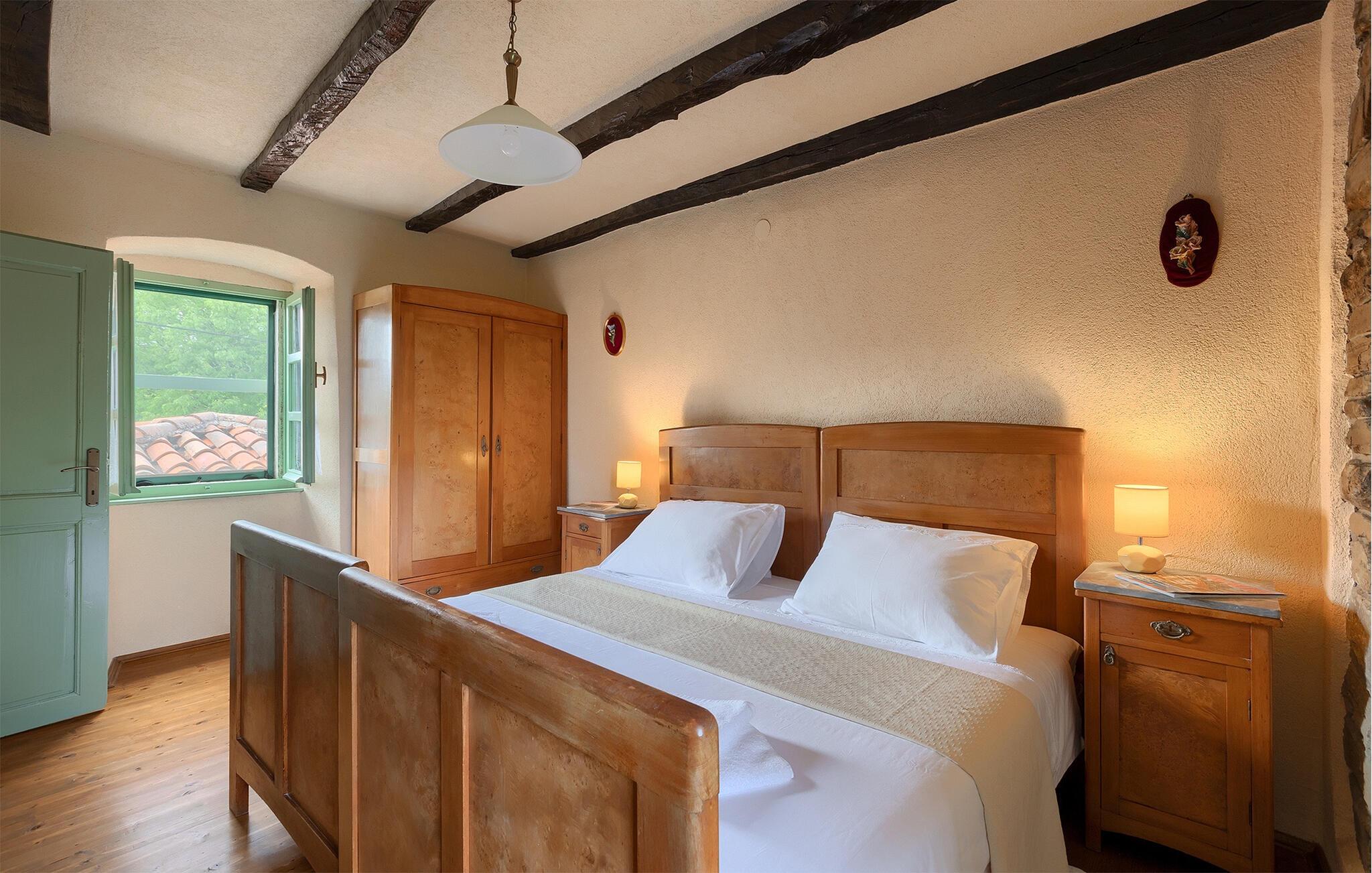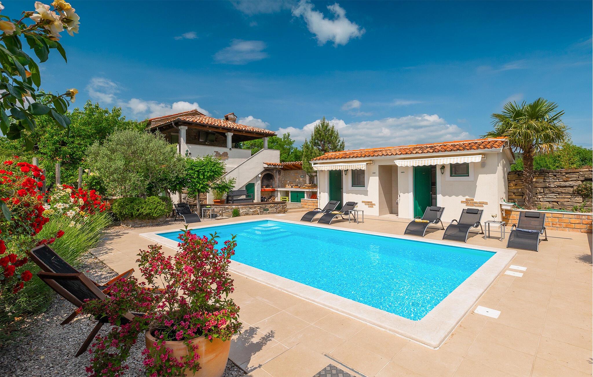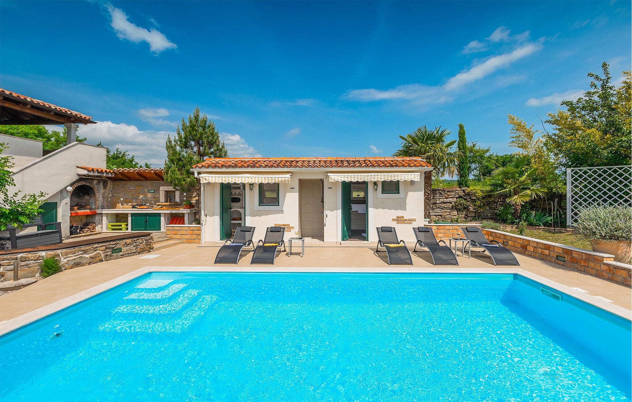 Oplev et behageligt ophold i dette traditionelle og landlige feriehus med swimmingpool. Nyd det smukke flair i landsbyens omgivelser. Du har en opholdsstue i stueetagen og soveværelser på første sal. Ved siden af ??poolen er der et anneks med badeværelse, køkken og en pænt møbleret grillplads. Huset har et Eco Domus-certifikat og er ideelt til udendørs ophold - og dets omgivelser til en aktiv ferie i naturen. Den store, overdækkede terrasse tilbyder dig en vidunderlig udsigt over Ucka-bjergene, marker, bakker, haven og poolen. Nyd lækre specialiteter fra grillen i skyggen med en fin dråbe lokal vin.