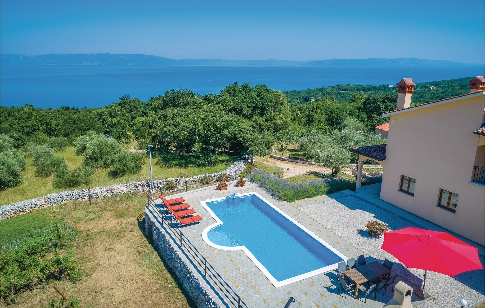Fra terrassen er der en vidunderlig udsigt over Kvarnerbugten. En meget bedre udsigt til morgenkaffen - eller et glas aftenvin - fås næppe.