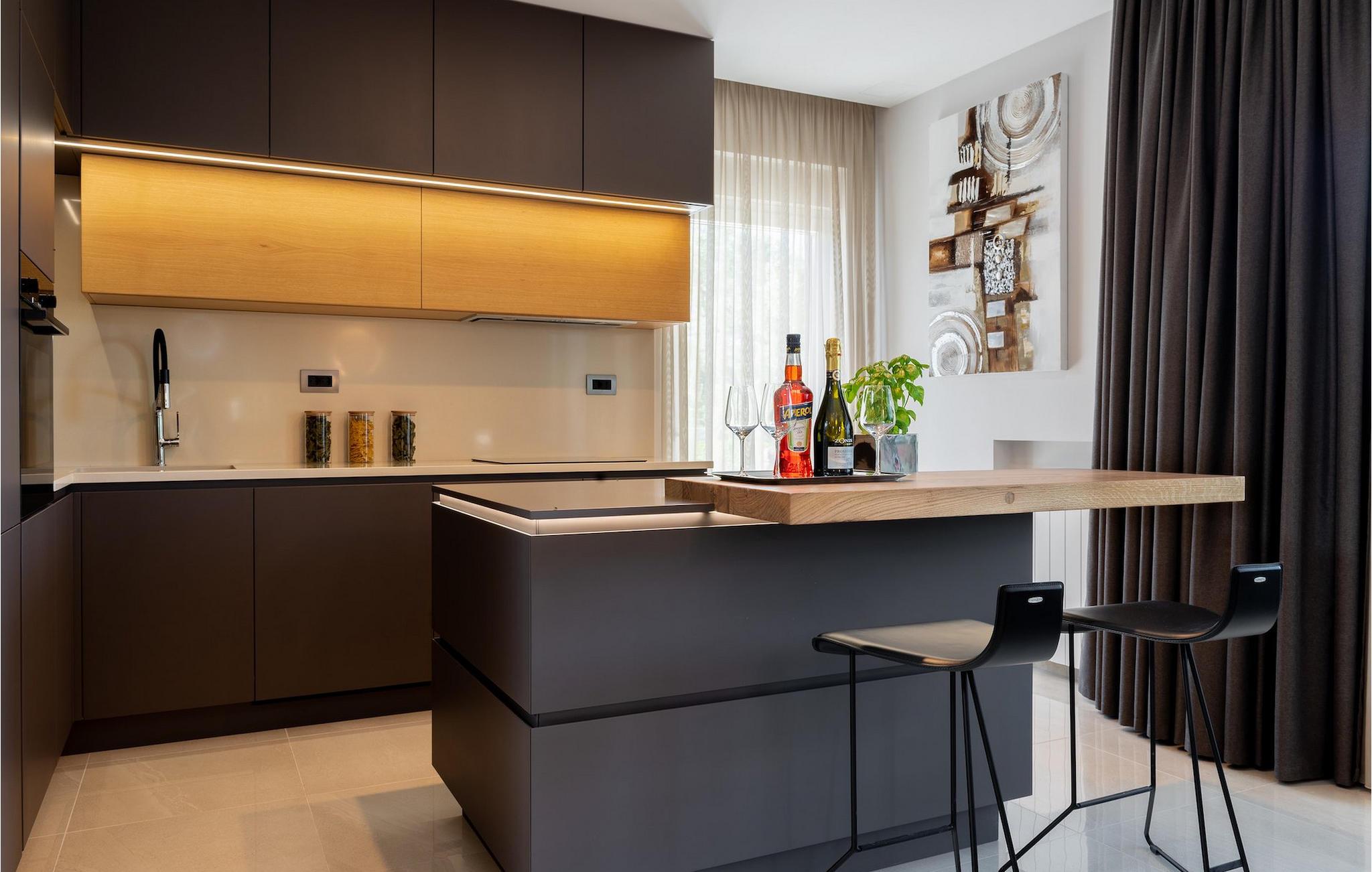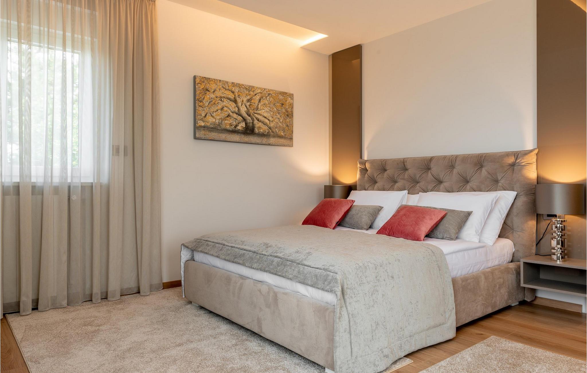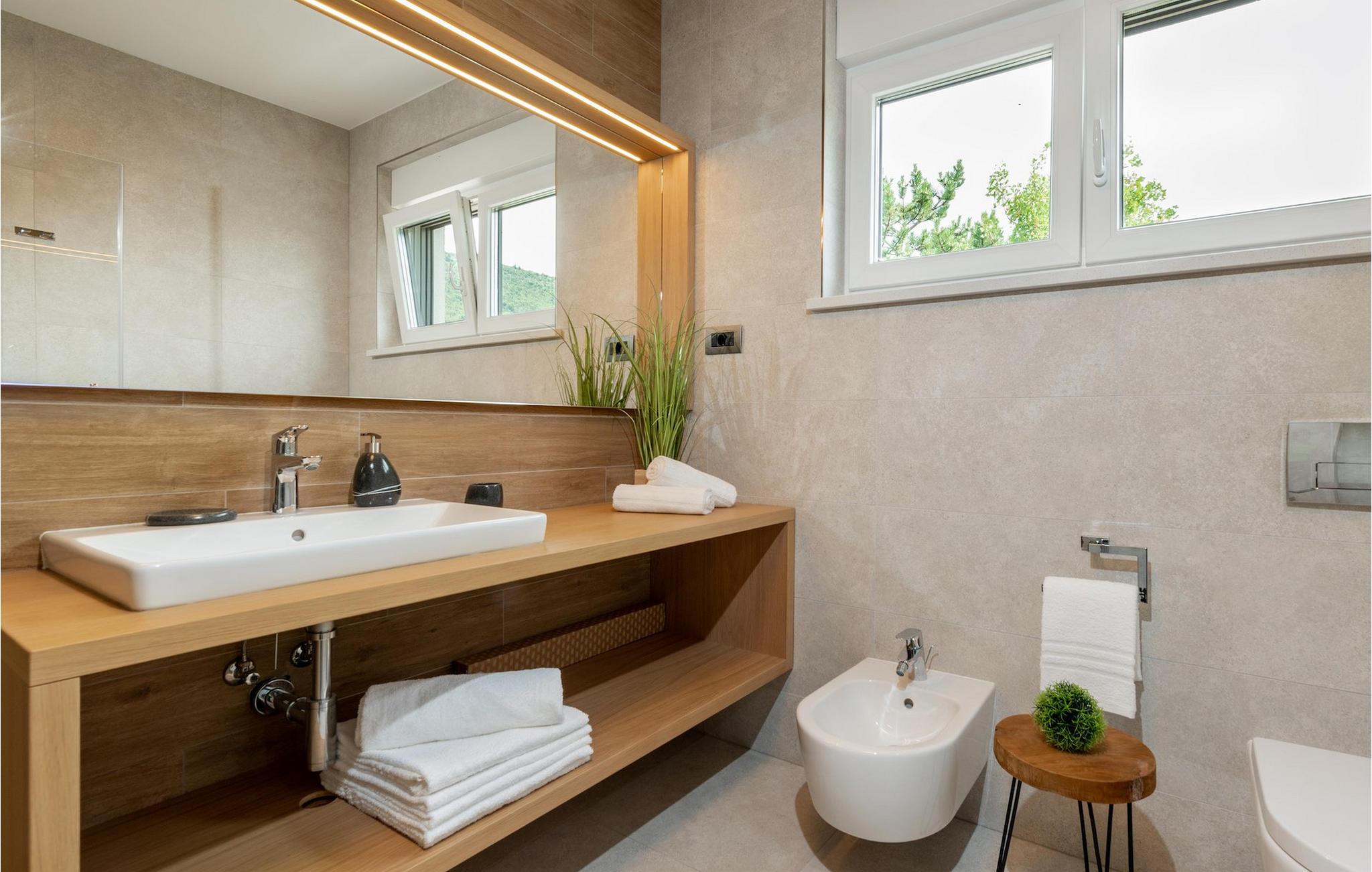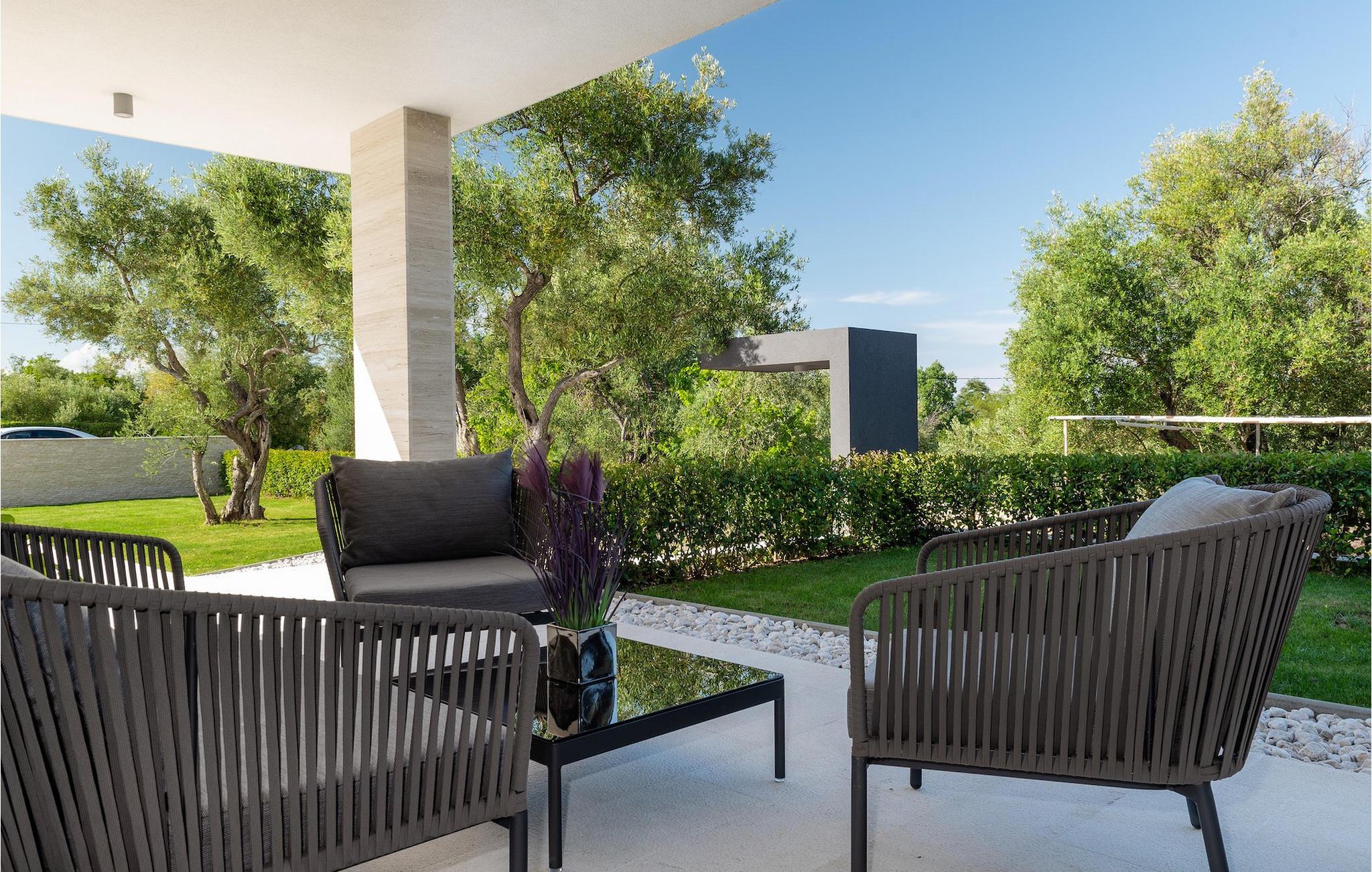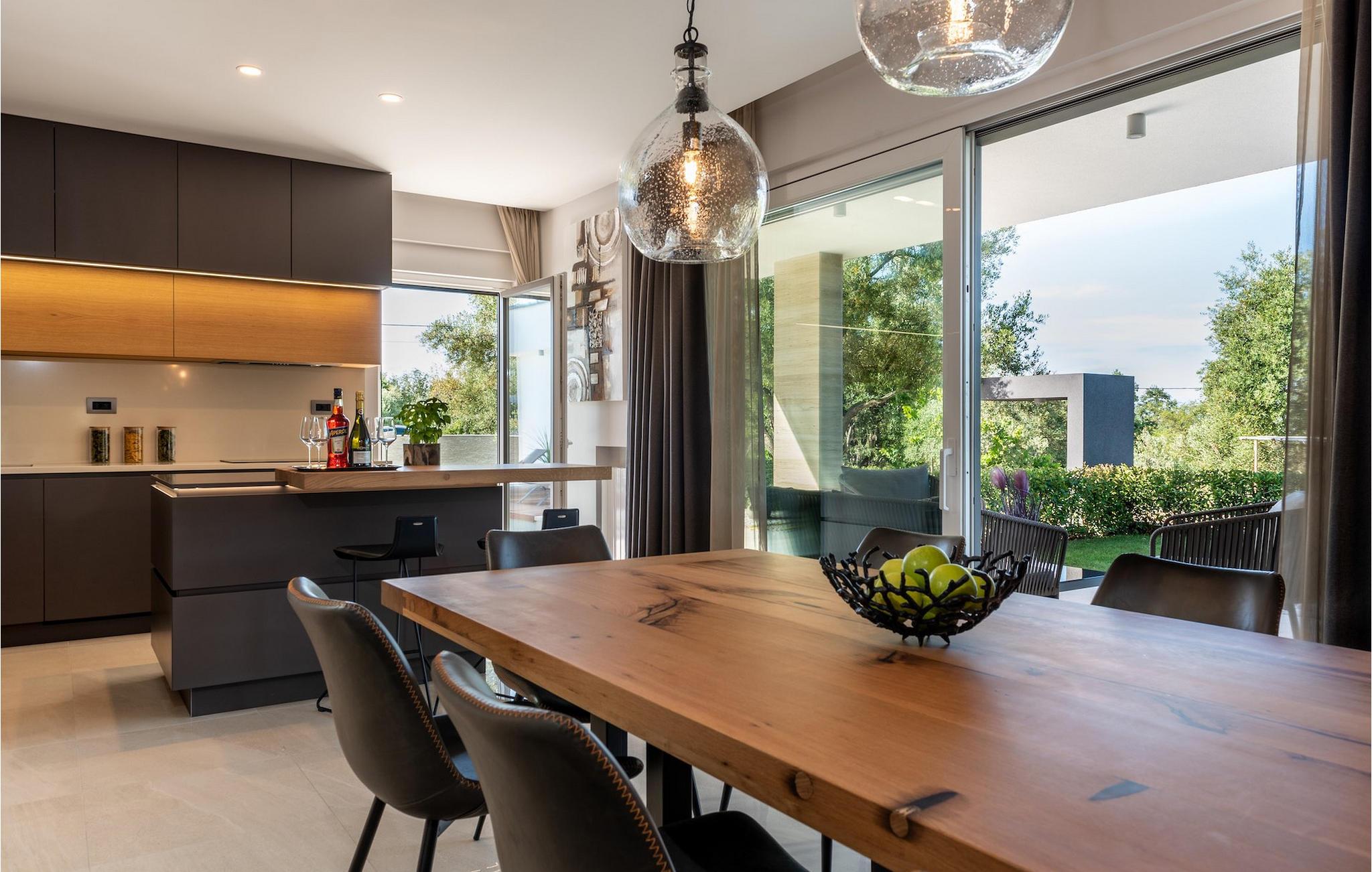 Har du udsøgt smag og leder du efter en luksusvilla? Villa Laurea ligger tæt på havet og har en stor privat pool, en sauna og en fænomenal havudsigt. I den private pool kan du slappe af og forfriske dig selv eller nyde solen på liggestolene. Der er et udendørs køkken med overdækket spiseplads, hvor du kan tilberede og nyde velsmagende måltider med familie og venner. Ved siden af villaen er der også et overdækket loungeområde, hvor du kan nyde din første morgenkaffe eller slappe af i skyggen om dagen, mens vinden bærer duften af middelhavsgrønt. Hvis du rejser med børn, vil du værdsætte fordelene ved villaen. Børn kan lege ubekymret i den helt indhegnede have med legeplads. Villaens interiør er moderne, lyst og luftigt med naturlige farver. Stueetagen har en rummelig stue, spisestue og køkken, samt et soveværelse med eget badeværelse og direkte adgang til gårdhave og pool. På første sal er der yderligere tre soveværelser med private badeværelser og et legerum til børn. På loftet finder du en sauna med bruser og en balkon med smuk udsigt over omgivelserne og havet.Villa Laurea ligger på østkysten af halvøen Istrien i den lille landsby Drenje. Den smukke østkyst i Istrien fra Plomin-bugten til Opatija-rivieraen er en af de smukkeste kyster ved Adriaterhavet. Det er specielt på grund af dets mange bugter og skjulte strande, men også på grund af delfinerne, der lever i dette område. Besøg de nærliggende øer såsom øen Losinj, Cres og Krk og nyd duften af Middelhavet. For alle elskere af aktiv ferie er østkysten ideel. Her er de bedste cykelruter, der forbinder østkysten med det istriske bagland. På den nordlige del af halvøen ligger naturparken Ucka, hvor du kan vandre, cykle og dyrke andre udendørs sportsgrene. Den fremragende beliggenhed af Villa Laurea byder på mange muligheder for dagsture. Besøg landskabet i Istrien, hvor du vil finde adskillige middelalderbyer på bakkerne på bakkerne og førsteklasses traditionelle restauranter, der serverer lokale specialiteter. Besøg også halvøens vestkyst og dens turistperler som Pula, Rovinj og Porec. Glem ikke at besøge Brijuni National Park, en gruppe af øer i syd kendt for sine smukke strande og arkæologiske steder.