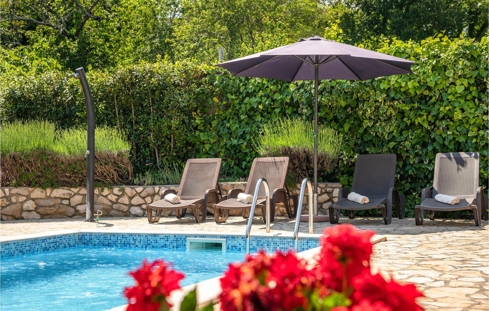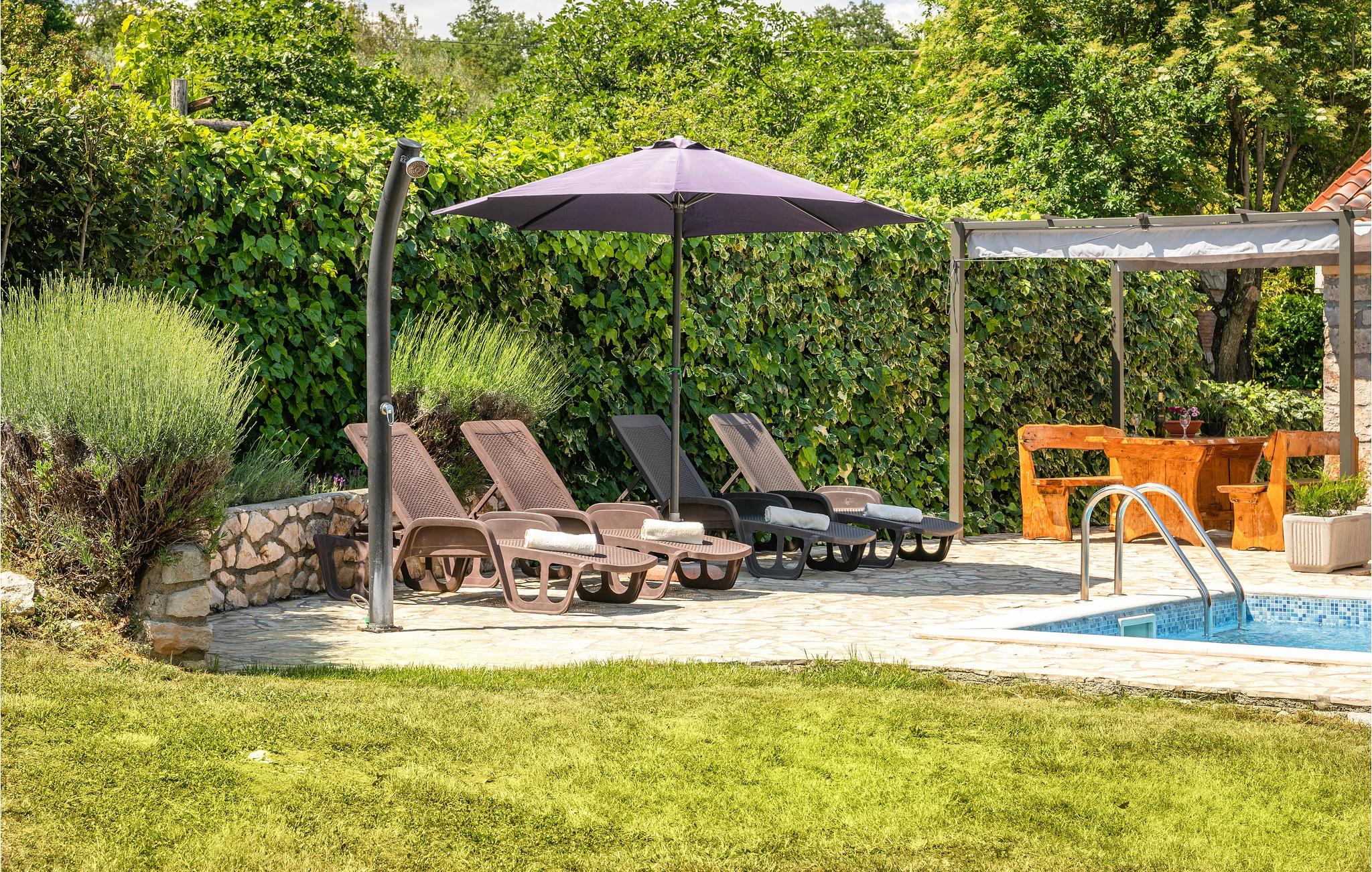 Dette dejlige feriehus med pool ligger i den lille landsby Faraguni nær Labin og er ideel til en afslappet familieferie i en idyllisk og landlig omgivelse. Interiøret er smukt og funktionelt møbleret og tilbyder dig et behageligt ophold. Foran huset er der en hyggelig terrasse, hvor du kan nyde din lækre grillmiddag med et glas god istrisk vin. De yngste familiemedlemmer vil have masser af plads at lege på på ejendommen.