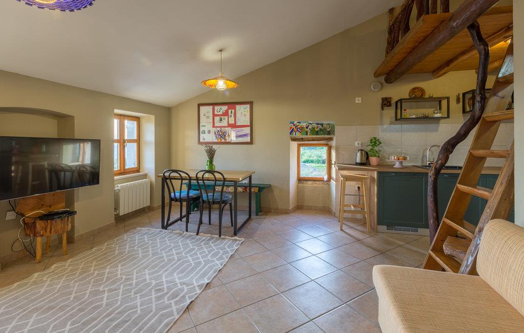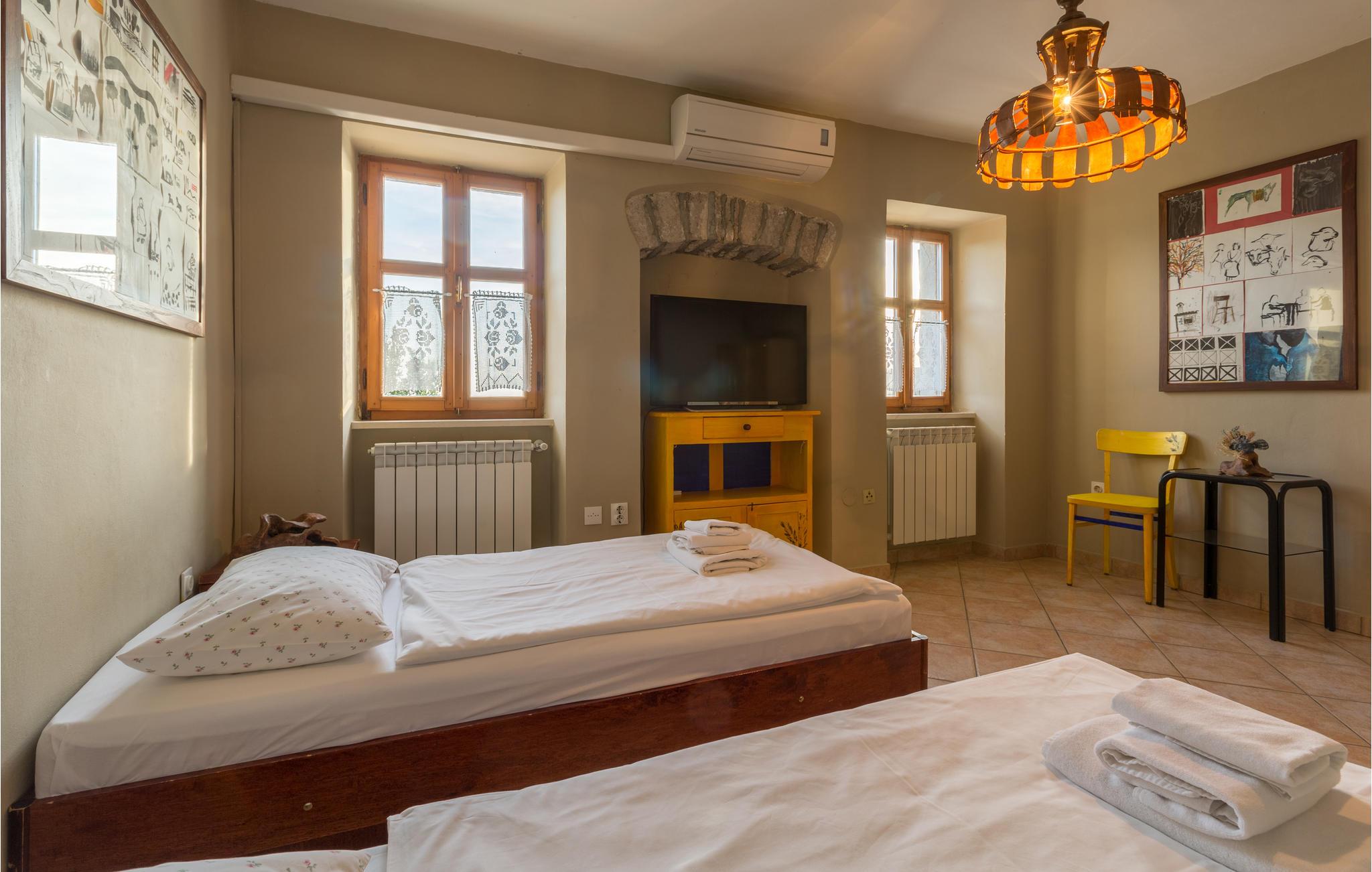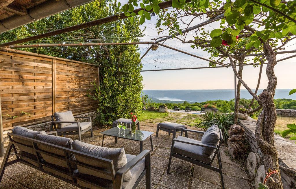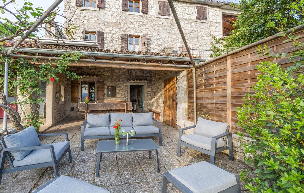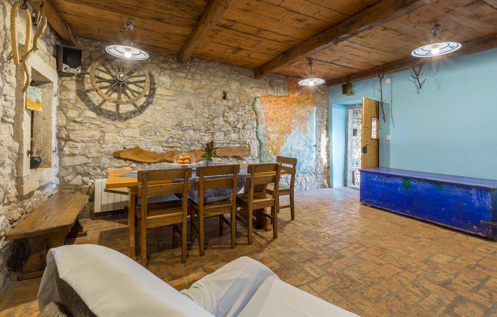 Huset er bygget i traditionel istrisk stil og møbleret i rustik og autentisk stil. Stueetagen har en hyggelig konoba (taverna) med åben pejs og et køkken. Første sal består af to soveværelser, et køkken og et badeværelse. Anden sal indeholder en opholdsstue med køkken, et soveværelse, et badeværelse og en hems, der er tilgængelig via en stejl trappe – ikke egnet til små børn. Den laveste loftshøjde på hemsen er 1,3 meter.