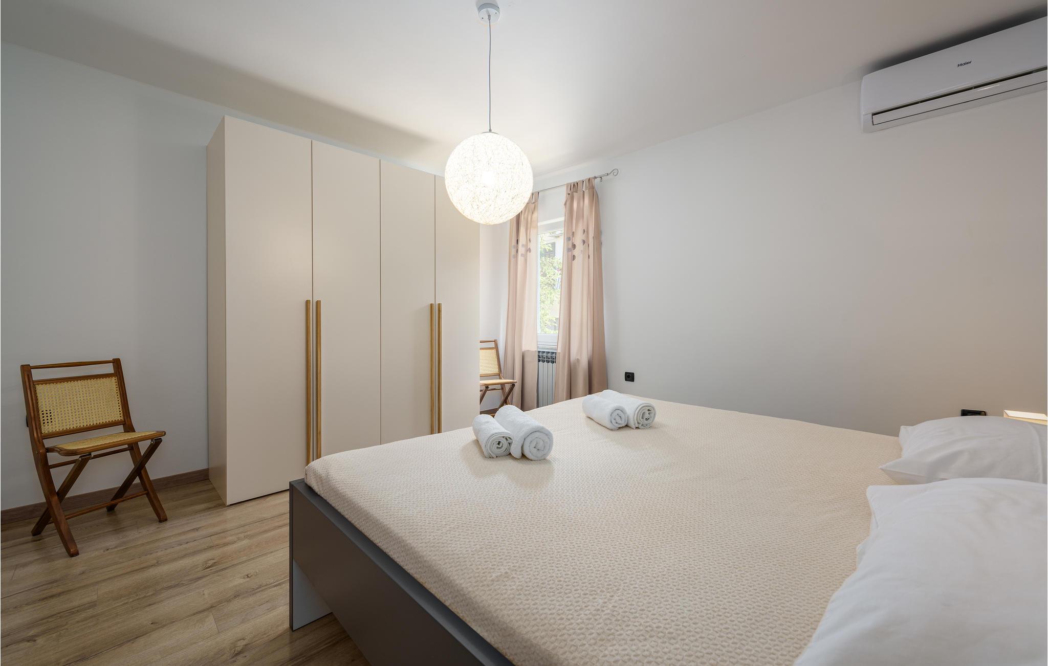 Her bor I ganske landligt, denne lille landsby består kun af få huse. Her kan I slappe af i det fri, for ved siden af poolen ligger den overdækkede terrasse og en lille konoba med både kamin og køkken. Haven er børnevenlig med god plads til at tumle sig og spille bod. Huset rummer to lejligheder, forbundet med både inden- og udendørs trappe. I en lejlighed er der køkken kombineret med stue samt tre soveværelser, i den anden et moderne køkken, stoe og soveværelse og et badeværelse. Huset er velegnet til to familier der gerne vil på ferie sammen, men bo hver for sig. Gæsterne har desuden et fælles opholdsrum til rådighed. I nærheden af huset er der dejlige cykelstier. På 10 minutter i bil kommer I til den populære bondegård ’Goloricki dol’, hvor I kan komme helt tæt på gårdens dyr, samt købe lækre istriske specialiteter af egen produktion. Huset er det helt rigtige valg til ferie i naturen. Men I behøver ikke undvære kunst og kultur, lige i nærheden ligger kunstnerkolonien Labin er kendt for sine talrige gallerier, den antikke by Pula med amfiteater og feriebyen Opatija som er en rigtig perle ved den istriske kyst.