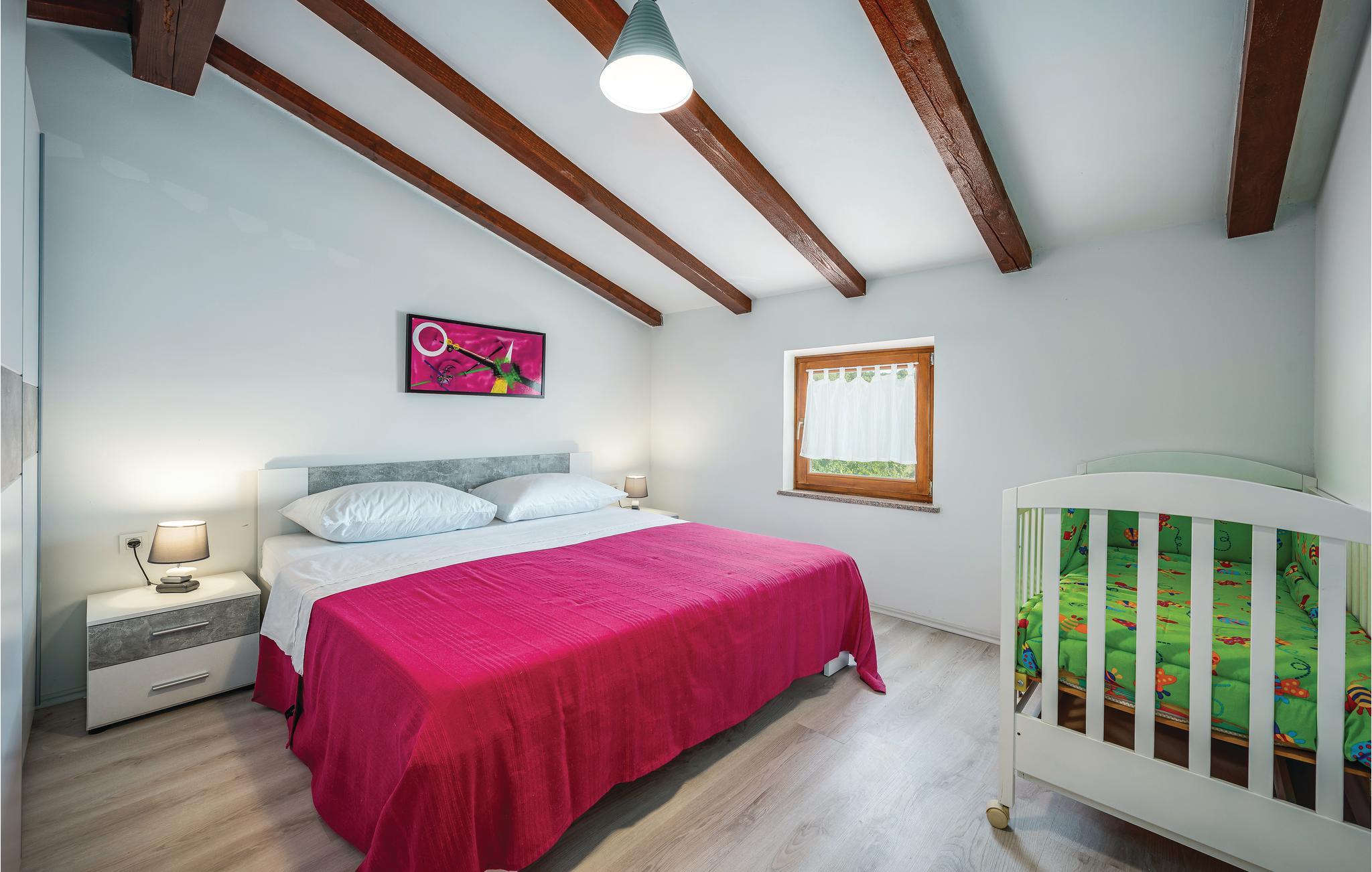 Dette smagfuldt indrettede feriehus med pool ligger i Kapelica, en lille by ikke langt fra Labin. Det består af to etager og er indrettet til jeres skønne ferie. Slap af på terrassen med en god bog og et velsmagende glas af den lokale vin og hop en forfriskende tur i poolen, når solen står højt på himlen. I kan også lave nem og lækker mad på grillen, både grønt, fisk, skaldyr og kød får en særlig smag efter en tur over gløderne. Til børnene er der gynge og rutsjebane. Besøg den maleriske gamle bydel i Labin, og tag en tur til Rabac, med herlige kiesstrande og det krystalklare hav, hvor I også kan tage på udflugt i båd, eller gå tur på promenaden med souvenirbutikker, barer og restauranter. Der er kun adgang udefra, til badeværelset i stueplan.