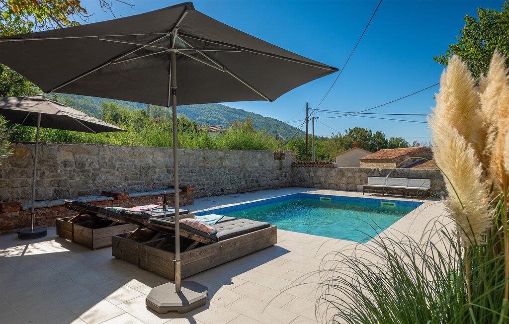Drømmer du om en afslappende ferie med dine kære? Så er Villa Kozljak det perfekte valg for dig! Det er beliggende i en rolig og idyllisk beliggenhed og samtidig er det kun en kort køretur fra berømte kystbyer. Uden for villaen er der en privat pool, hvor du kan forfriske dig selv på varme sommerdage eller nyde sommerbrisen, mens du slapper af på liggestolene. Ud over en højkvalitets WEBER gasgrill på terrassen foran huset er der en åben kulgrill med et skyggefuldt andet udendørs opholdsområde på ejendommen. Boligområdet i den istriske stenvilla med rustik charme er fordelt på to etager og kan rumme i alt seks personer i tre soveværelser. I stueetagen er der opholds- og spisestue med køkken og separat toilet. På etagen er der tre hyggelige soveværelser og to badeværelser. Villa Kozljak er et ideelt sted at flygte fra din hverdag og tilbringe en uforglemmelig ferie.Villa Kozljak ligger i den lille landsby Kozljak, tæt på den smukke naturpark Ucka. I umiddelbar nærhed er der talrige rekreative muligheder. Det imponerende landskab i Ucka kan udforskes særligt godt, mens du vandrer eller cykler på mountainbike. Den gamle bydel i Labin, som er værd at se, kan nås på en kort køretur, samt kystbyen Rabac, som er livlig om sommeren og byder på et udvalg af restauranter, caféer og butikker. Inden for 10 til 20 minutters kørsel fra villaen kan du nå de nærmeste strande. Det krystalklare Adriaterhav, de rene småsten og de klippefyldte strande giver en unik svømmeoplevelse. Vi anbefaler en tur til det fashionable Opatija i den nordlige del af Kvarnerbugten - Adriaterhavets perle og den kroatiske turismes vugge. Storslåede villaer og imponerende parker venter på dig, samt den populære 12 km lange Lungomare kystpromenade. Villa Kozljak er et ideelt udgangspunkt for at udforske naturen og kulturen i Istrien året rundt.