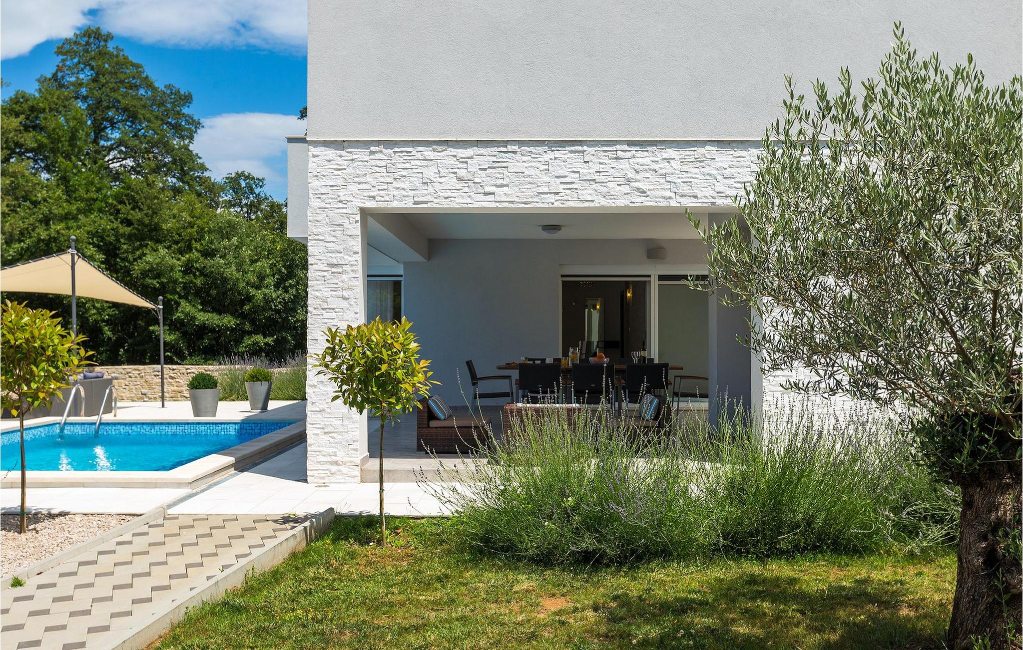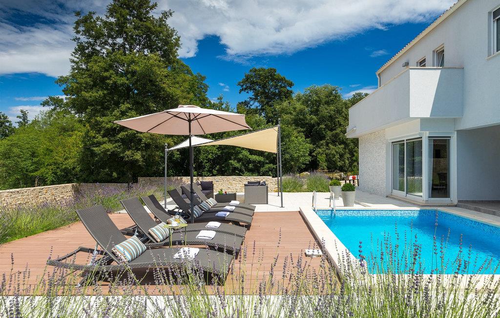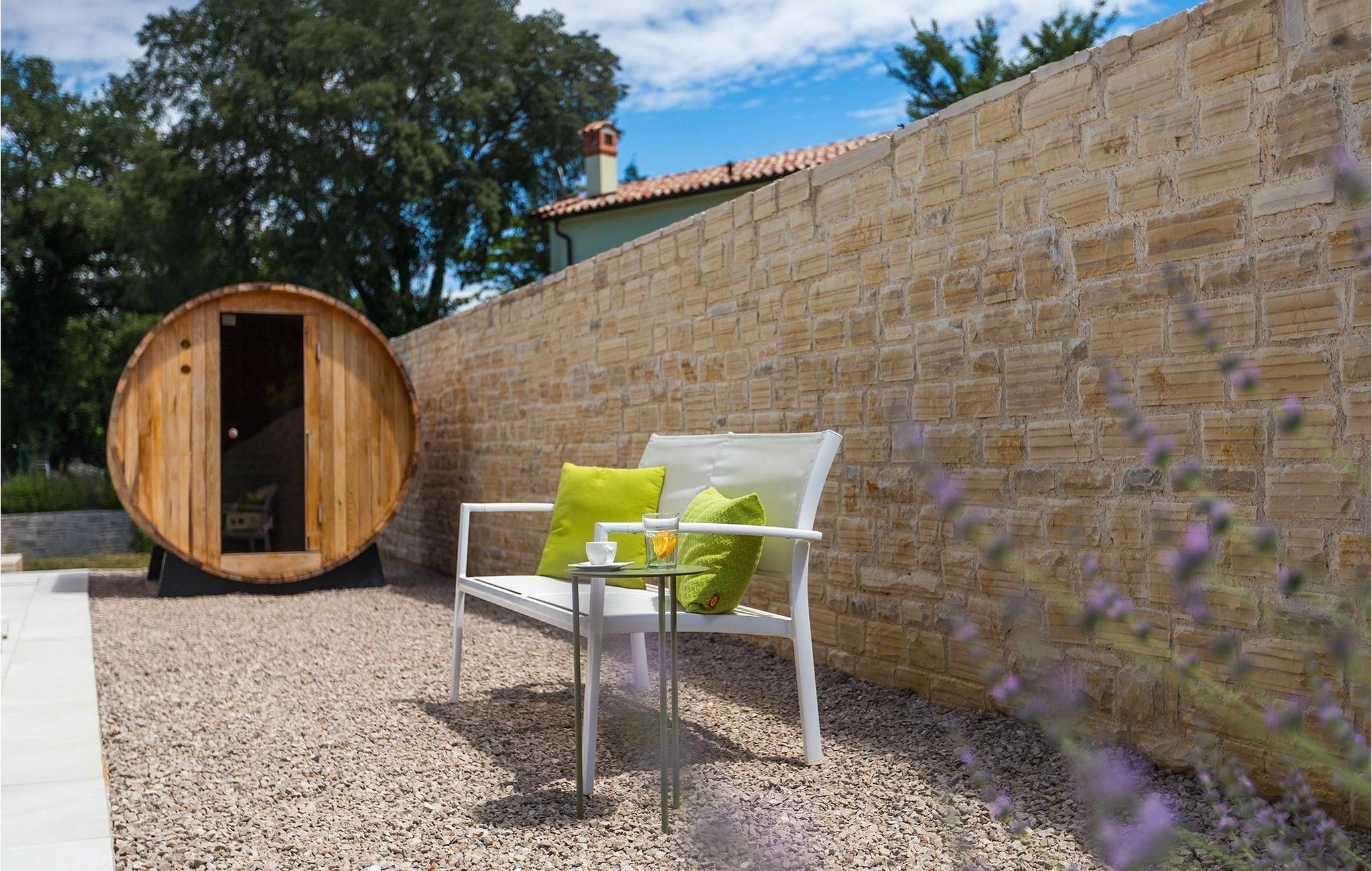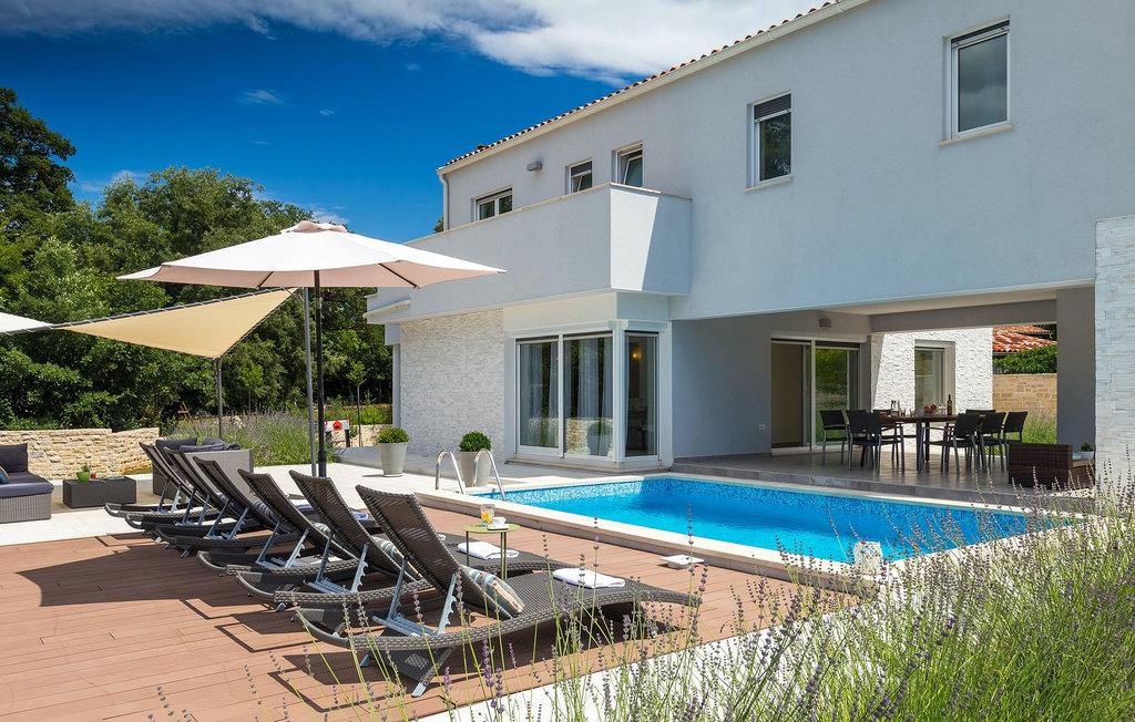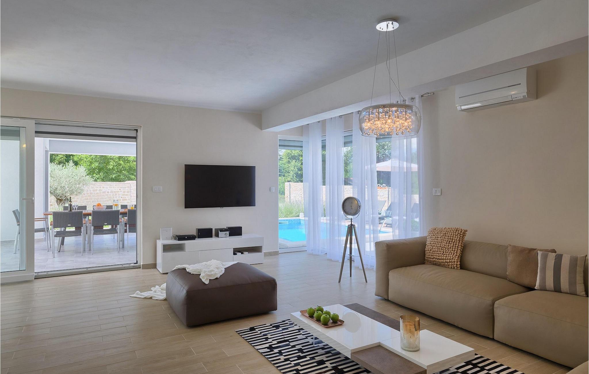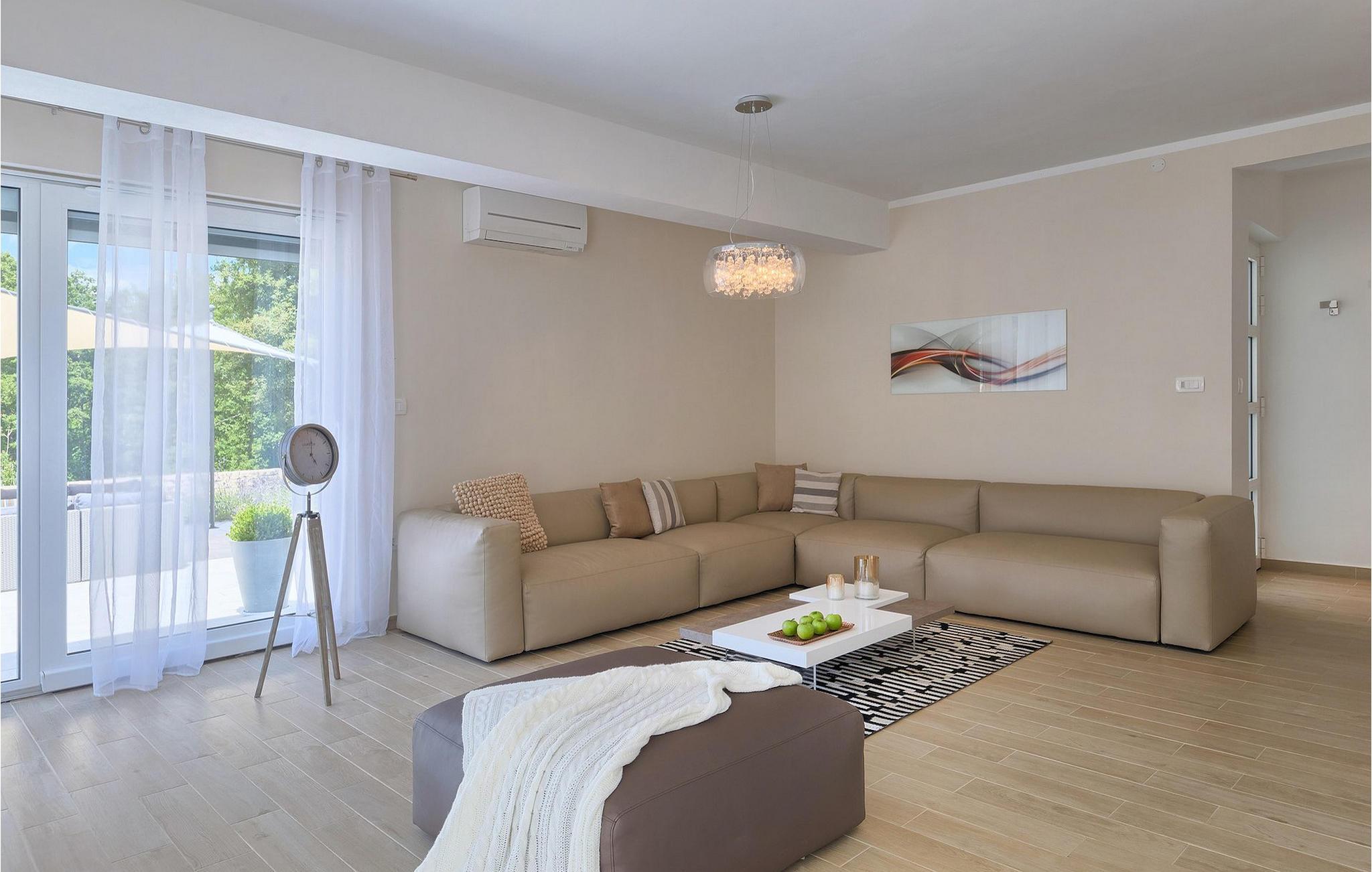 Smukke Villa Tireli er synonymet for luksus! Denne hyggelige og rummelige villa har i alt 4 soveværelser og kan rumme op til 8 gæster. Alle værelser er lyse og luftige, minimalistiske, men udstyret med alt hvad du behøver på din ferie. I stueetagen er der fuldt udstyret køkken med spiseplads samt opholdsstue med direkte udgang til villaens terrasse udenfor. På øverste etage finder du 4 soveværelser, hver udstyret med en dobbeltseng og hver med sit eget private badeværelse. På ydersiden kan du nyde freden og roen i det istriske landskab, mens du slapper af på villaens indbydende pool. For et ekstra strejf af luksus er der bordtennis, bordfodbold og sauna til din rådighed. Denne ejendom er beliggende i en lille landsby i den østlige del af Istrien. Hele denne region er godt forbundet og har et fremragende og uoverfyldt vejsystem. Den istriske halvø 'terra magica' ligger ved det varme Adriaterhav, så du vil blive begejstret for, at den nærmeste strand kun ligger 5 km fra villaen. Den nærmeste lufthavn samt nogle af de større turistcentre såsom Labin og Rabac er også kun en kort køretur væk. Labin ligger på en bakketop lige over den magiske kystlinje og er det historiske og administrative centrum i det østlige Istrien. Området er et paradis for historie- og kunstentusiaster med sin rige kulturelle og arkitektoniske arv. De stejle snoede gader i den gamle bydel kan prale af velbevarede historiske paladser, talrige kunstgallerier og atelierer og vært for forskellige jazz- og klassisk musikfestivaler i sommermånederne. Byen byder på adskillige fremragende fiskerestauranter, med mange lokale råvarer på tilbud, samt mange hyggelige kaffebarer, ideelle til at nyde den afslappede atmosfære. Labins badeby er Rabac, engang en fiskerby og i dag et populært turistmål omgivet af himmelske stenstrande.