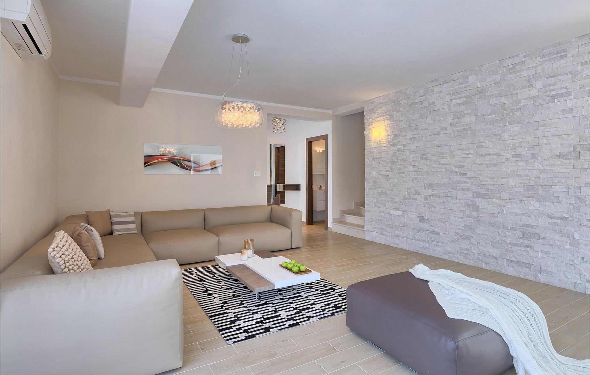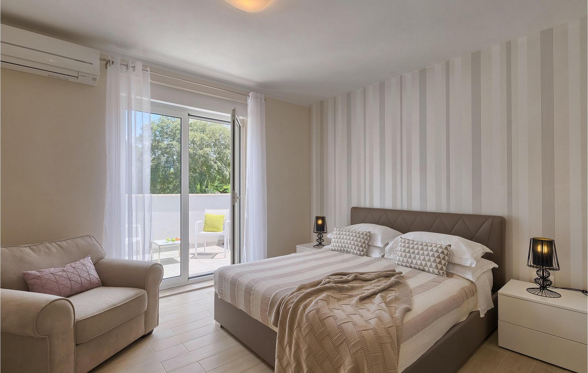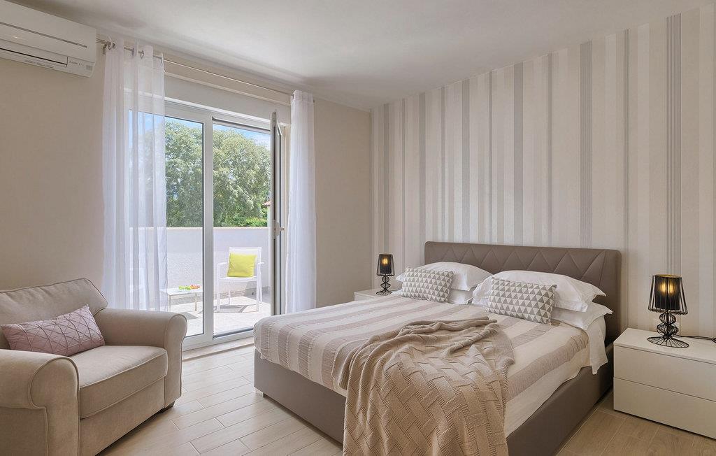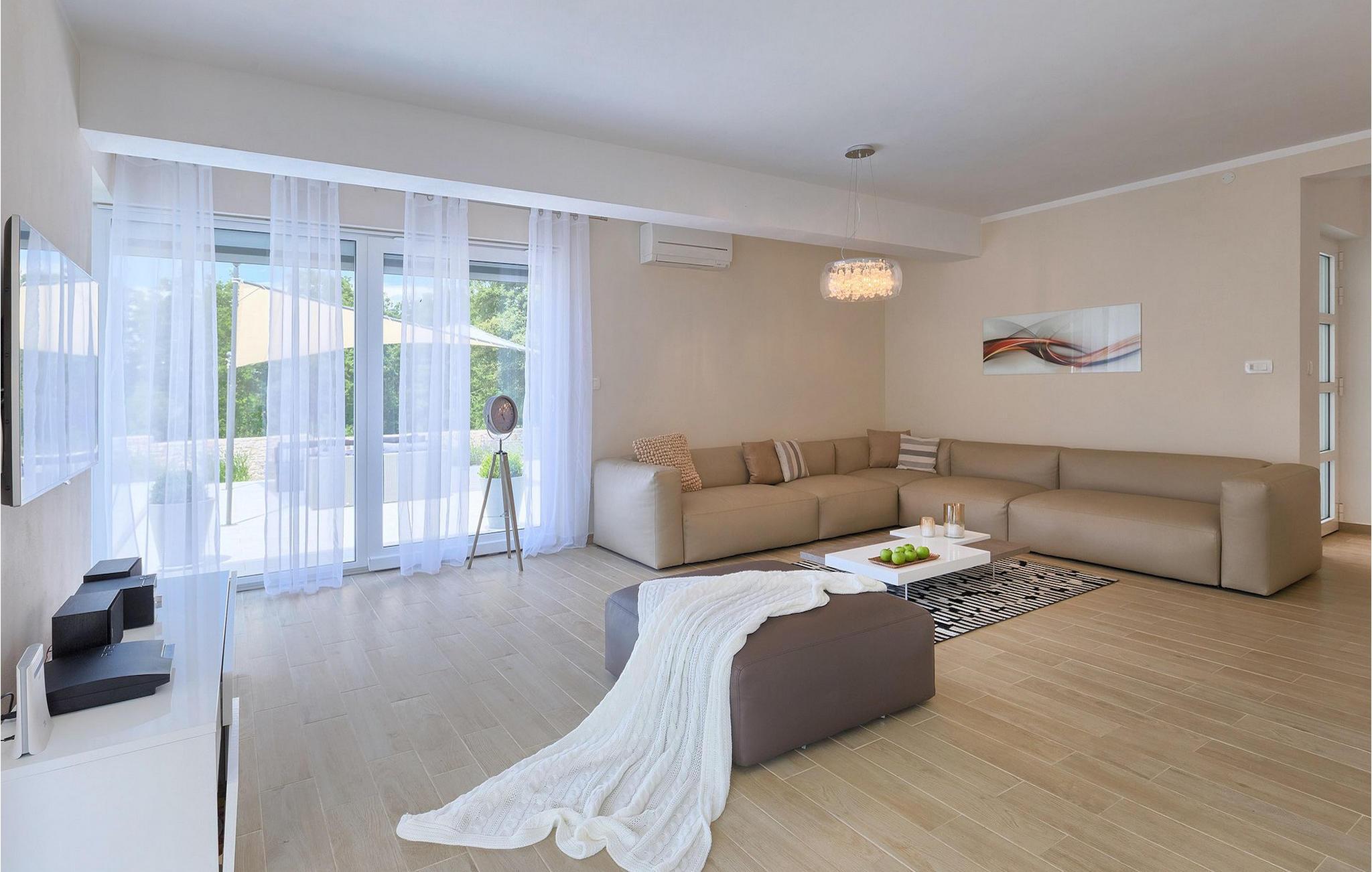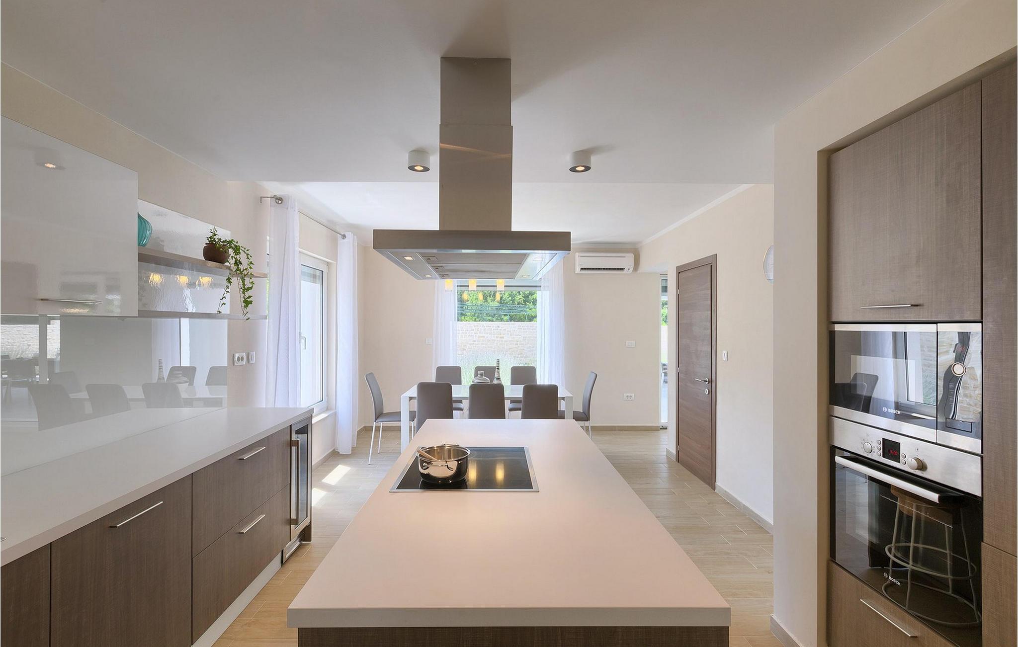 Smukke Villa Tireli er synonymet for luksus! Denne hyggelige og rummelige villa har i alt 4 soveværelser og kan rumme op til 8 gæster. Alle værelser er lyse og luftige, minimalistiske, men udstyret med alt hvad du behøver på din ferie. I stueetagen er der fuldt udstyret køkken med spiseplads samt opholdsstue med direkte udgang til villaens terrasse udenfor. På øverste etage finder du 4 soveværelser, hver udstyret med en dobbeltseng og hver med sit eget private badeværelse. På ydersiden kan du nyde freden og roen i det istriske landskab, mens du slapper af på villaens indbydende pool. For et ekstra strejf af luksus er der bordtennis, bordfodbold og sauna til din rådighed. Denne ejendom er beliggende i en lille landsby i den østlige del af Istrien. Hele denne region er godt forbundet og har et fremragende og uoverfyldt vejsystem. Den istriske halvø 'terra magica' ligger ved det varme Adriaterhav, så du vil blive begejstret for, at den nærmeste strand kun ligger 5 km fra villaen. Den nærmeste lufthavn samt nogle af de større turistcentre såsom Labin og Rabac er også kun en kort køretur væk. Labin ligger på en bakketop lige over den magiske kystlinje og er det historiske og administrative centrum i det østlige Istrien. Området er et paradis for historie- og kunstentusiaster med sin rige kulturelle og arkitektoniske arv. De stejle snoede gader i den gamle bydel kan prale af velbevarede historiske paladser, talrige kunstgallerier og atelierer og vært for forskellige jazz- og klassisk musikfestivaler i sommermånederne. Byen byder på adskillige fremragende fiskerestauranter, med mange lokale råvarer på tilbud, samt mange hyggelige kaffebarer, ideelle til at nyde den afslappede atmosfære. Labins badeby er Rabac, engang en fiskerby og i dag et populært turistmål omgivet af himmelske stenstrande.