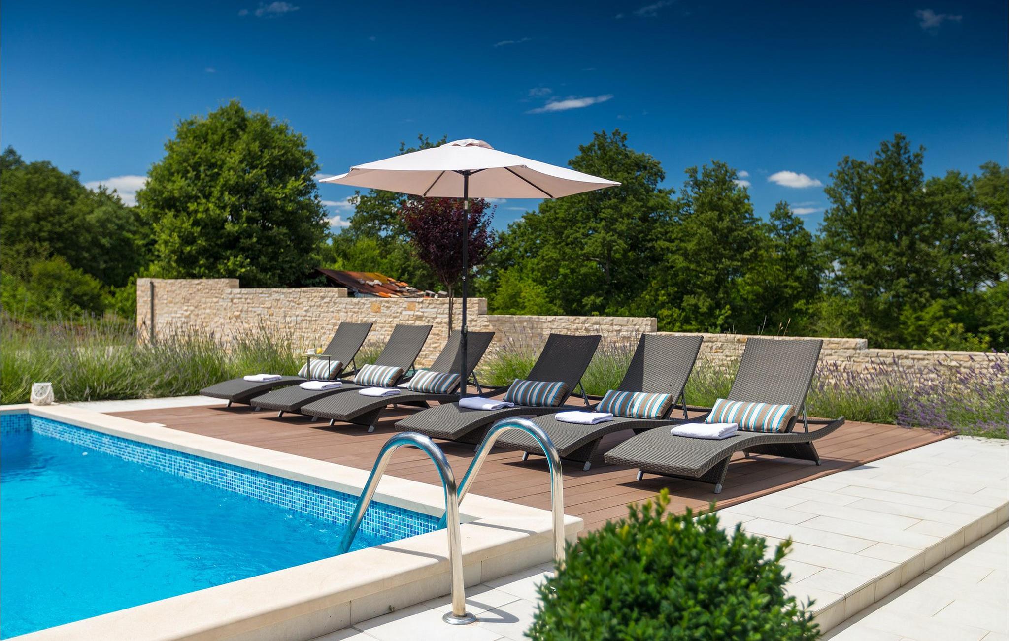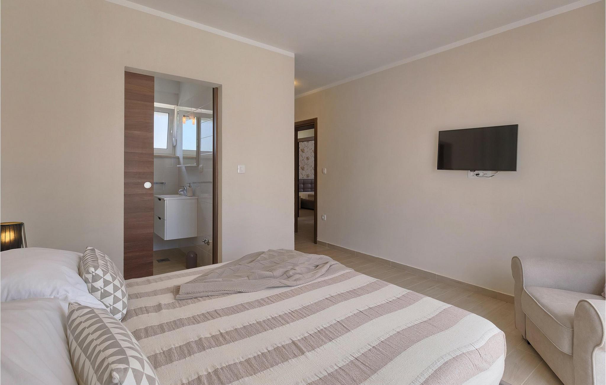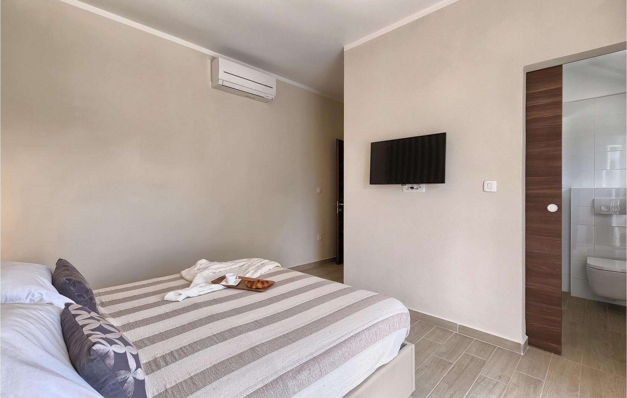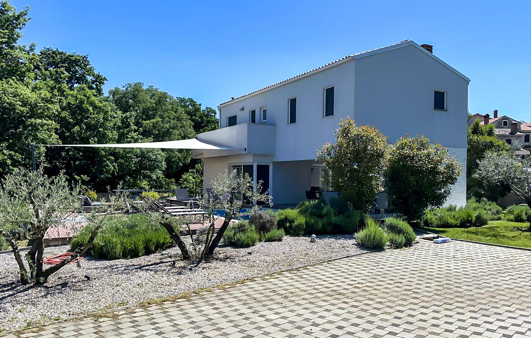 Smukke Villa Tireli er synonymet for luksus! Denne hyggelige og rummelige villa har i alt 4 soveværelser og kan rumme op til 8 gæster. Alle værelser er lyse og luftige, minimalistiske, men udstyret med alt hvad du behøver på din ferie. I stueetagen er der fuldt udstyret køkken med spiseplads samt opholdsstue med direkte udgang til villaens terrasse udenfor. På øverste etage finder du 4 soveværelser, hver udstyret med en dobbeltseng og hver med sit eget private badeværelse. På ydersiden kan du nyde freden og roen i det istriske landskab, mens du slapper af på villaens indbydende pool. For et ekstra strejf af luksus er der bordtennis, bordfodbold og sauna til din rådighed. Denne ejendom er beliggende i en lille landsby i den østlige del af Istrien. Hele denne region er godt forbundet og har et fremragende og uoverfyldt vejsystem. Den istriske halvø 'terra magica' ligger ved det varme Adriaterhav, så du vil blive begejstret for, at den nærmeste strand kun ligger 5 km fra villaen. Den nærmeste lufthavn samt nogle af de større turistcentre såsom Labin og Rabac er også kun en kort køretur væk. Labin ligger på en bakketop lige over den magiske kystlinje og er det historiske og administrative centrum i det østlige Istrien. Området er et paradis for historie- og kunstentusiaster med sin rige kulturelle og arkitektoniske arv. De stejle snoede gader i den gamle bydel kan prale af velbevarede historiske paladser, talrige kunstgallerier og atelierer og vært for forskellige jazz- og klassisk musikfestivaler i sommermånederne. Byen byder på adskillige fremragende fiskerestauranter, med mange lokale råvarer på tilbud, samt mange hyggelige kaffebarer, ideelle til at nyde den afslappede atmosfære. Labins badeby er Rabac, engang en fiskerby og i dag et populært turistmål omgivet af himmelske stenstrande.