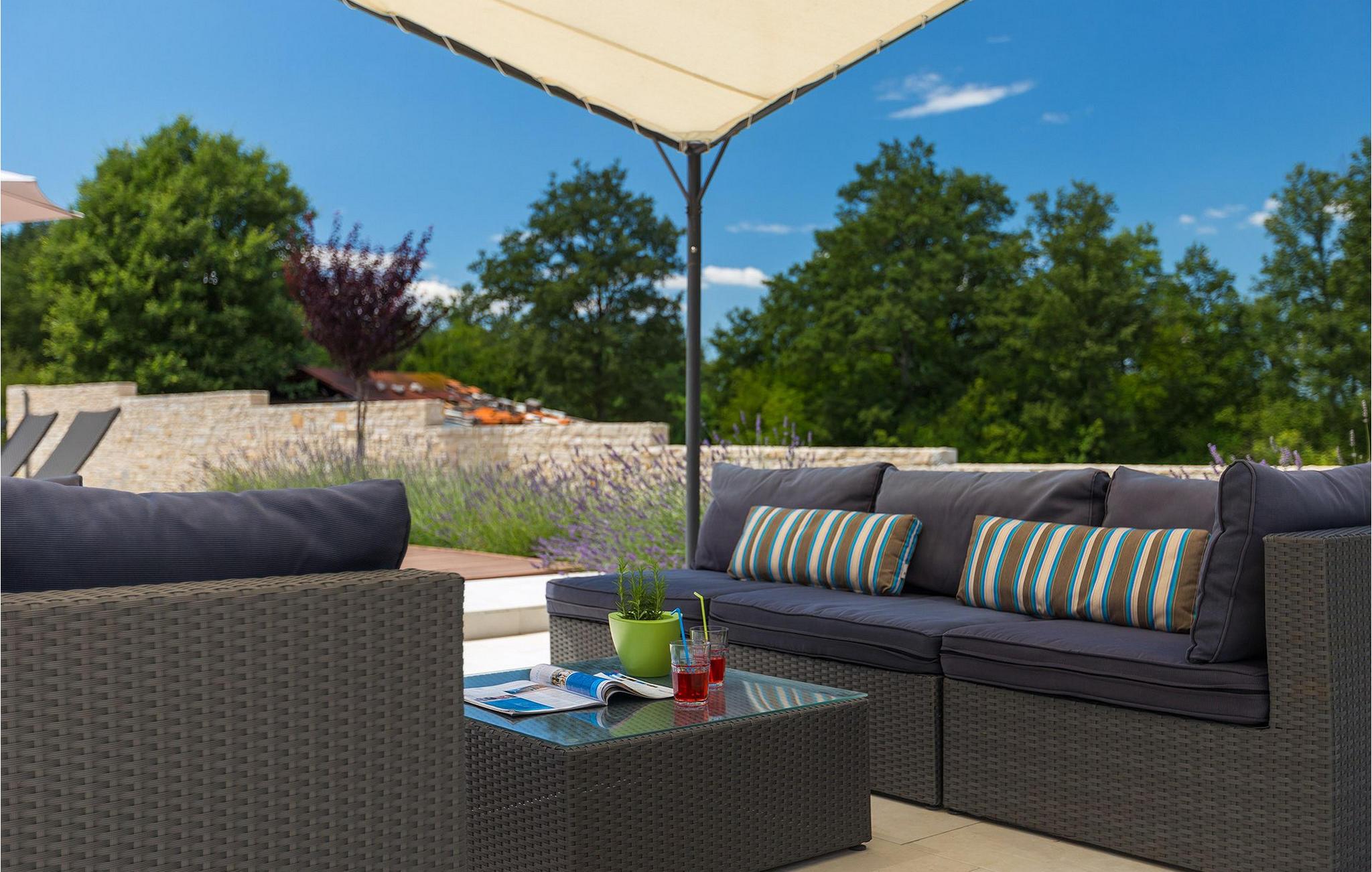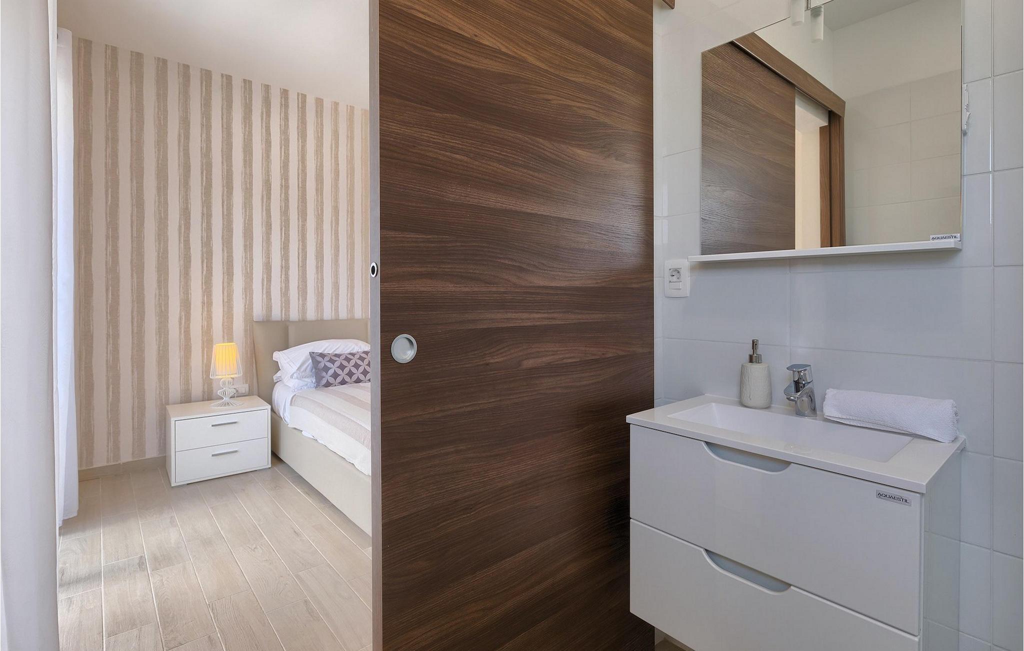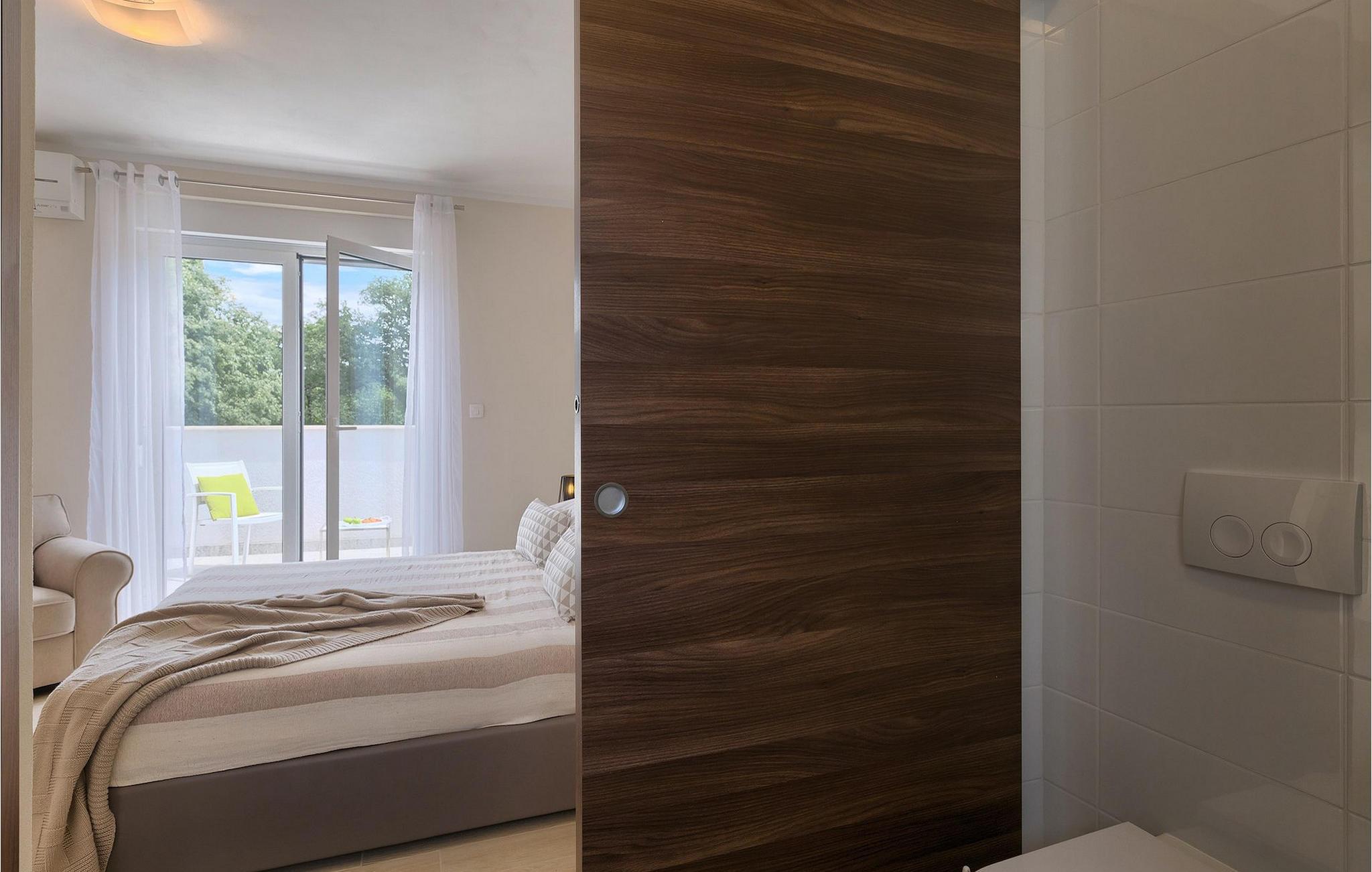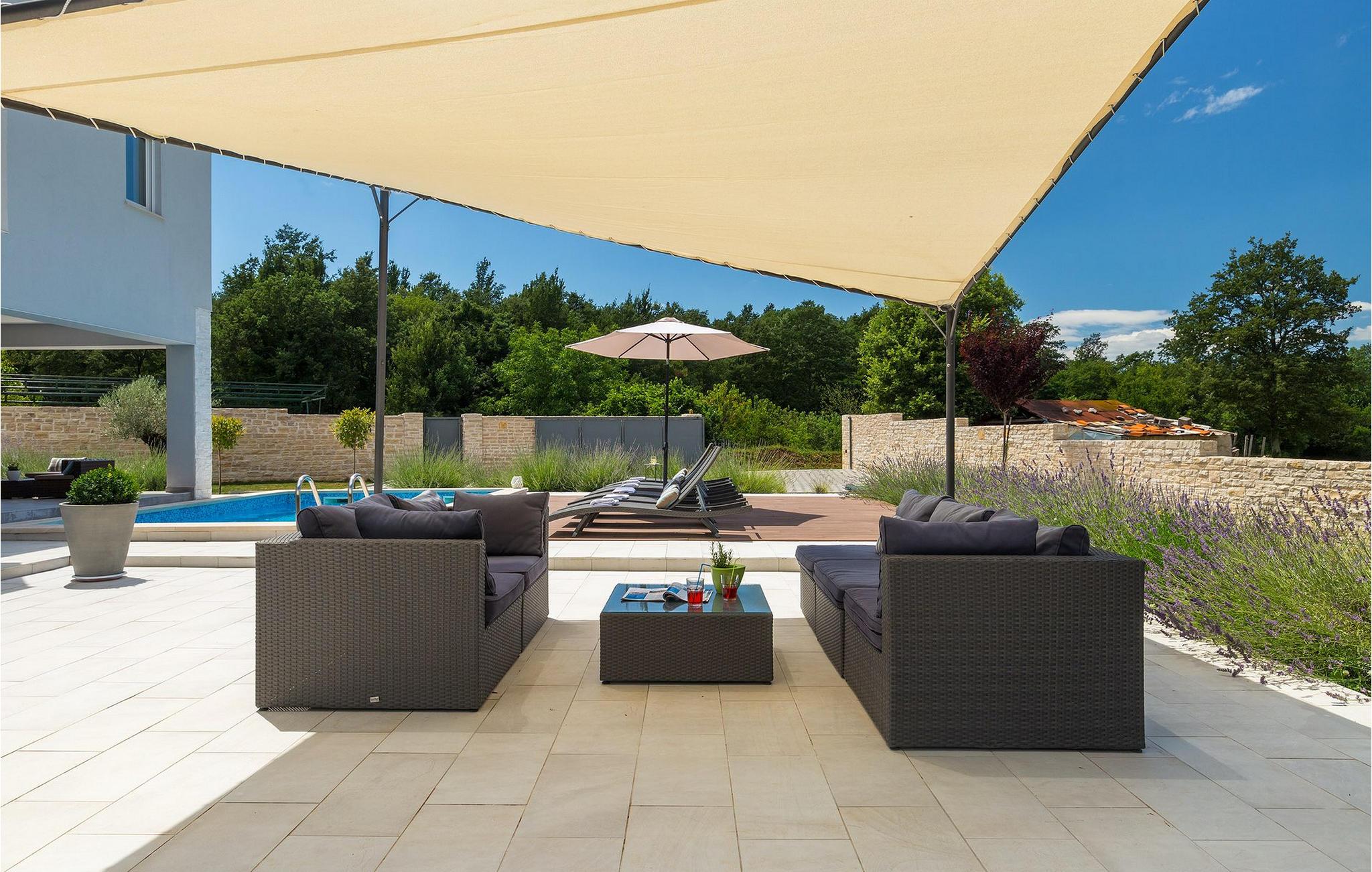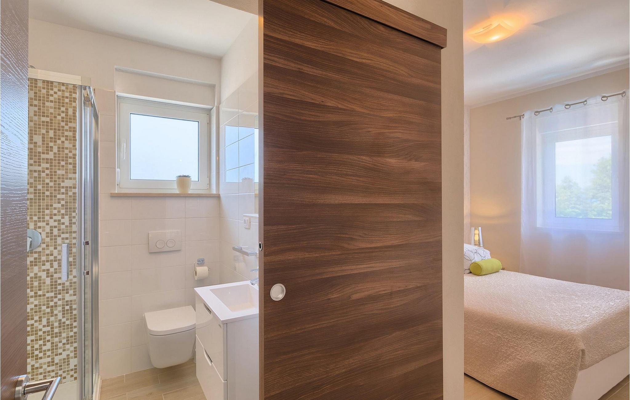 Smukke Villa Tireli er synonymet for luksus! Denne hyggelige og rummelige villa har i alt 4 soveværelser og kan rumme op til 8 gæster. Alle værelser er lyse og luftige, minimalistiske, men udstyret med alt hvad du behøver på din ferie. I stueetagen er der fuldt udstyret køkken med spiseplads samt opholdsstue med direkte udgang til villaens terrasse udenfor. På øverste etage finder du 4 soveværelser, hver udstyret med en dobbeltseng og hver med sit eget private badeværelse. På ydersiden kan du nyde freden og roen i det istriske landskab, mens du slapper af på villaens indbydende pool. For et ekstra strejf af luksus er der bordtennis, bordfodbold og sauna til din rådighed. Denne ejendom er beliggende i en lille landsby i den østlige del af Istrien. Hele denne region er godt forbundet og har et fremragende og uoverfyldt vejsystem. Den istriske halvø 'terra magica' ligger ved det varme Adriaterhav, så du vil blive begejstret for, at den nærmeste strand kun ligger 5 km fra villaen. Den nærmeste lufthavn samt nogle af de større turistcentre såsom Labin og Rabac er også kun en kort køretur væk. Labin ligger på en bakketop lige over den magiske kystlinje og er det historiske og administrative centrum i det østlige Istrien. Området er et paradis for historie- og kunstentusiaster med sin rige kulturelle og arkitektoniske arv. De stejle snoede gader i den gamle bydel kan prale af velbevarede historiske paladser, talrige kunstgallerier og atelierer og vært for forskellige jazz- og klassisk musikfestivaler i sommermånederne. Byen byder på adskillige fremragende fiskerestauranter, med mange lokale råvarer på tilbud, samt mange hyggelige kaffebarer, ideelle til at nyde den afslappede atmosfære. Labins badeby er Rabac, engang en fiskerby og i dag et populært turistmål omgivet af himmelske stenstrande.