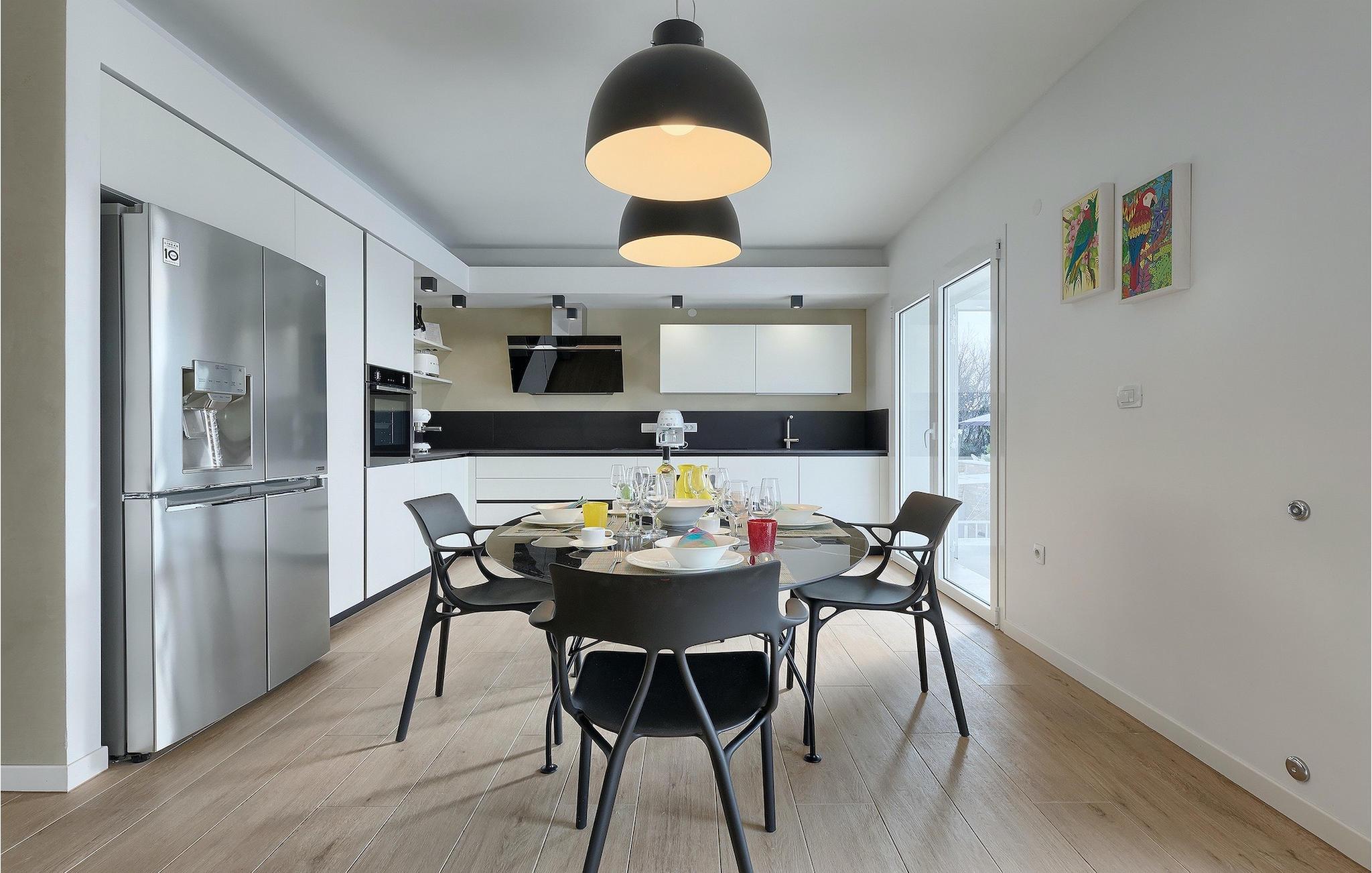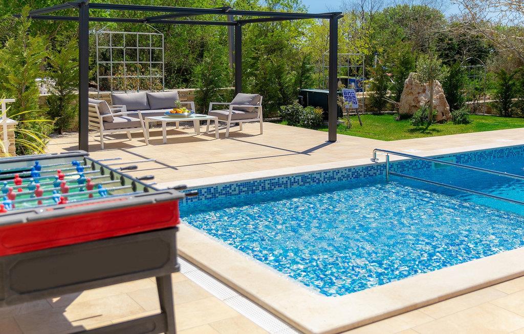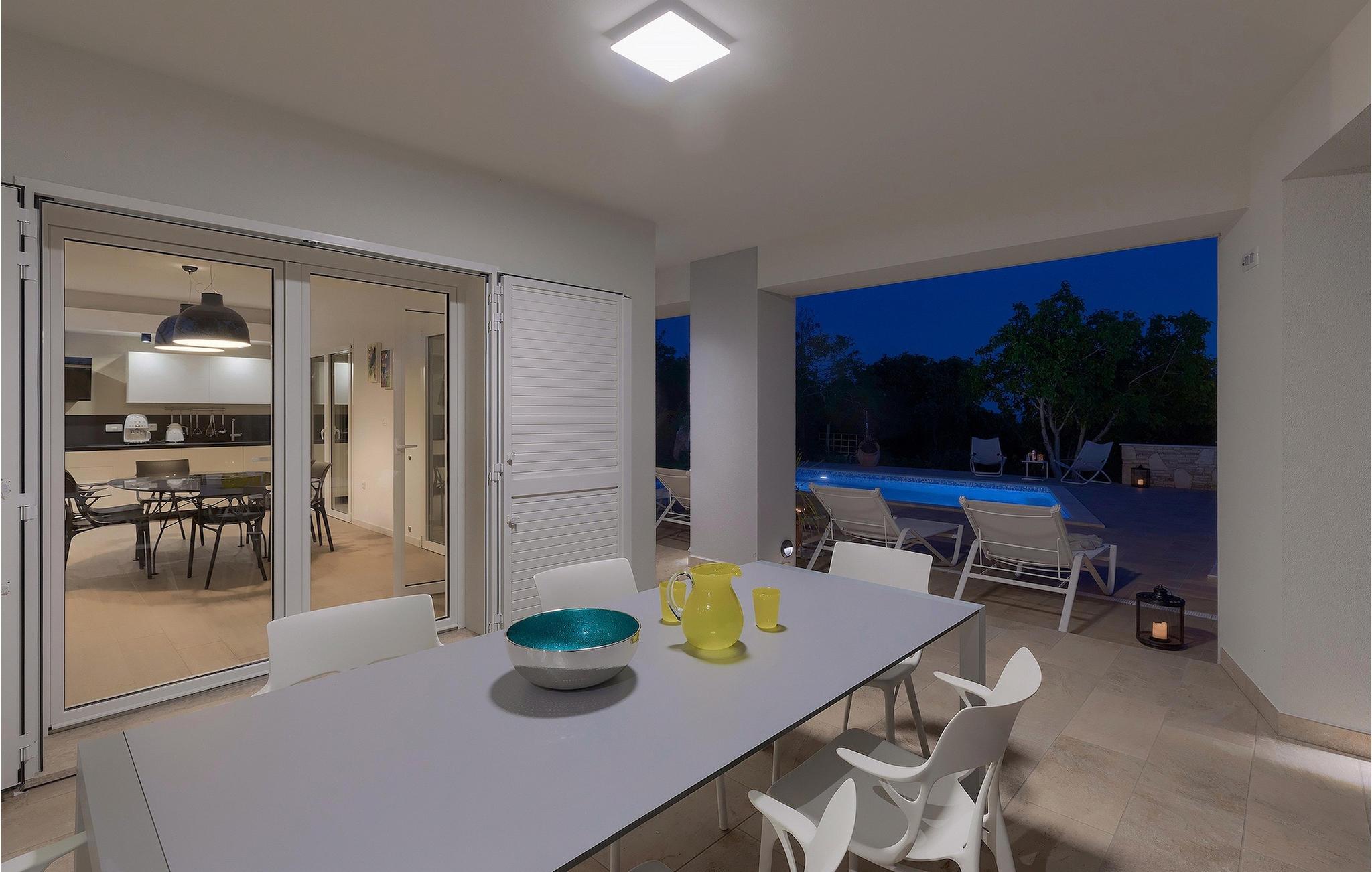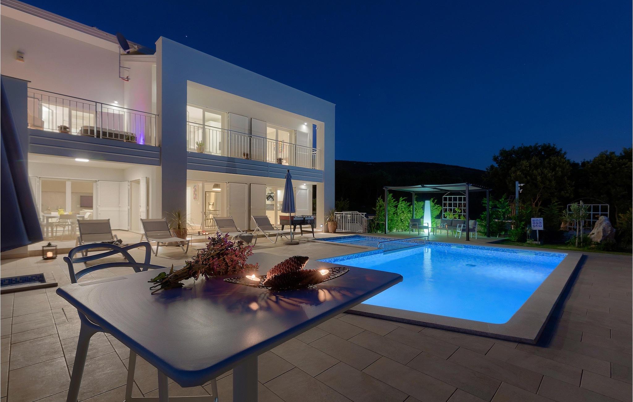 Villa Laura ligger i en lille landsby nær Istriens østkyst. Kun omkring 15 km fra Labins centrum og omkring 4 km fra den nærmeste strand tilbyder Villa Laura alt til en drømmeferie. Den omkringliggende natur, adskillige cykel- og vandrestier i området, nærheden til havet og andre attraktioner i Istrien, samt mange familievenlige udendørsaktiviteter, sammen med et stilfuldt, men komfortabelt interiør, gør denne villa så speciel. Den ligger på en rummelig grund med en grøn græsplæne, smukke blomster og et gammelt oliventræ, og selvfølgelig den private pool, hvor I sandsynligvis vil tilbringe det meste af jeres tid om sommeren. Poolen kan opvarmes mod et gebyr og har også et 3x3 m område, som er særligt velegnet til små børn, hvilket sikrer, at alle gæsters behov bliver opfyldt. Terrassen tilbyder et udendørs spiseområde og en kulgrill og fører ind i husets indre. Villaen, der blev bygget i 2020, består af 3 soveværelser og 3 badeværelser. Interiøret er opdelt i to etager. Den rummelige stueetage består af opholds- og spisestue samt et fuldt udstyret køkken. Der er endda et fitnesscenter, hvor I kan træne dagligt, og et læserum, hvor I finder et udvalg af bøger og får den der feriestemning af afslapning. På øverste etage er der tre hyggelige soveværelser, hver med eget badeværelse, tv, aircondition og adgang til den smukke terrasse. Alle soveværelser har en stor dobbeltseng, mens et af soveværelserne har en sovesofa til ekstra soveplads. På den 40 m² store terrasse med udsigt over det omkringliggende område finder I en smuk minipool med hydromassage (størrelse 160x200 - vand kan opvarmes efter anmodning, se bemærkninger nedenfor). Der er bordfodbold i haven, mens en legeplads og bordtennis deles med gæster i de to tilstødende villaer. Der er også et separat værelse med et poolbord, som alle gæster i de tre villaer kan benytte. Kajak- eller bådudlejning samt bådudflugter er tilgængelige efter anmodning mod et ekstra gebyr. Bemærk venligst: Ungdomsgrupper er ikke tilladt. Sveti Lovrec Labinski er en lille landsby i den østlige del af Istrien, kun få minutters kørsel fra kysten. Det er det perfekte udgangspunkt for dagsture til de berømte byer Pula, Opatija og Labin-Rabac. Labin er det historiske og administrative centrum i det østlige Istrien. Med sin rige kulturelle og arkitektoniske arv er området et paradis for historie- og kunstelskere. De stejle, snoede gader i den gamle bydel er hjemsted for velbevarede historiske paladser og adskillige kunstgallerier og atelierer. Forskellige jazz- og klassiske musikfestivaler finder sted i sommermånederne. Byen byder på adskillige fremragende fiskerestauranter med masser af lokale produkter, samt mange hyggelige caféer, der er ideelle til at nyde den afslappede atmosfære. Labins badeby er Rabac, engang en fiskerlandsby og nu et populært turistmål omgivet af himmelske stenstrande. Istriens østkyst byder på en række strande og krystalklart hav. Langs den uberørte kyst finder I stille bugter med blide småsten og klipper, omgivet af stedsegrønne skove. Med sine mange kyst- og skovstier er dette område ideelt til mountainbiking, lange afslappende vandreture, ridning og fungerer også som udgangspunkt for udflugter for at opdage det magiske Istrien.