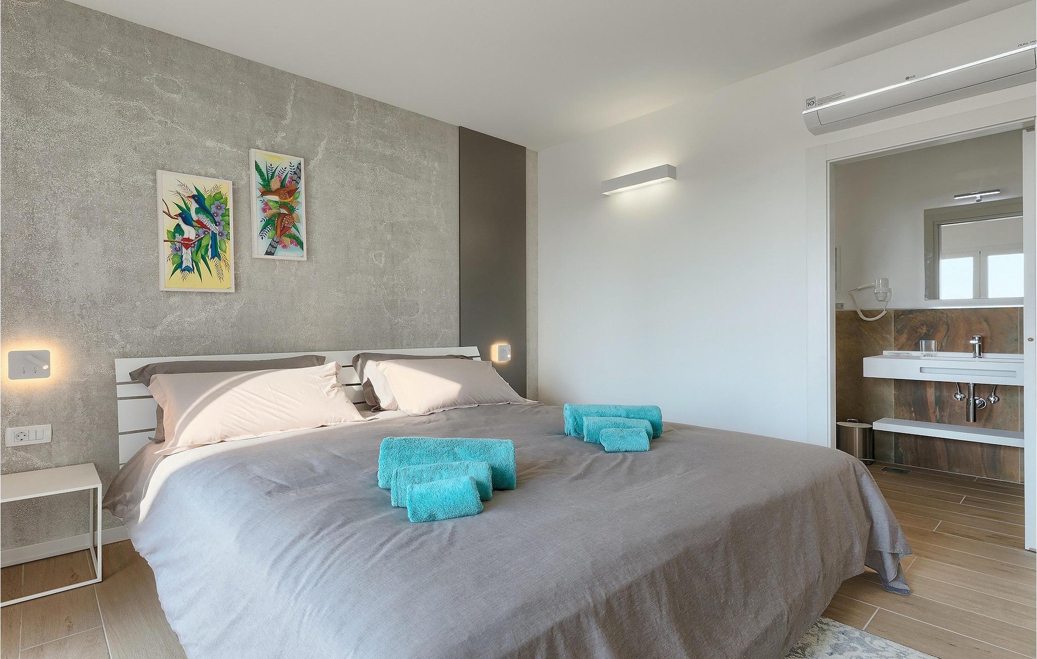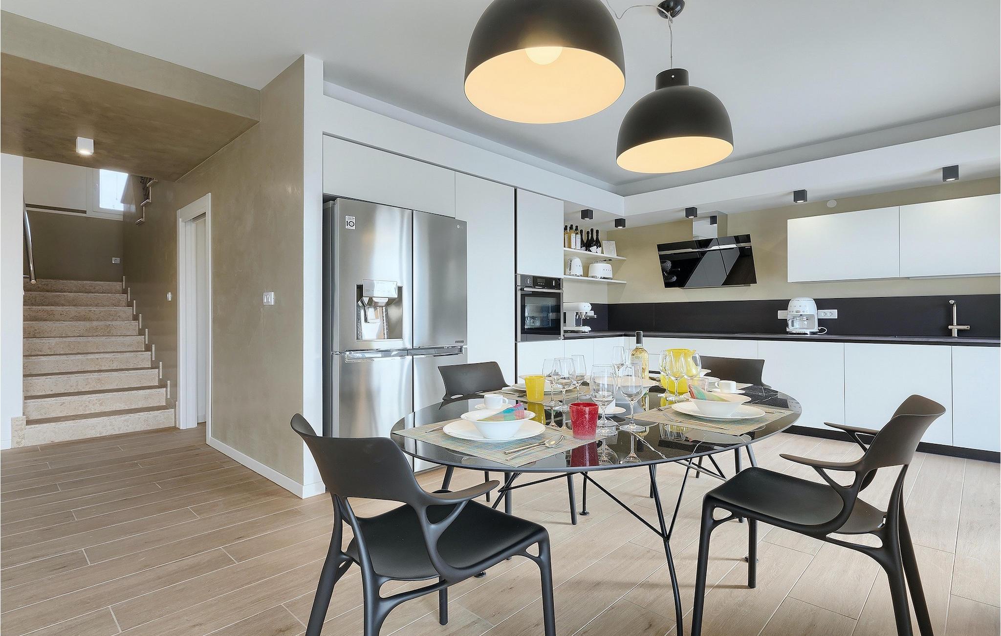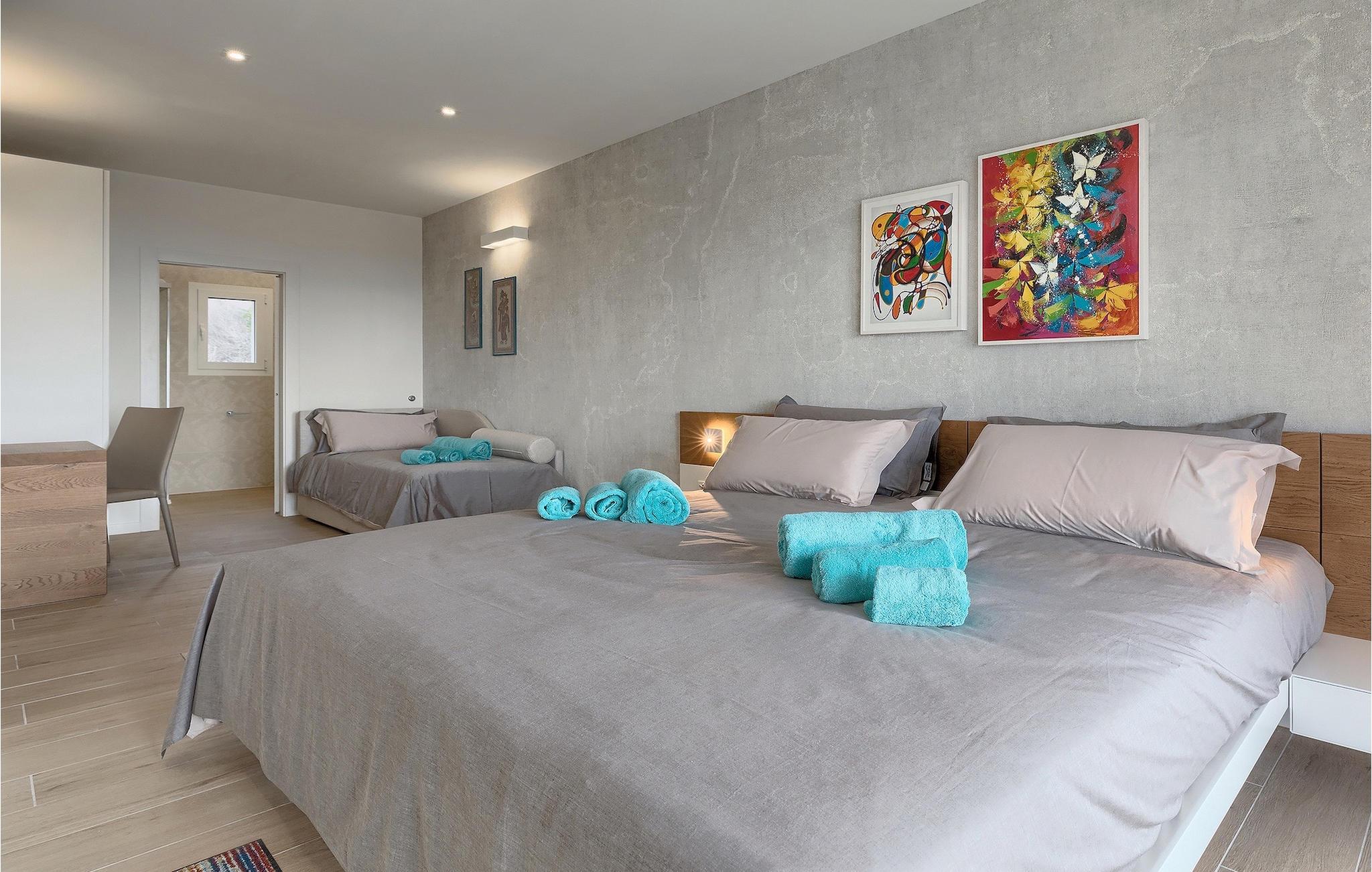 Villa Laura ligger i en lille landsby nær Istriens østkyst. Kun omkring 15 km fra Labins centrum og omkring 4 km fra den nærmeste strand tilbyder Villa Laura alt til en drømmeferie. Den omkringliggende natur, adskillige cykel- og vandrestier i området, nærheden til havet og andre attraktioner i Istrien, samt mange familievenlige udendørsaktiviteter, sammen med et stilfuldt, men komfortabelt interiør, gør denne villa så speciel. Den ligger på en rummelig grund med en grøn græsplæne, smukke blomster og et gammelt oliventræ, og selvfølgelig den private pool, hvor I sandsynligvis vil tilbringe det meste af jeres tid om sommeren. Poolen kan opvarmes mod et gebyr og har også et 3x3 m område, som er særligt velegnet til små børn, hvilket sikrer, at alle gæsters behov bliver opfyldt. Terrassen tilbyder et udendørs spiseområde og en kulgrill og fører ind i husets indre. Villaen, der blev bygget i 2020, består af 3 soveværelser og 3 badeværelser. Interiøret er opdelt i to etager. Den rummelige stueetage består af opholds- og spisestue samt et fuldt udstyret køkken. Der er endda et fitnesscenter, hvor I kan træne dagligt, og et læserum, hvor I finder et udvalg af bøger og får den der feriestemning af afslapning. På øverste etage er der tre hyggelige soveværelser, hver med eget badeværelse, tv, aircondition og adgang til den smukke terrasse. Alle soveværelser har en stor dobbeltseng, mens et af soveværelserne har en sovesofa til ekstra soveplads. På den 40 m² store terrasse med udsigt over det omkringliggende område finder I en smuk minipool med hydromassage (størrelse 160x200 - vand kan opvarmes efter anmodning, se bemærkninger nedenfor). Der er bordfodbold i haven, mens en legeplads og bordtennis deles med gæster i de to tilstødende villaer. Der er også et separat værelse med et poolbord, som alle gæster i de tre villaer kan benytte. Kajak- eller bådudlejning samt bådudflugter er tilgængelige efter anmodning mod et ekstra gebyr. Bemærk venligst: Ungdomsgrupper er ikke tilladt. Sveti Lovrec Labinski er en lille landsby i den østlige del af Istrien, kun få minutters kørsel fra kysten. Det er det perfekte udgangspunkt for dagsture til de berømte byer Pula, Opatija og Labin-Rabac. Labin er det historiske og administrative centrum i det østlige Istrien. Med sin rige kulturelle og arkitektoniske arv er området et paradis for historie- og kunstelskere. De stejle, snoede gader i den gamle bydel er hjemsted for velbevarede historiske paladser og adskillige kunstgallerier og atelierer. Forskellige jazz- og klassiske musikfestivaler finder sted i sommermånederne. Byen byder på adskillige fremragende fiskerestauranter med masser af lokale produkter, samt mange hyggelige caféer, der er ideelle til at nyde den afslappede atmosfære. Labins badeby er Rabac, engang en fiskerlandsby og nu et populært turistmål omgivet af himmelske stenstrande. Istriens østkyst byder på en række strande og krystalklart hav. Langs den uberørte kyst finder I stille bugter med blide småsten og klipper, omgivet af stedsegrønne skove. Med sine mange kyst- og skovstier er dette område ideelt til mountainbiking, lange afslappende vandreture, ridning og fungerer også som udgangspunkt for udflugter for at opdage det magiske Istrien.