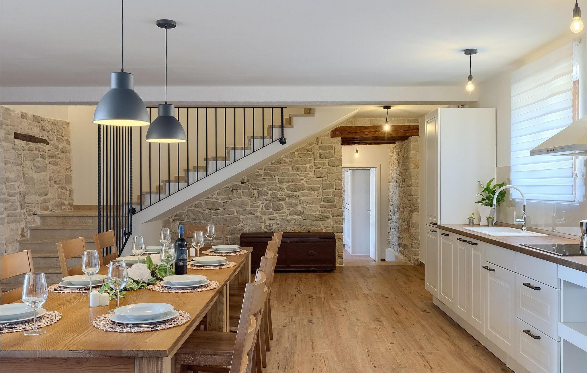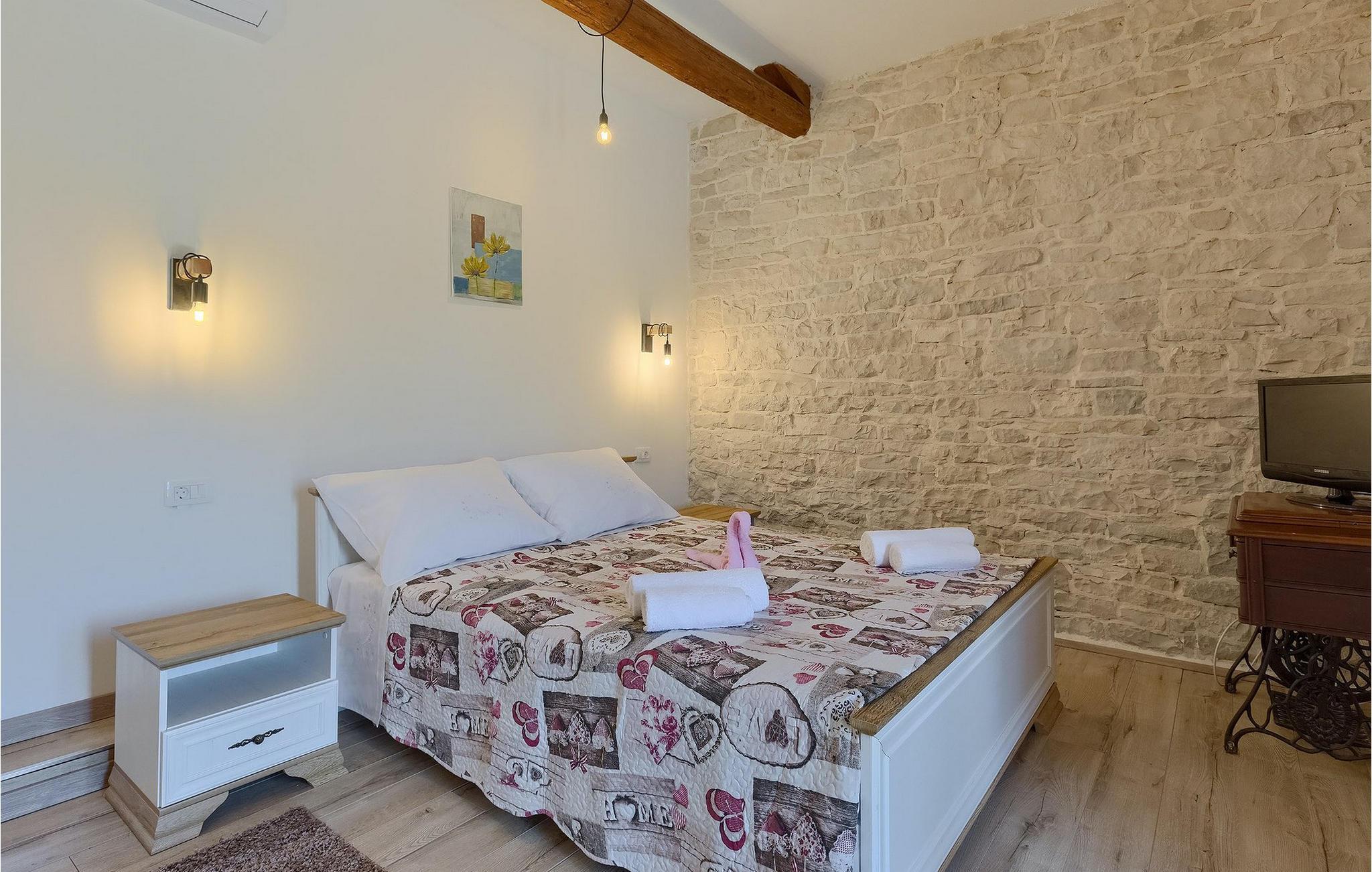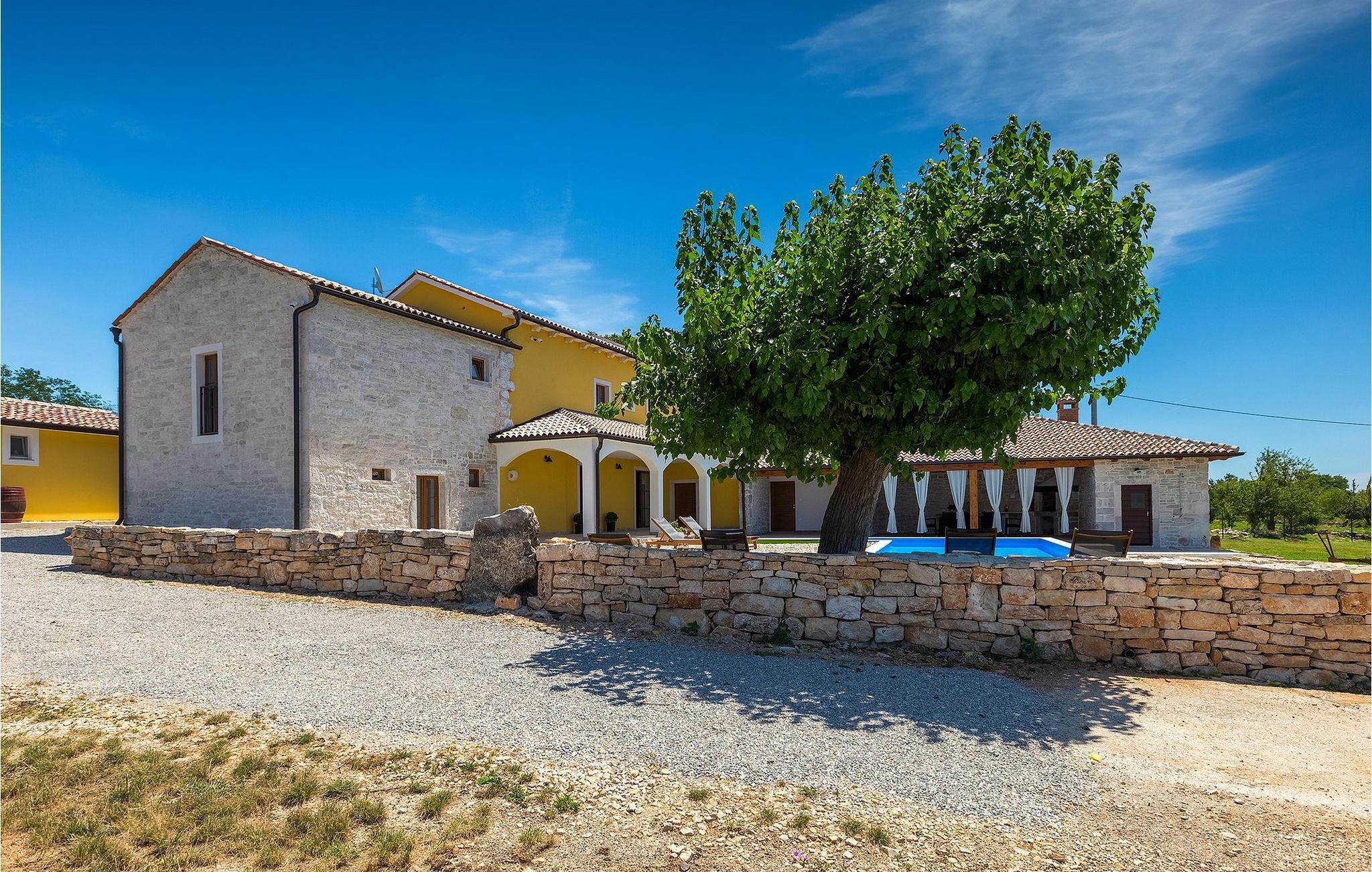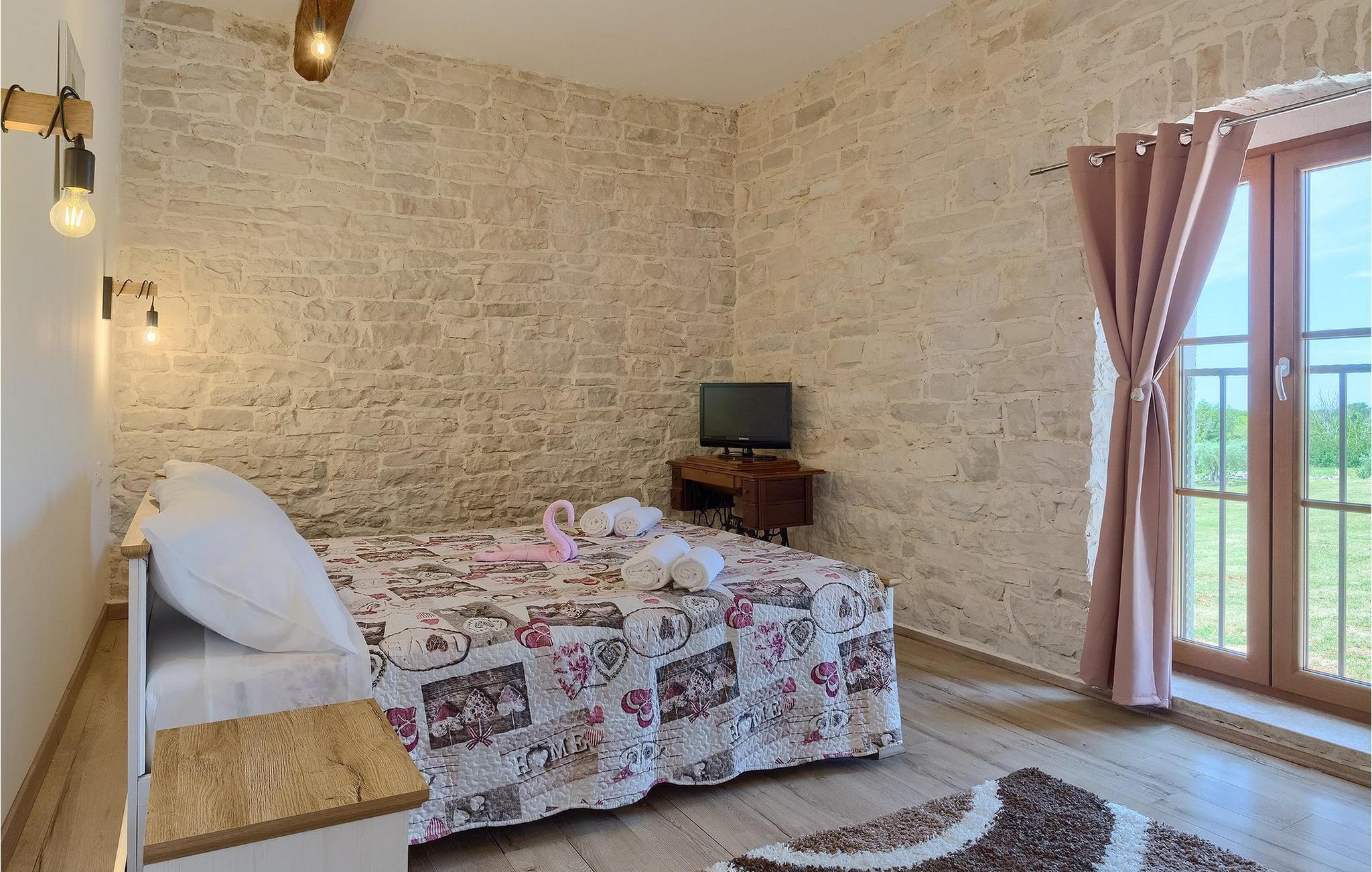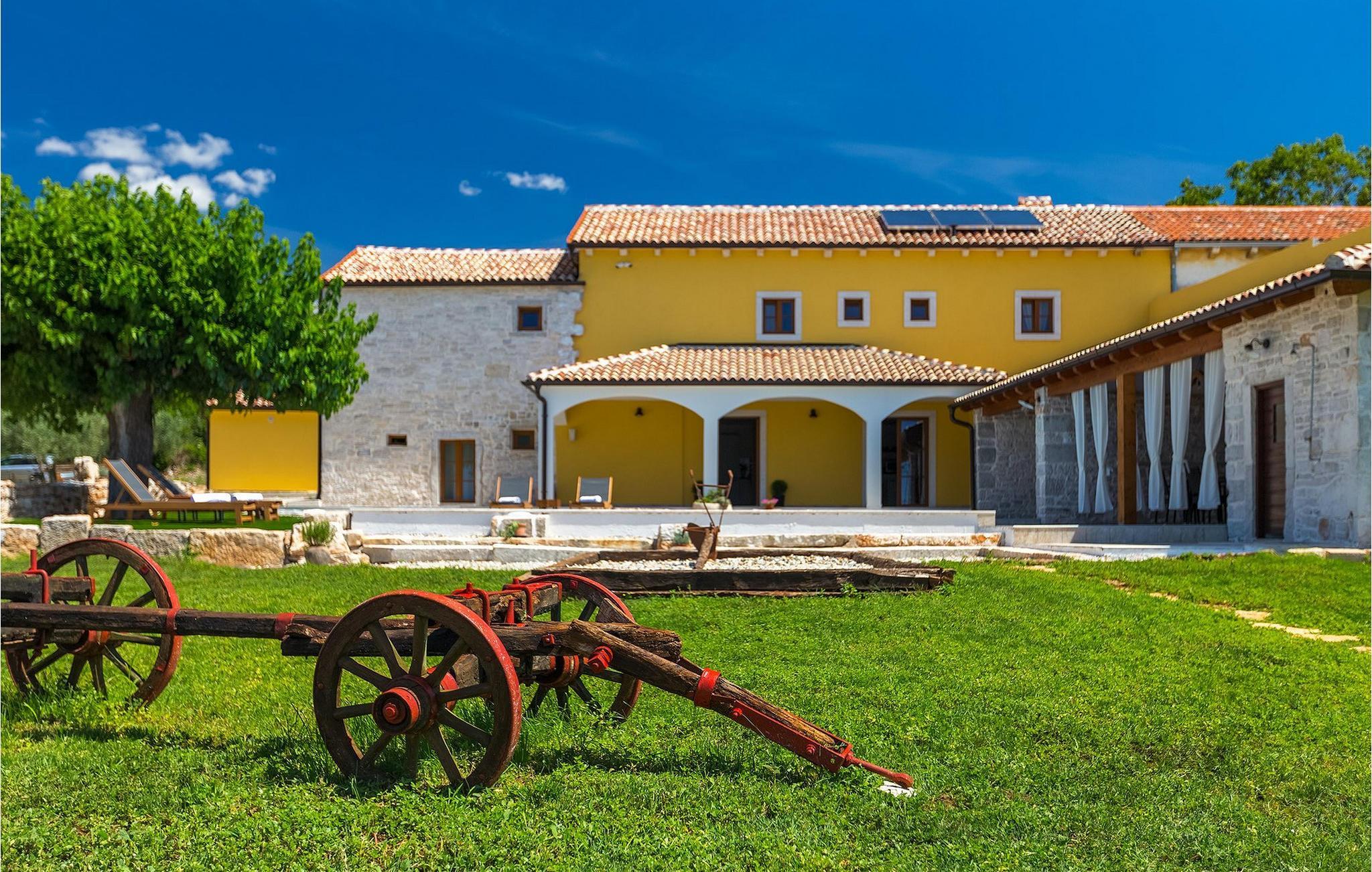 Charmerende Villa Lanca beliggende i Istrien i et smukt naturligt miljø vil give dig en fredelig og afslappende ferie. Villaen tilbyder overnatning til i alt 8 personer i hyggelige omgivelser med istriske detaljer og moderne interiør. Villaen er omgivet af natur og grønt, og i villaens gårdhave er der en lille olivenhave. Stueetagen af villaen er en åben type med en stue, udstyret køkken og spisestue, et-værelses og badeværelse. På første sal er der tre værelser med tre badeværelser med en suite soveværelser. Villaens have er 4282 m2 og har en olivenhave ved siden af, hvor der er en legeplads for de yngste gæster, en privat pool og en udendørs terrasse med grill, bord og stole til at nyde middagen. Stenvæggene i visse dele af villaen giver villaen et charmerende udtryk i middelhavsstil. Forfrisk dig selv i den private pool og nyd en drink på liggestolene i de smukke istriske omgivelser. For yderligere underholdning er der dart og bordtennis. Book Villa Lanca for den perfekte ferie med familie og venner.Villa Lanca ligger i den lille kommune Sveti Lovrec, også kendt som San Lorenzo del Pasenatico. I en smuk beliggenhed giver villaen sine gæster mulighed for at udforske omgivelserne i de mindre byer og deres restauranter, der serverer berømte istriske specialiteter. Det omkringliggende område byder på adskillige rekreative muligheder: Cykling, ridning, jogging, vandreture og meget mere. Den nærmeste strand med krystalklart vand ligger i Vrsar, 10 km fra villaen. I nærheden ligger de kendte kystbyer Porec og Rovinj. Gå en tur gennem de romantiske gader i Rovinj og stød på den barokke kirke St. Euphemia og bypaladset. Kulinariske elskere bør ikke gå glip af restauranten Monte, som har fået en Michelin-stjerne. Vi anbefaler også en sejltur til Rovinj-øgruppen. I Porec kan du besøge Euphrasius-basilikaen (Unescos verdensarvssted). Her finder du et udvalg af caféer, barer og restauranter. De middelalderlige bakketopbyer Motovun og Groznjan er også et besøg værd.