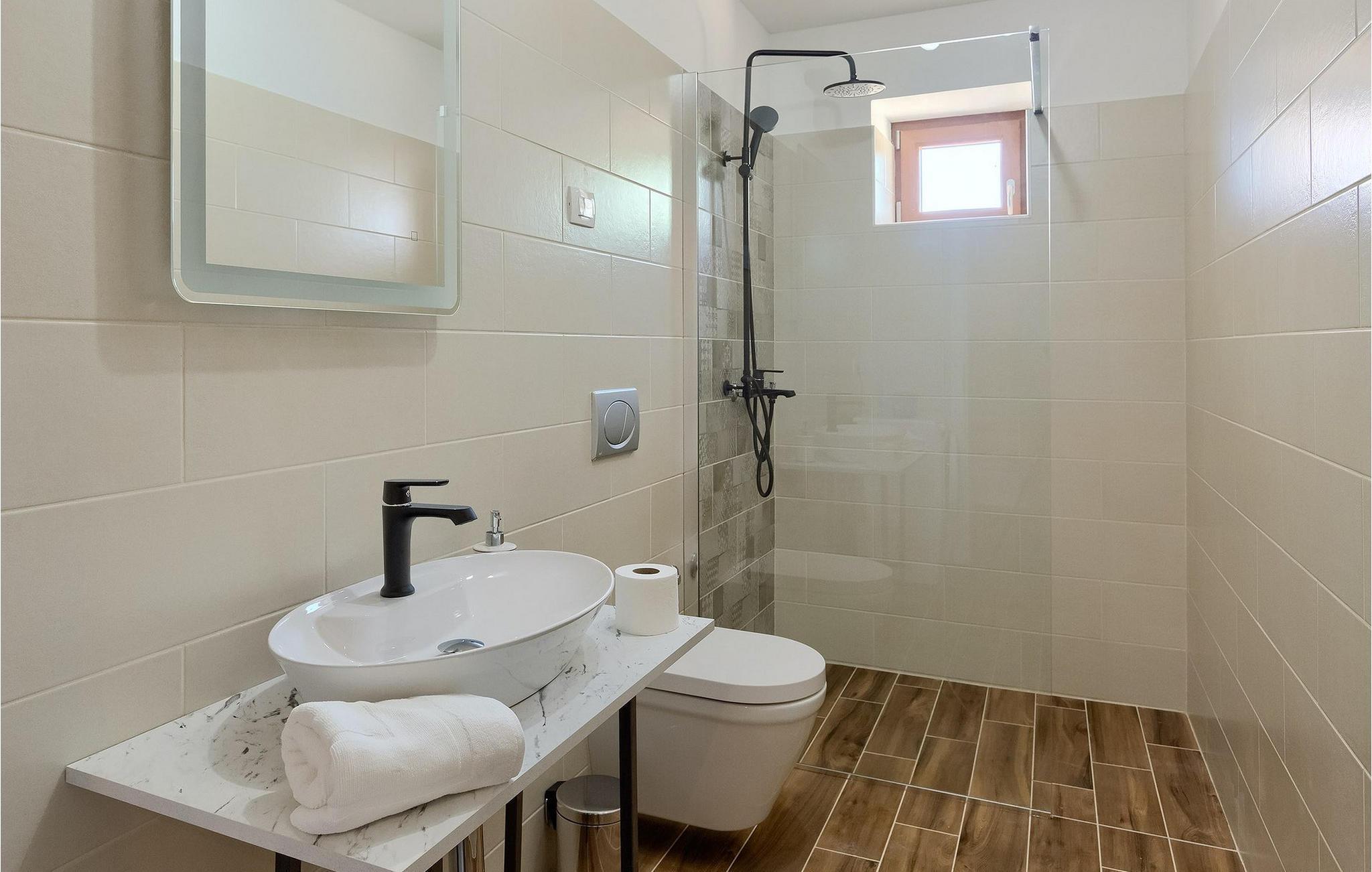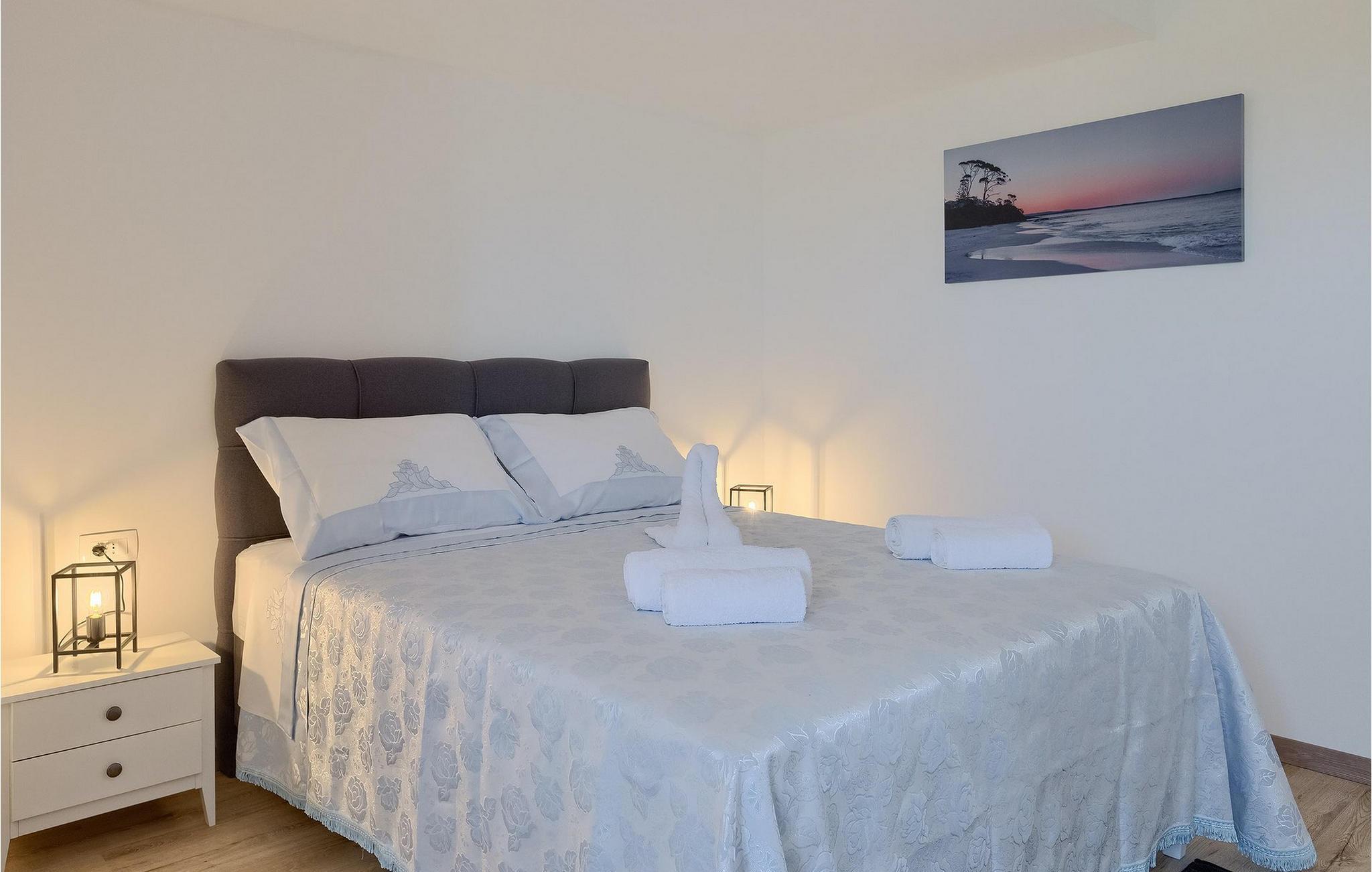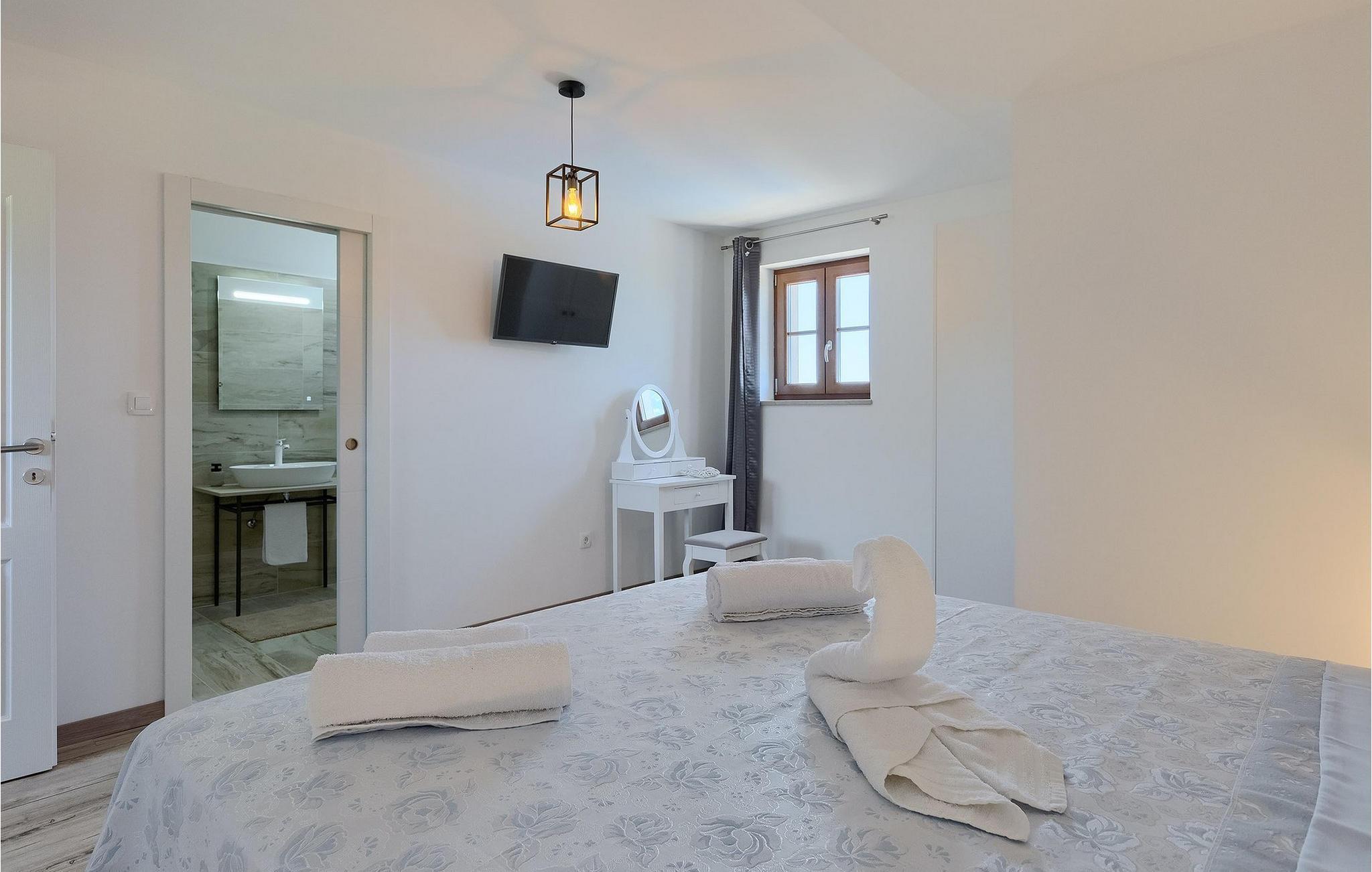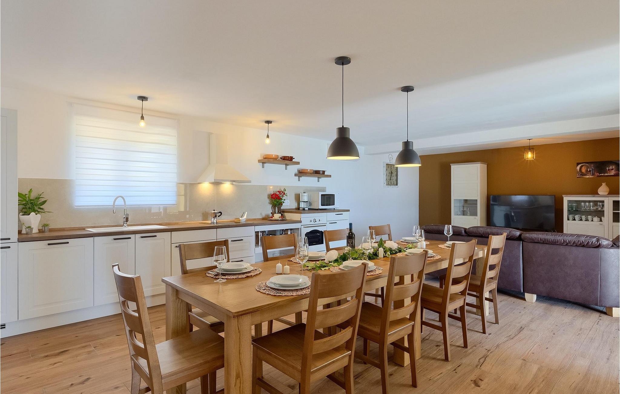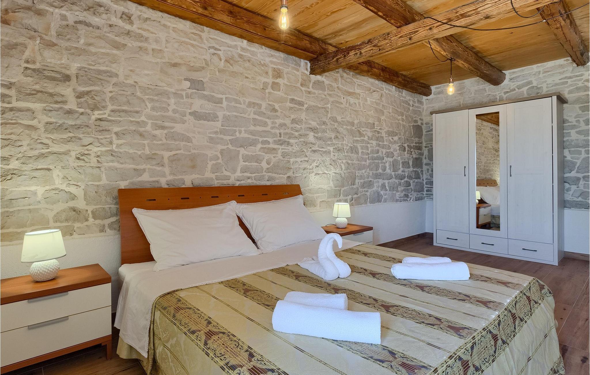 Charmerende Villa Lanca beliggende i Istrien i et smukt naturligt miljø vil give dig en fredelig og afslappende ferie. Villaen tilbyder overnatning til i alt 8 personer i hyggelige omgivelser med istriske detaljer og moderne interiør. Villaen er omgivet af natur og grønt, og i villaens gårdhave er der en lille olivenhave. Stueetagen af villaen er en åben type med en stue, udstyret køkken og spisestue, et-værelses og badeværelse. På første sal er der tre værelser med tre badeværelser med en suite soveværelser. Villaens have er 4282 m2 og har en olivenhave ved siden af, hvor der er en legeplads for de yngste gæster, en privat pool og en udendørs terrasse med grill, bord og stole til at nyde middagen. Stenvæggene i visse dele af villaen giver villaen et charmerende udtryk i middelhavsstil. Forfrisk dig selv i den private pool og nyd en drink på liggestolene i de smukke istriske omgivelser. For yderligere underholdning er der dart og bordtennis. Book Villa Lanca for den perfekte ferie med familie og venner.Villa Lanca ligger i den lille kommune Sveti Lovrec, også kendt som San Lorenzo del Pasenatico. I en smuk beliggenhed giver villaen sine gæster mulighed for at udforske omgivelserne i de mindre byer og deres restauranter, der serverer berømte istriske specialiteter. Det omkringliggende område byder på adskillige rekreative muligheder: Cykling, ridning, jogging, vandreture og meget mere. Den nærmeste strand med krystalklart vand ligger i Vrsar, 10 km fra villaen. I nærheden ligger de kendte kystbyer Porec og Rovinj. Gå en tur gennem de romantiske gader i Rovinj og stød på den barokke kirke St. Euphemia og bypaladset. Kulinariske elskere bør ikke gå glip af restauranten Monte, som har fået en Michelin-stjerne. Vi anbefaler også en sejltur til Rovinj-øgruppen. I Porec kan du besøge Euphrasius-basilikaen (Unescos verdensarvssted). Her finder du et udvalg af caféer, barer og restauranter. De middelalderlige bakketopbyer Motovun og Groznjan er også et besøg værd.