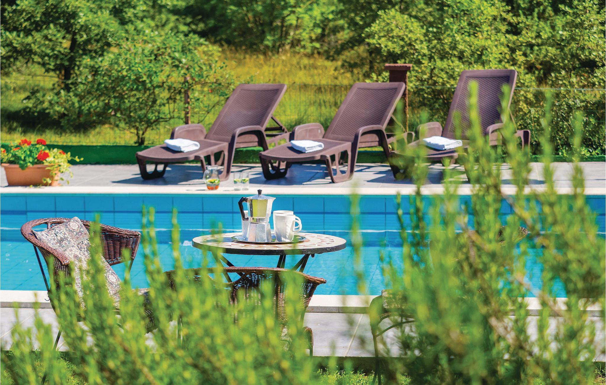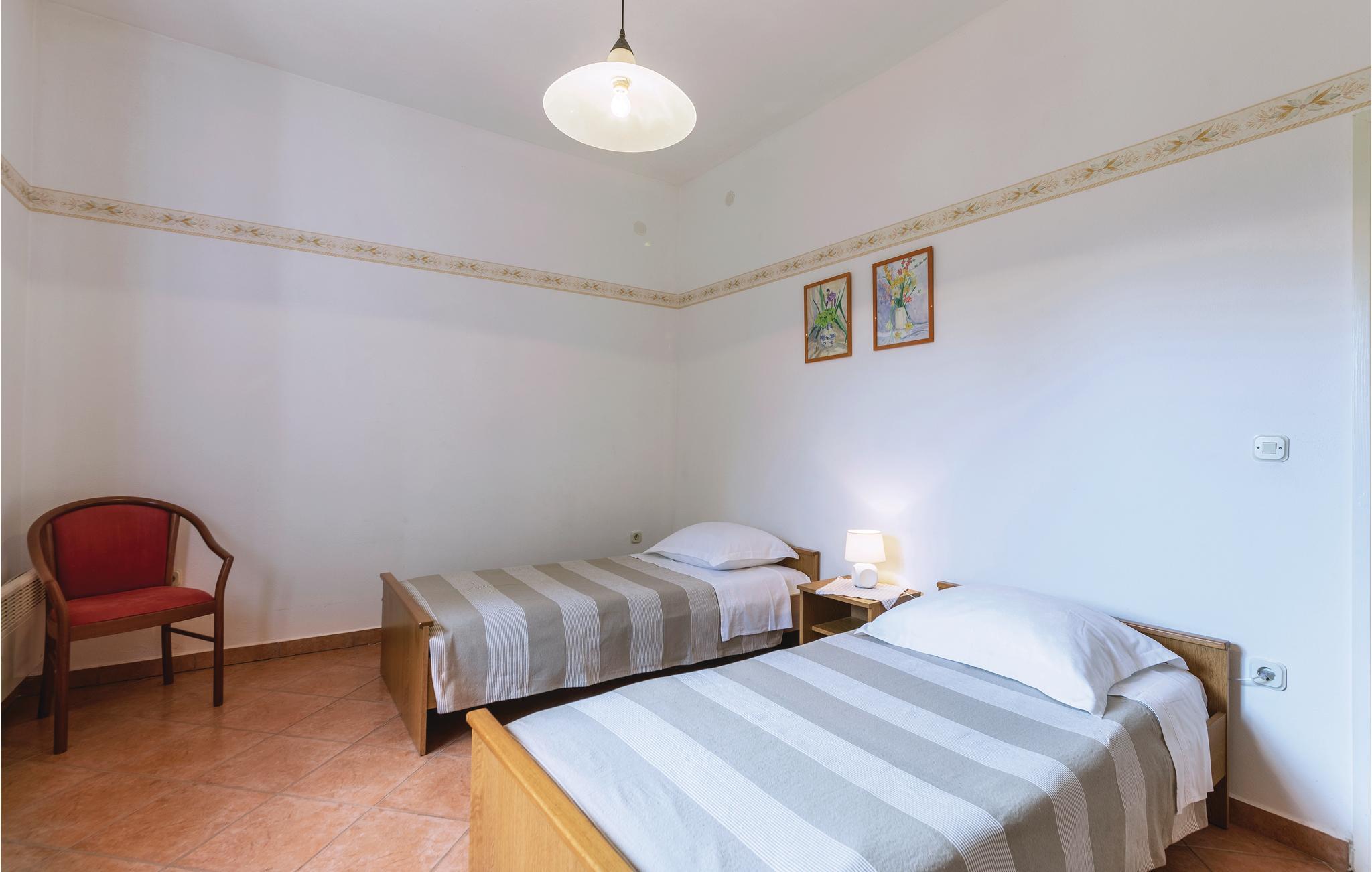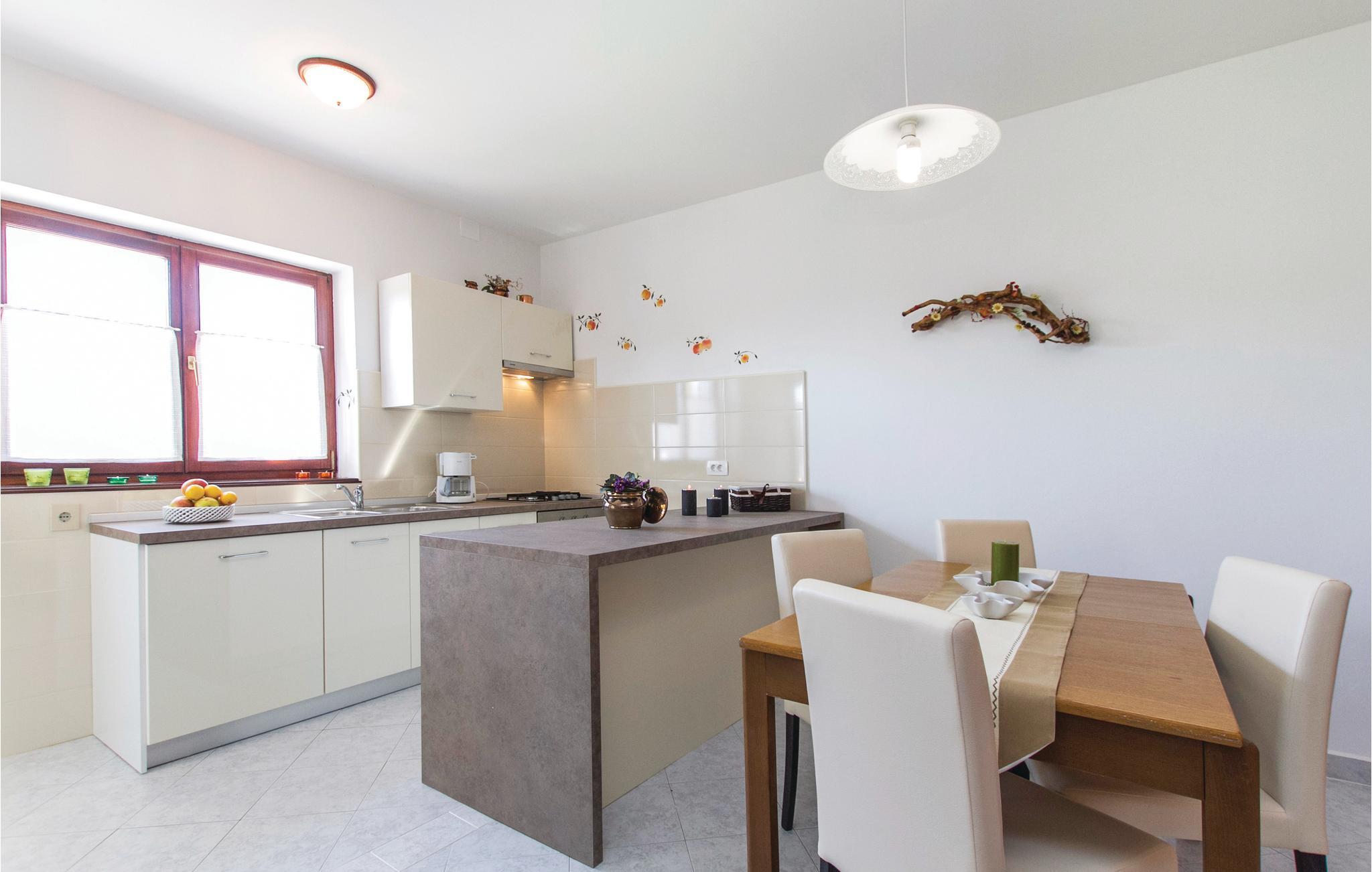 I et smukt familiehus med pool nær byen Labin ligger denne lejlighed, der er en af to enheder. De spænder over hele stueetagen og har begge separate indgange, et køkken og et badeværelse. Det er et ideelt valg for to familier eller grupper af venner, der ønsker at tilbringe deres ferie sammen, men alligevel ønsker at bevare deres privatliv. Poolen er bag huset, omgivet af en lille græsplæne og middelhavsplanter.